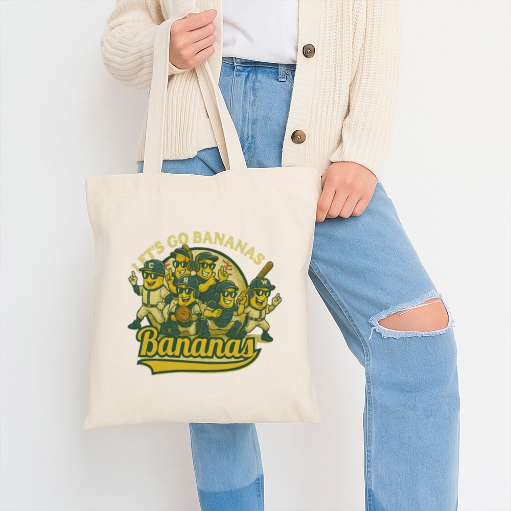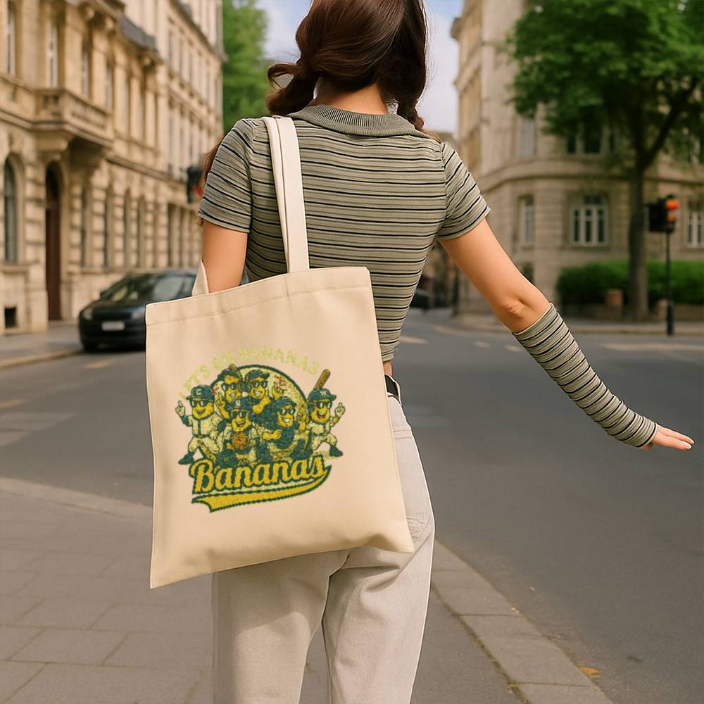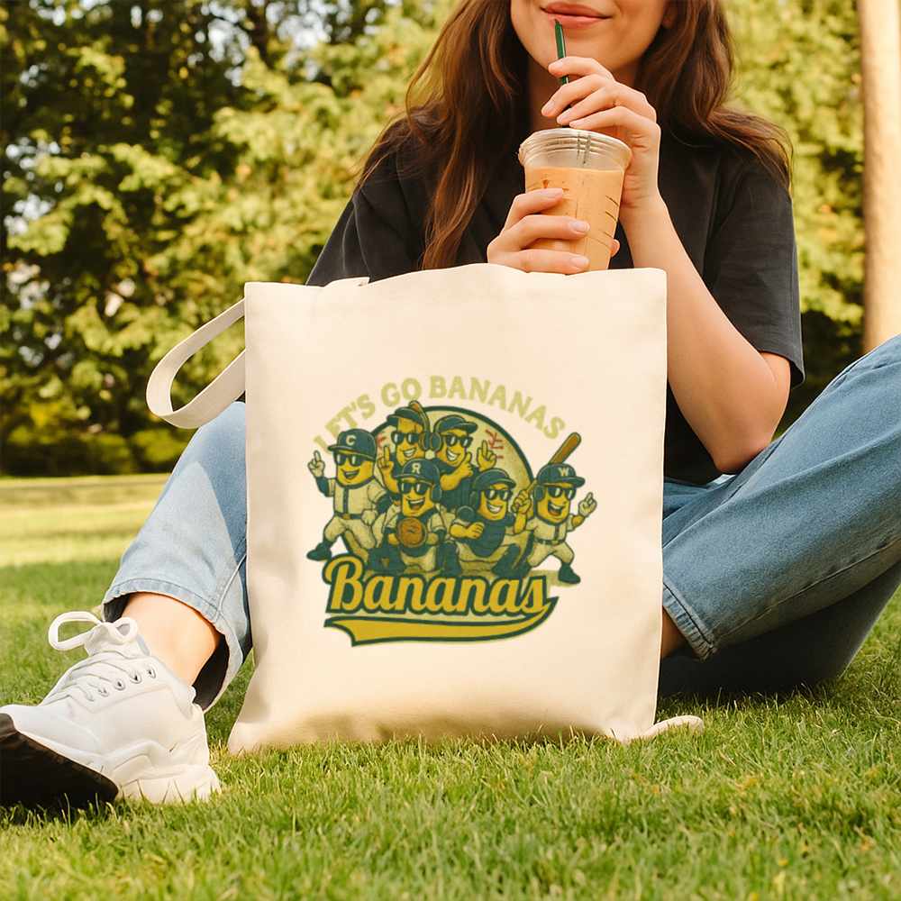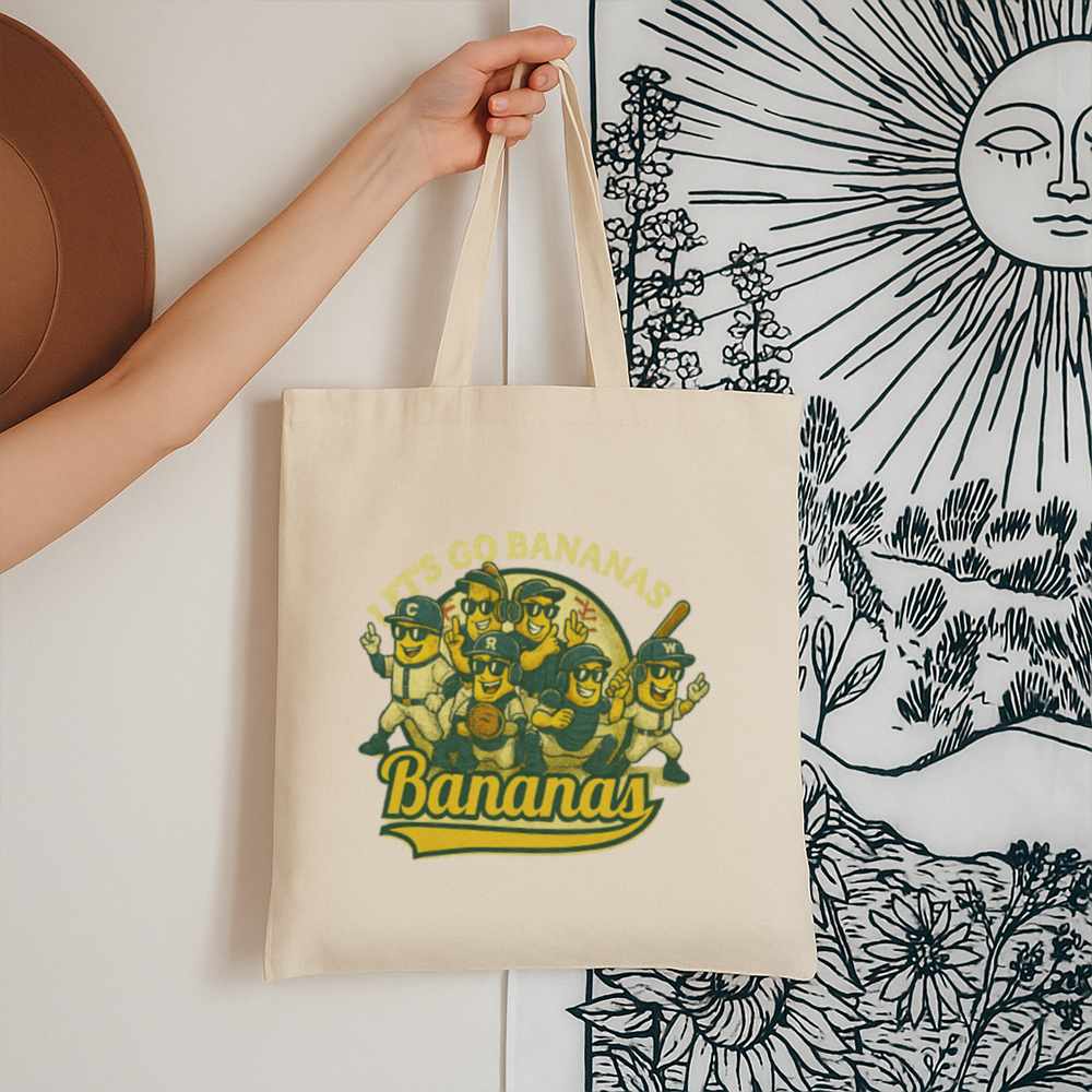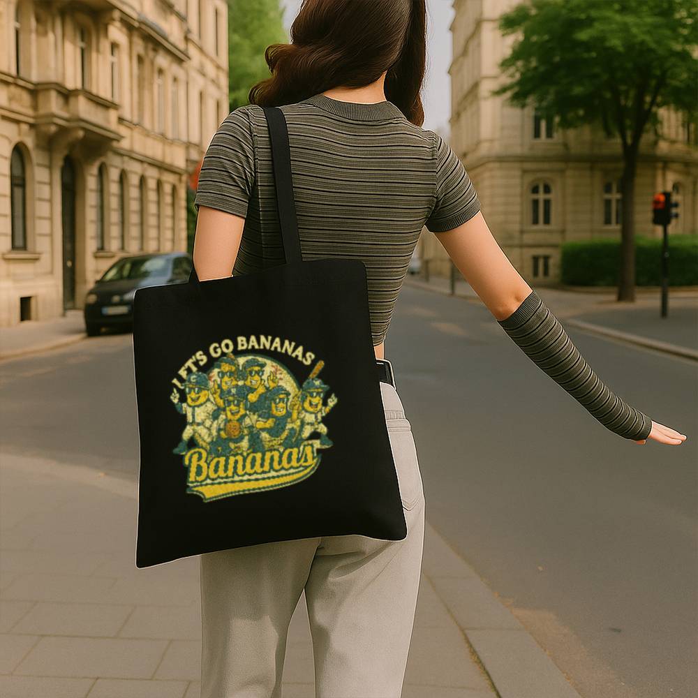 Turn every outing into an adventure with the Let’s Go Bananas Tote Bag. Featuring a bold and cheerful banana baseball squad, this bag combines utility with personality. It’s roomy enough for groceries, books, or gym gear and light enough to carry all day.