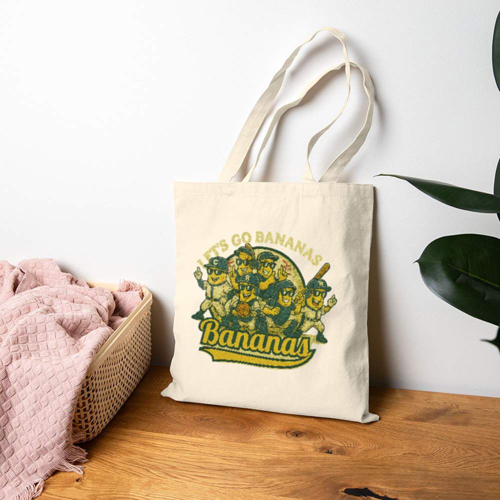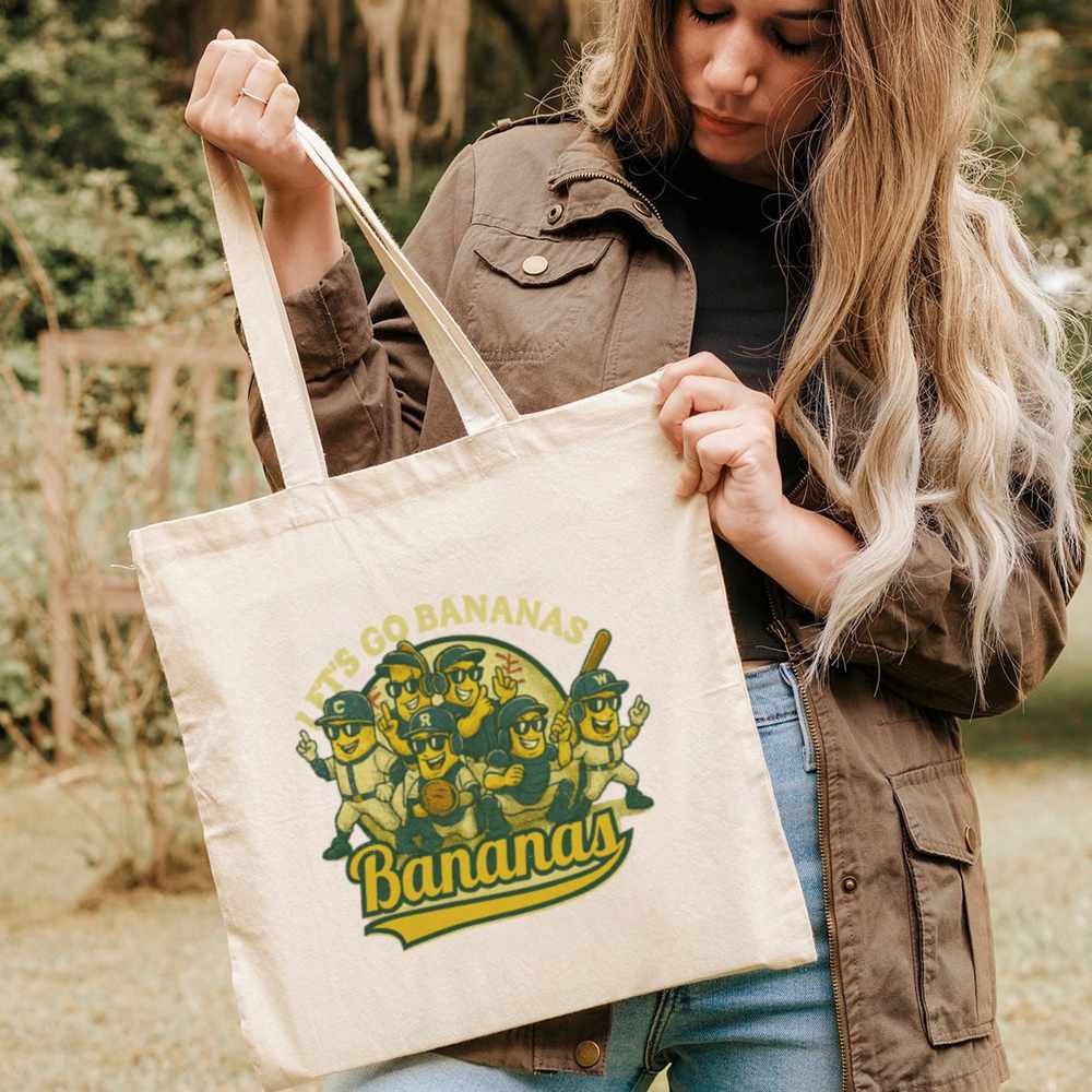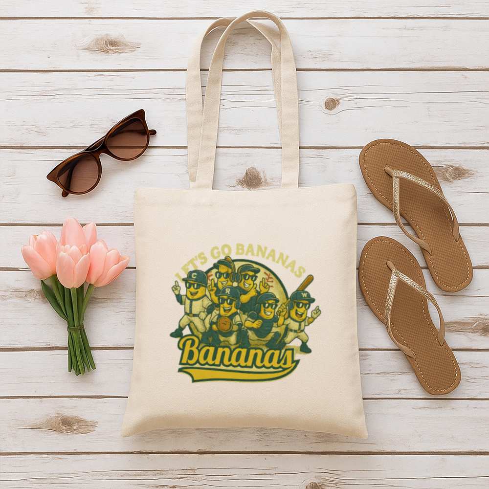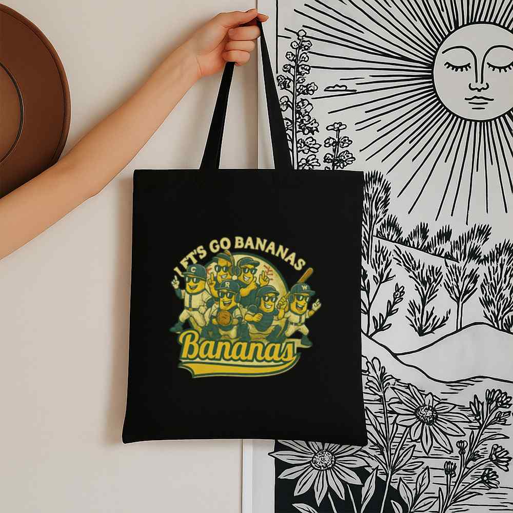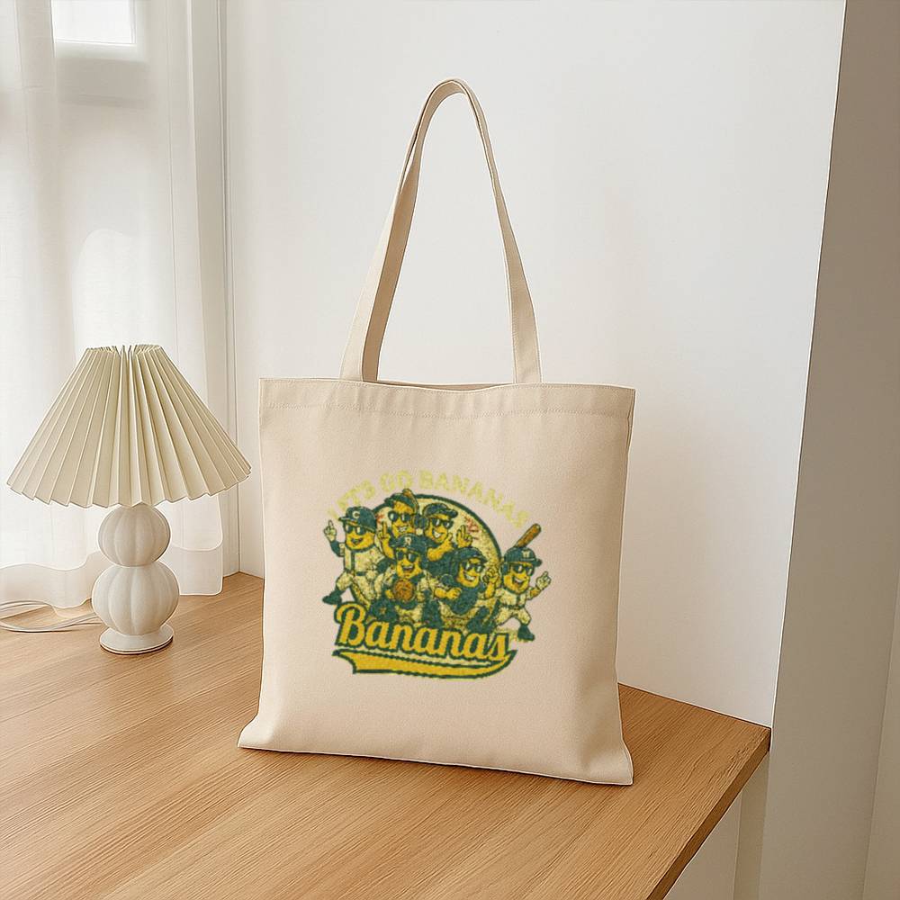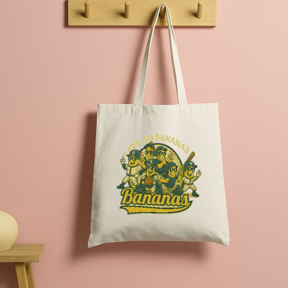 Turn every outing into an adventure with the Let’s Go Bananas Tote Bag. Featuring a bold and cheerful banana baseball squad, this bag combines utility with personality. It’s roomy enough for groceries, books, or gym gear and light enough to carry all day.