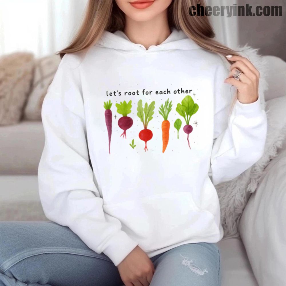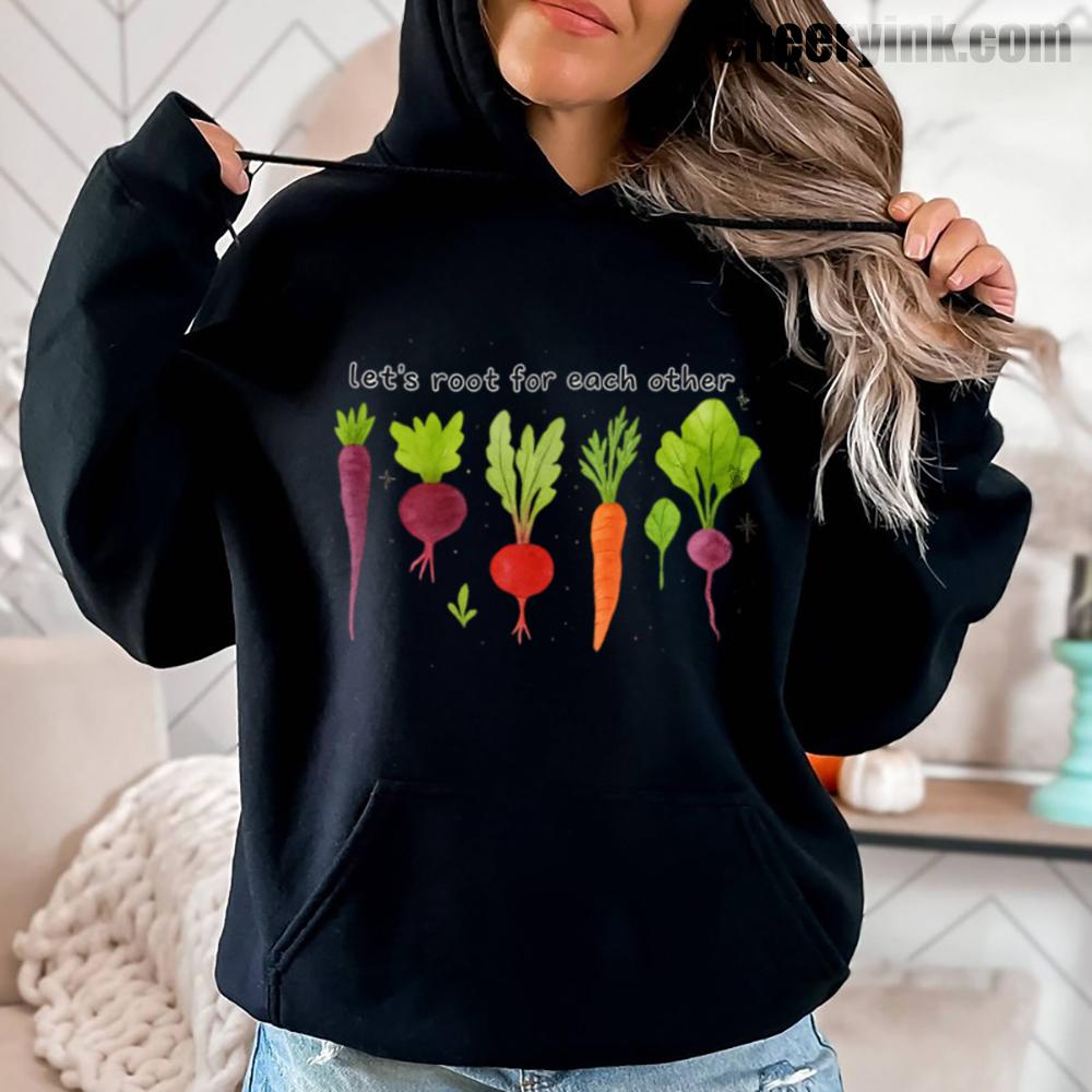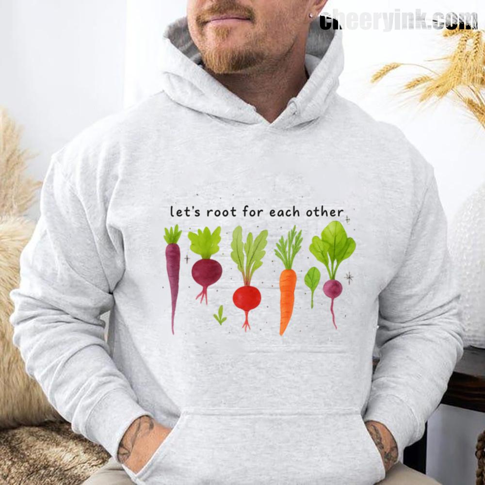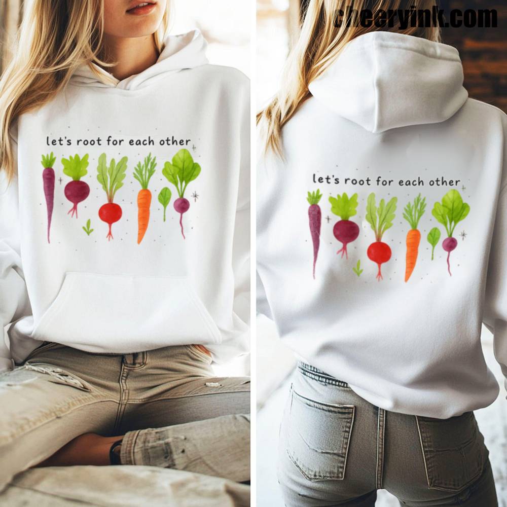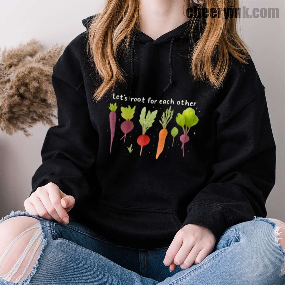 Celebrate togetherness in the coziest way possible with our Let’s Root For Each Other Hoodie. Featuring adorable hand-drawn root vegetables and a sweet message of encouragement, this hoodie turns warmth into a statement. The focus keyword “Let’s Root For Each Other Hoodie” is all about lifting others up and staying comfy while doing it.