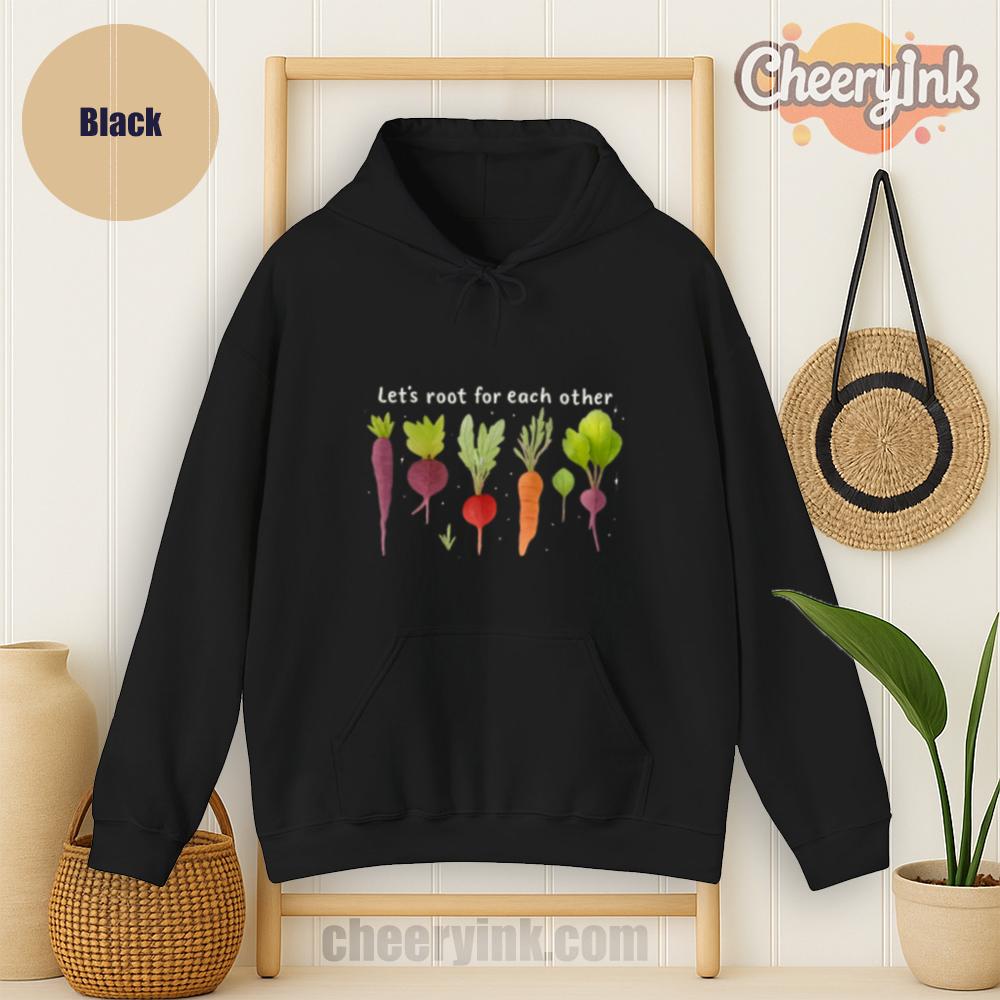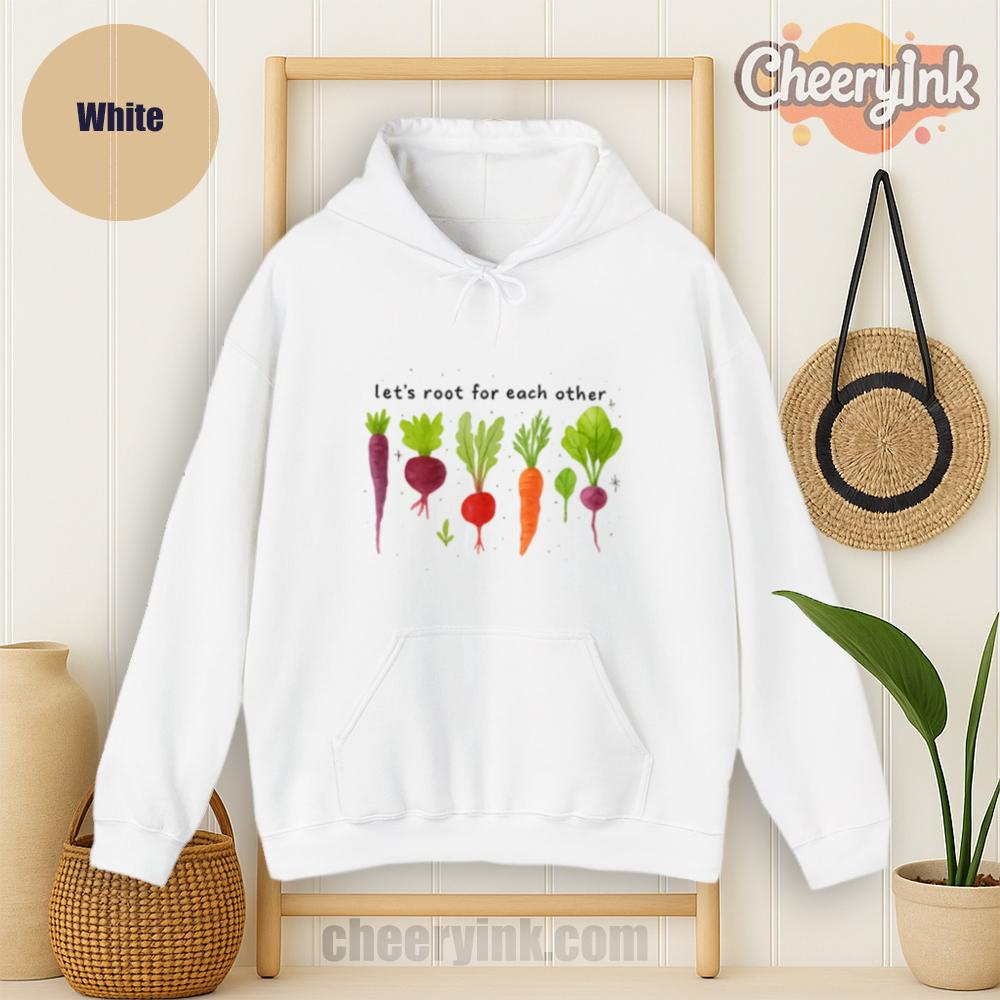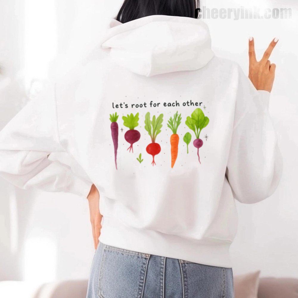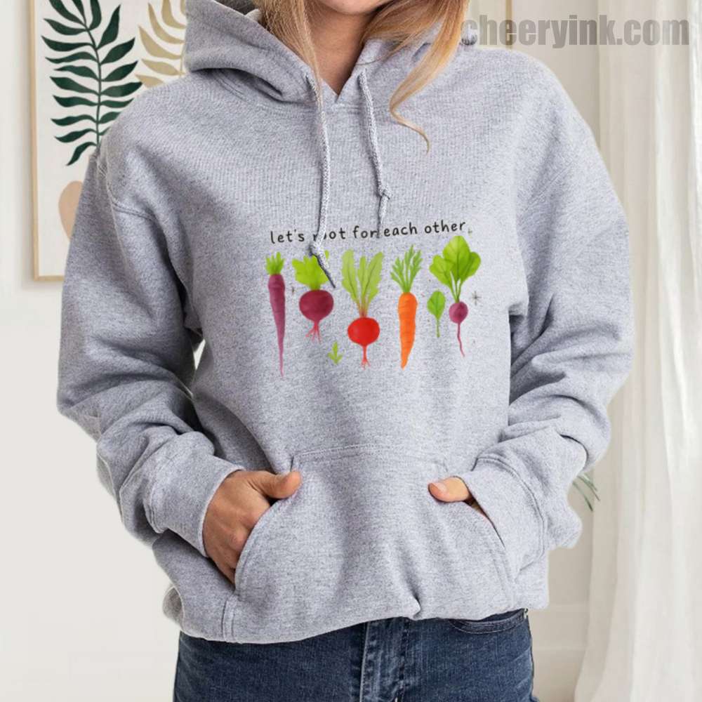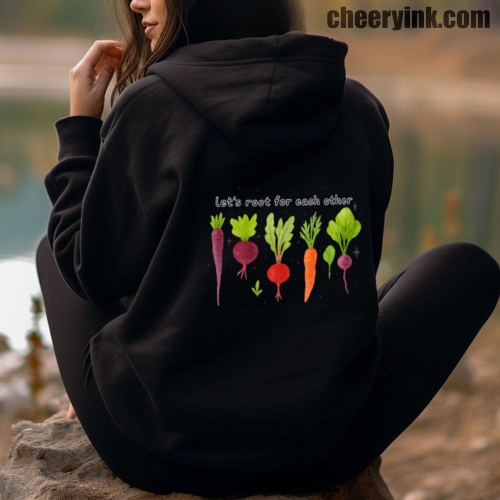 Celebrate togetherness in the coziest way possible with our Let’s Root For Each Other Hoodie. Featuring adorable hand-drawn root vegetables and a sweet message of encouragement, this hoodie turns warmth into a statement. The focus keyword “Let’s Root For Each Other Hoodie” is all about lifting others up and staying comfy while doing it.
