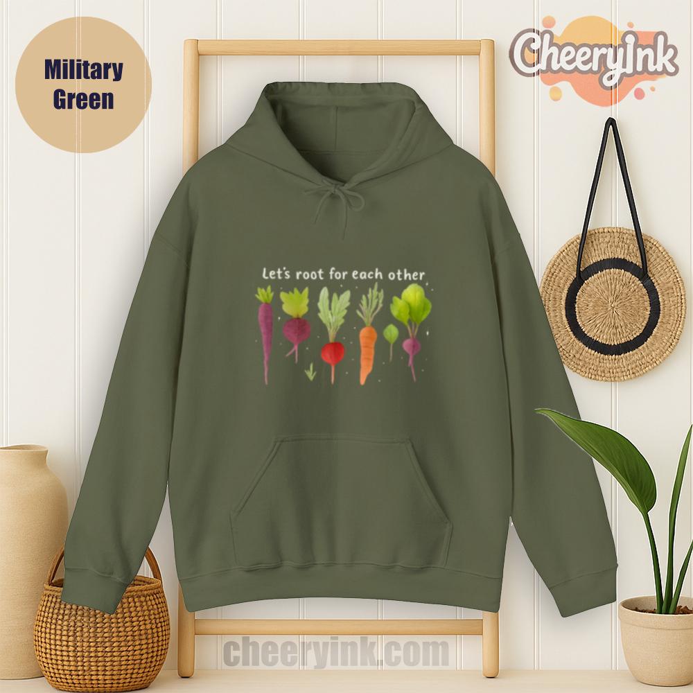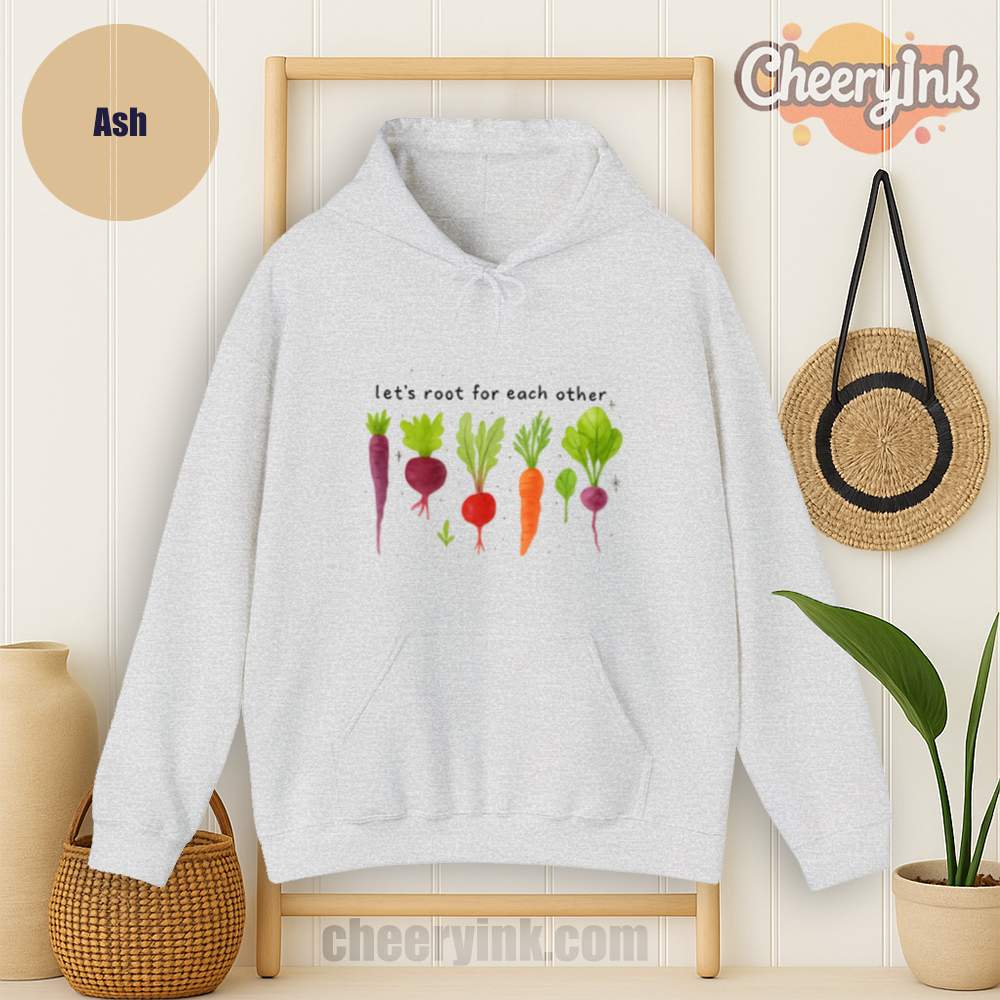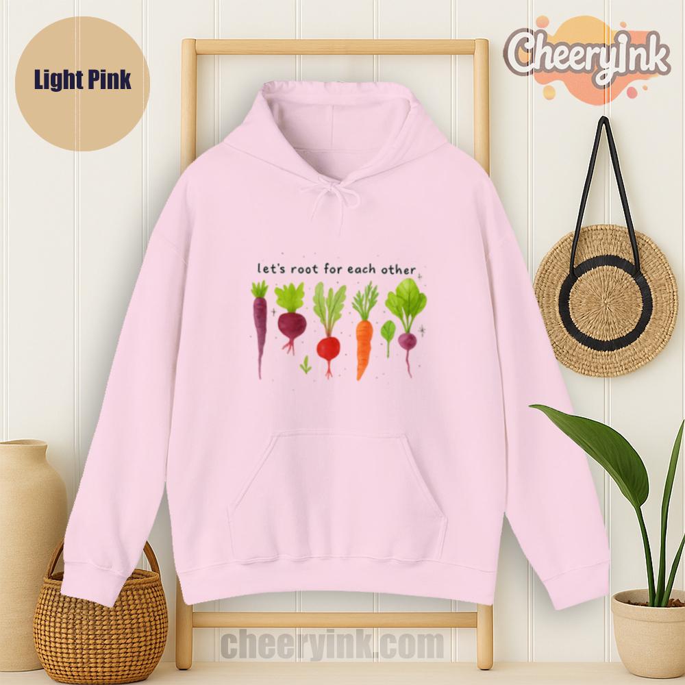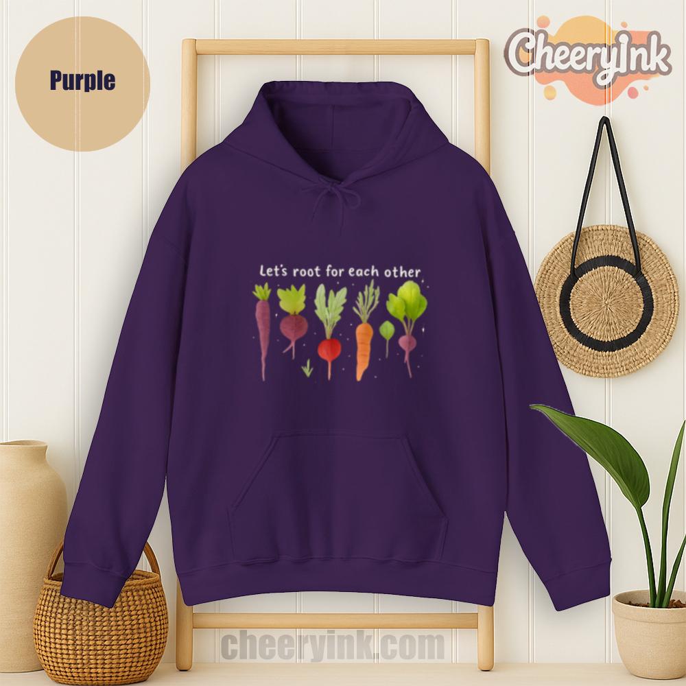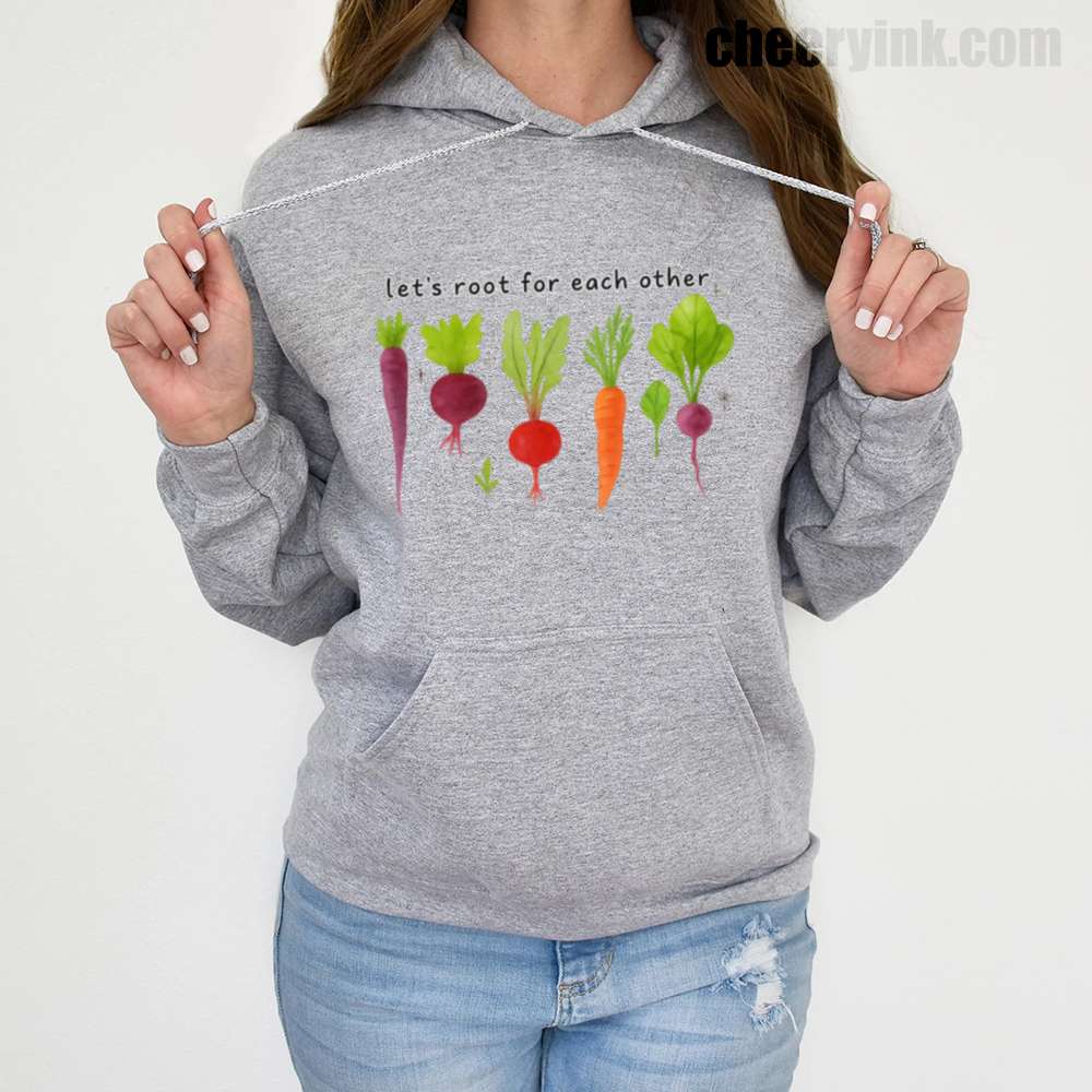 Celebrate togetherness in the coziest way possible with our Let’s Root For Each Other Hoodie. Featuring adorable hand-drawn root vegetables and a sweet message of encouragement, this hoodie turns warmth into a statement. The focus keyword “Let’s Root For Each Other Hoodie” is all about lifting others up and staying comfy while doing it.