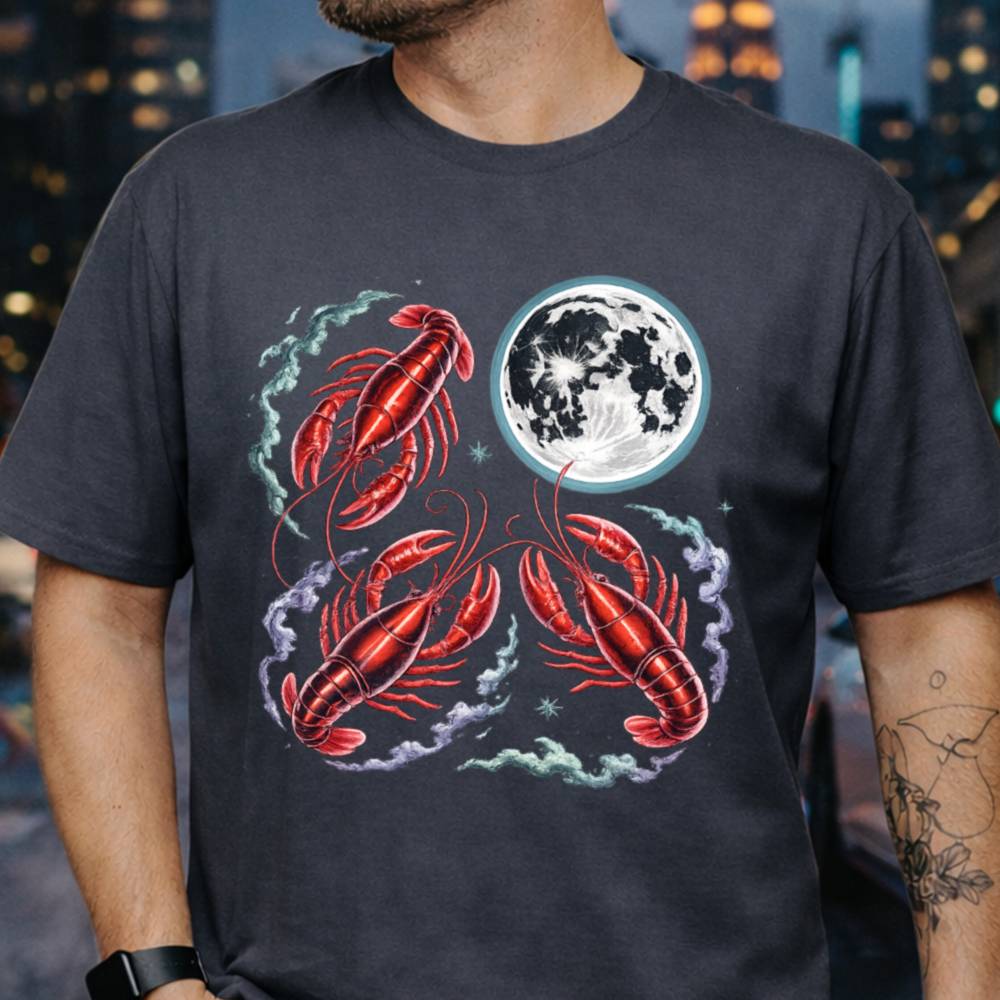 Embrace your love for seafood with our Lobster T-Shirt, featuring a striking design of vibrant lobsters set against a mystical moonlit backdrop. This T-Shirt captures the essence of coastal culture and is perfect for anyone who adores marine life or enjoys a good seafood feast. Ideal for casual outings, beach days, or summer barbecues, this shirt is a fun conversation starter that resonates with foodies and ocean enthusiasts alike. Crafted for comfort, it’s a great addition to your wardrobe for those who appreciate the beauty of the sea and its culinary treasures.