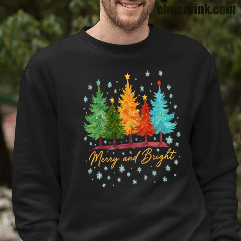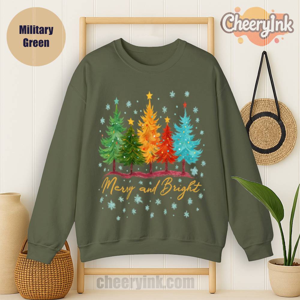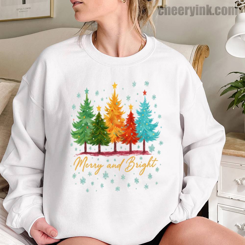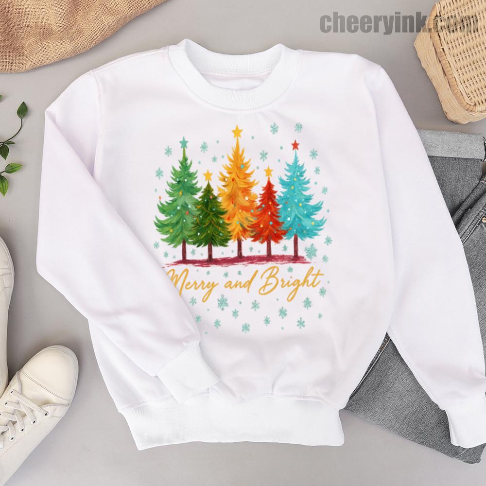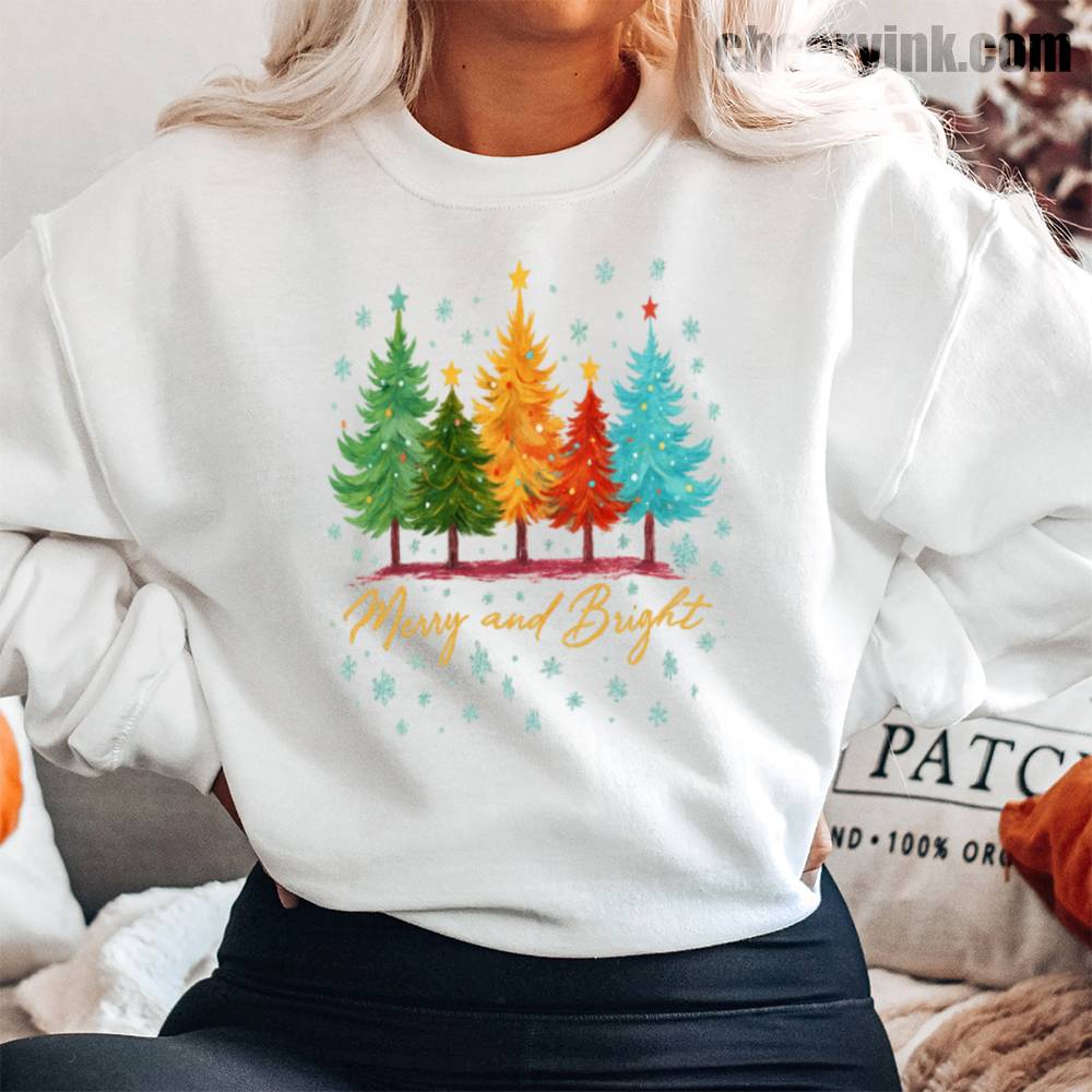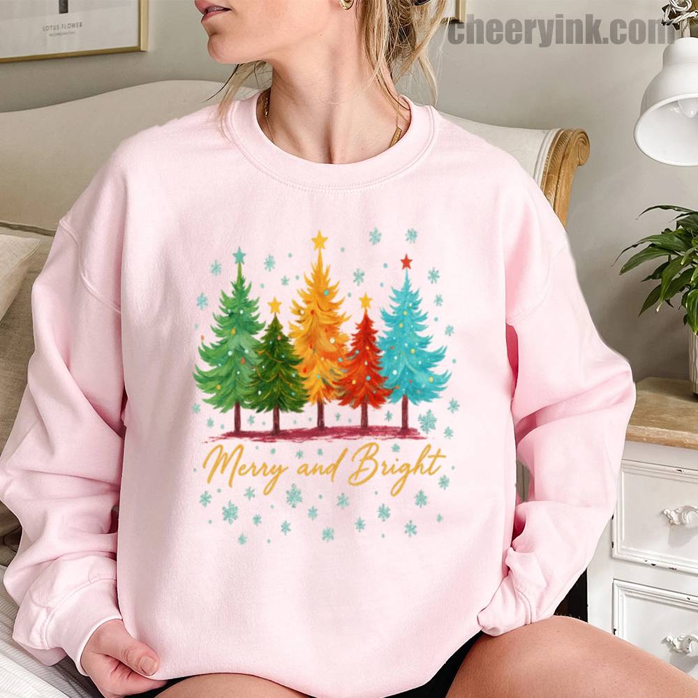 The Merry and Bright Sweatshirt combines holiday magic with ultimate comfort. Its bold, multicolor Christmas tree design against a snowy backdrop instantly brings warmth and joy to every festive occasion.