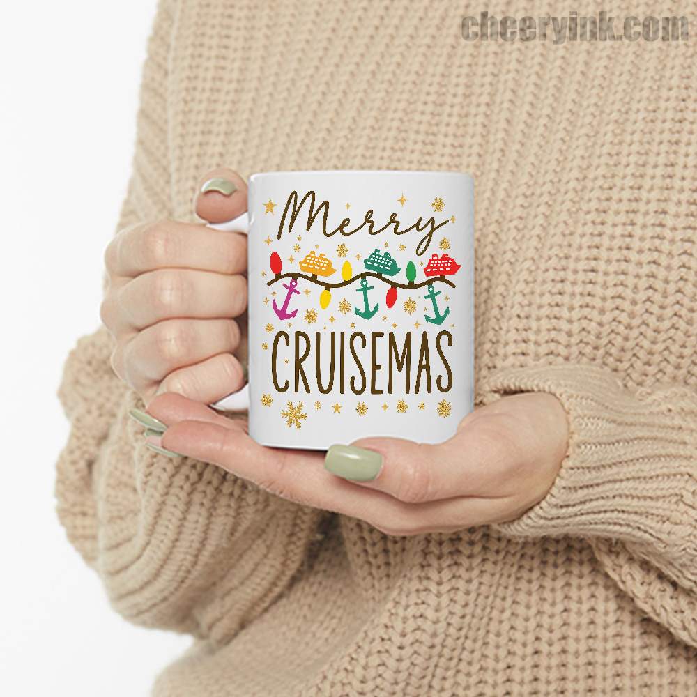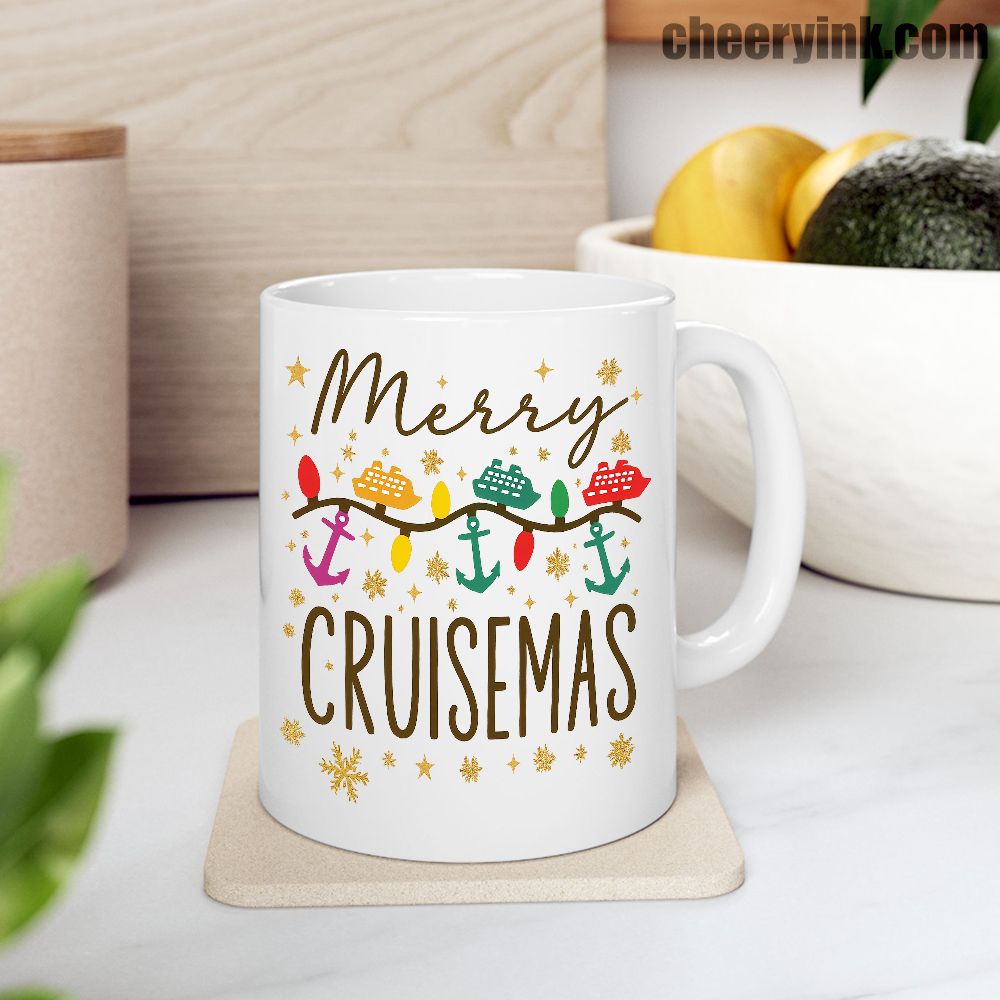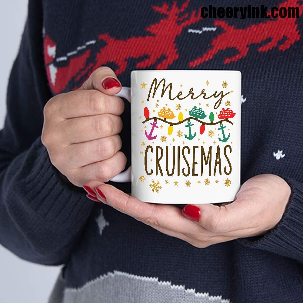 Start your day with a dose of cruise cheer with the Merry Cruisemas Mug! Featuring colorful ships, anchors, holiday lights, and gold sparkles, it’s the perfect mug for anyone who swaps pine trees for palm trees during Christmas.