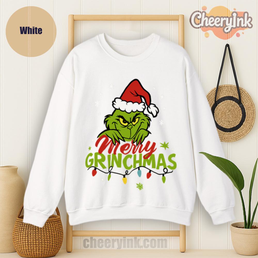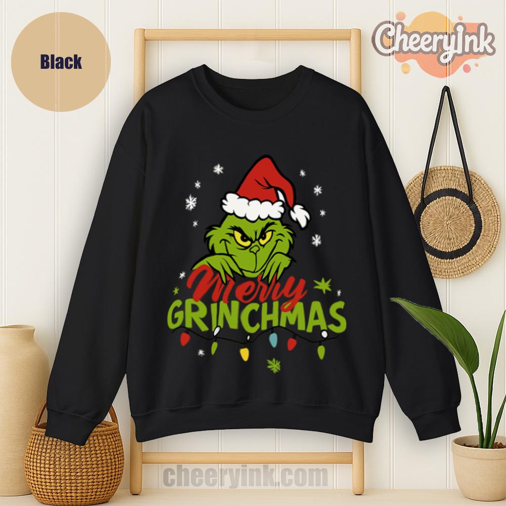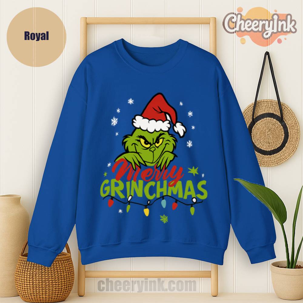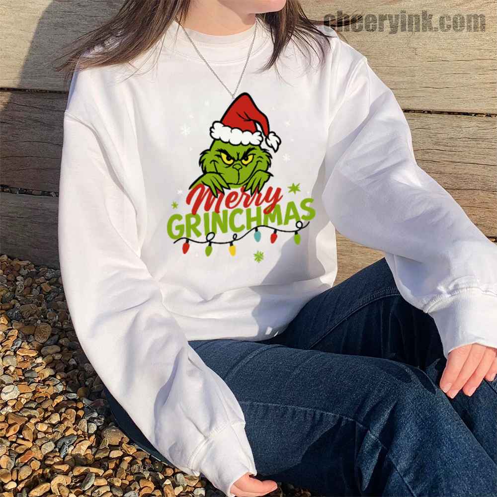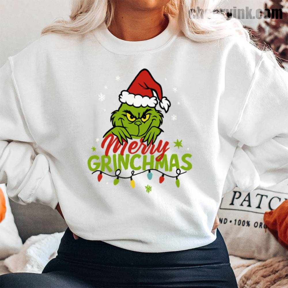 Who says Christmas can’t be sarcastic and cozy? The Merry Grinchmas Sweatshirt is the perfect holiday layer for those who like their cheer with a side of attitude. Featuring a bold graphic of a grumpy green Santa, festive snowflakes, and lights, this sweatshirt brings joy… kind of.