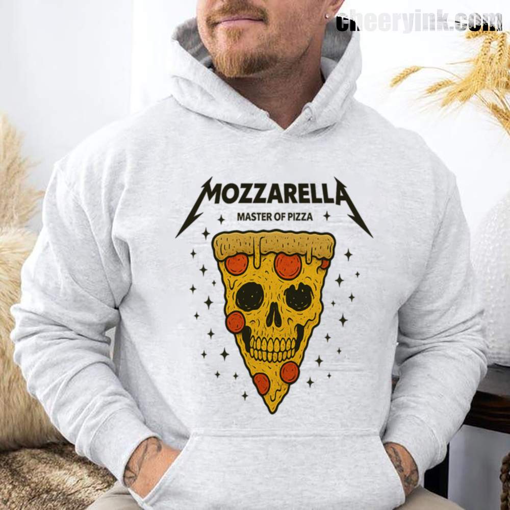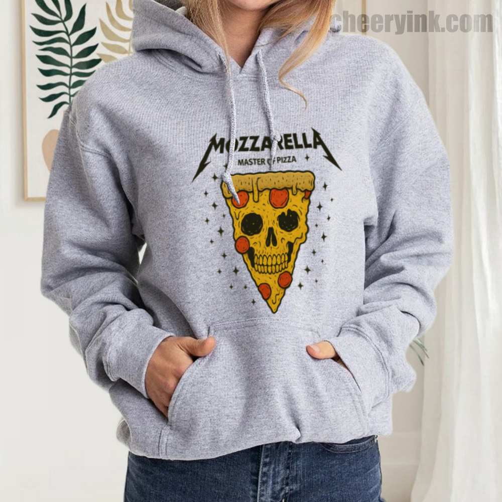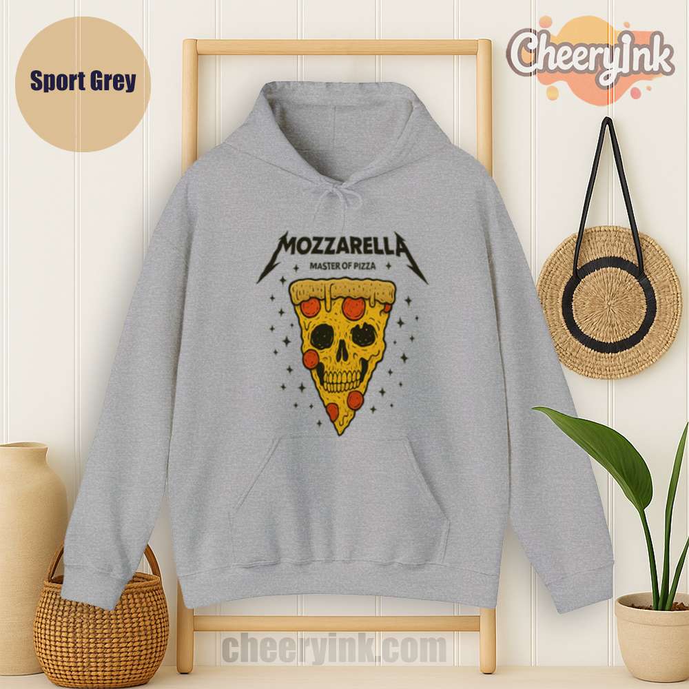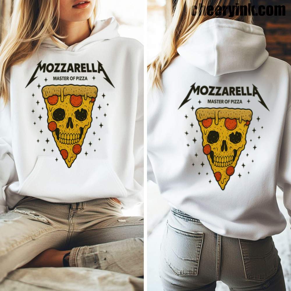 Turn heads and spark conversations with the Mozzarella Master of Pizza Hoodie! Inspired by metal band designs, this hoodie features a pizza slice shaped like a skull, surrounded by stars, and topped with melting mozzarella and pepperoni. It’s bold, fun, and deliciously rebellious.
