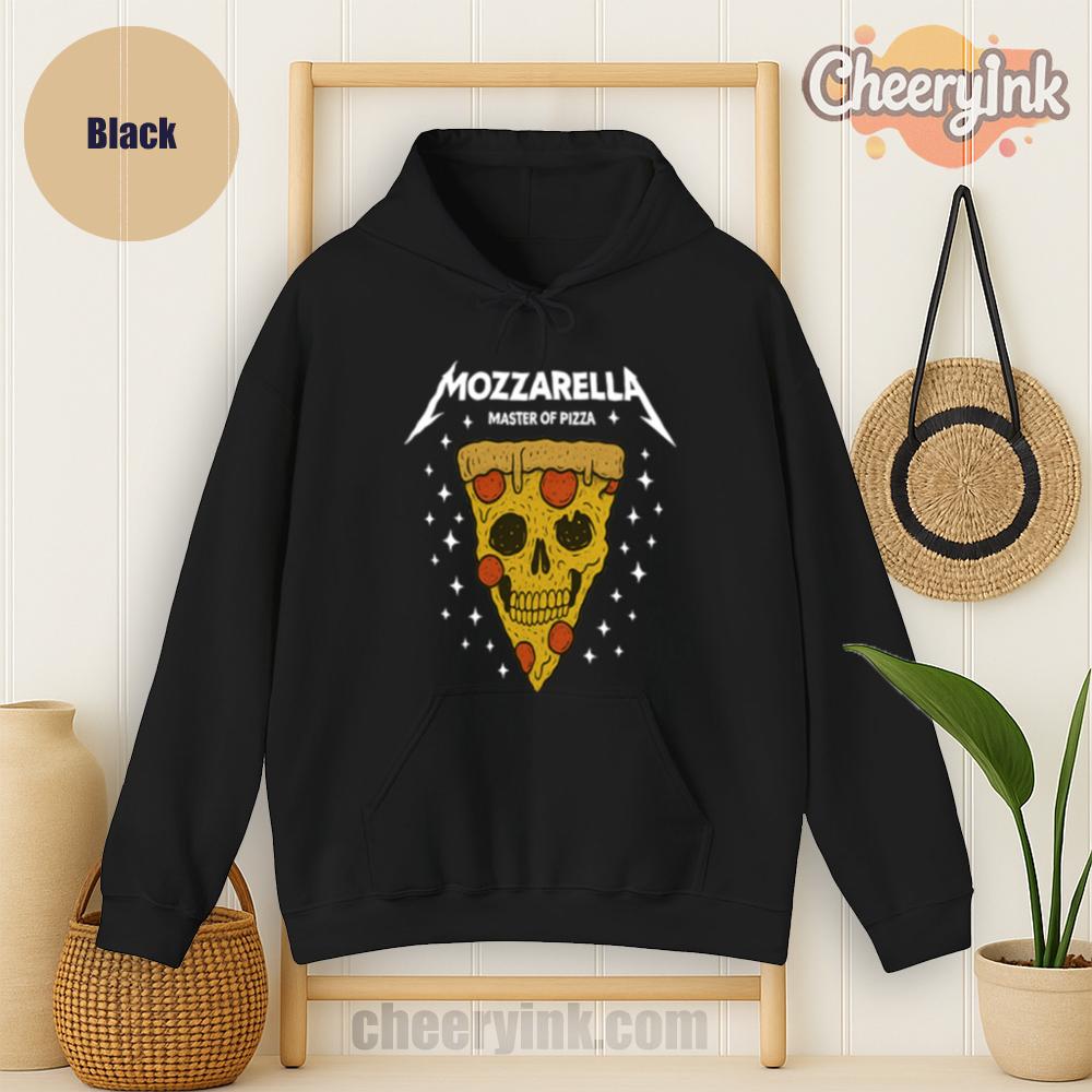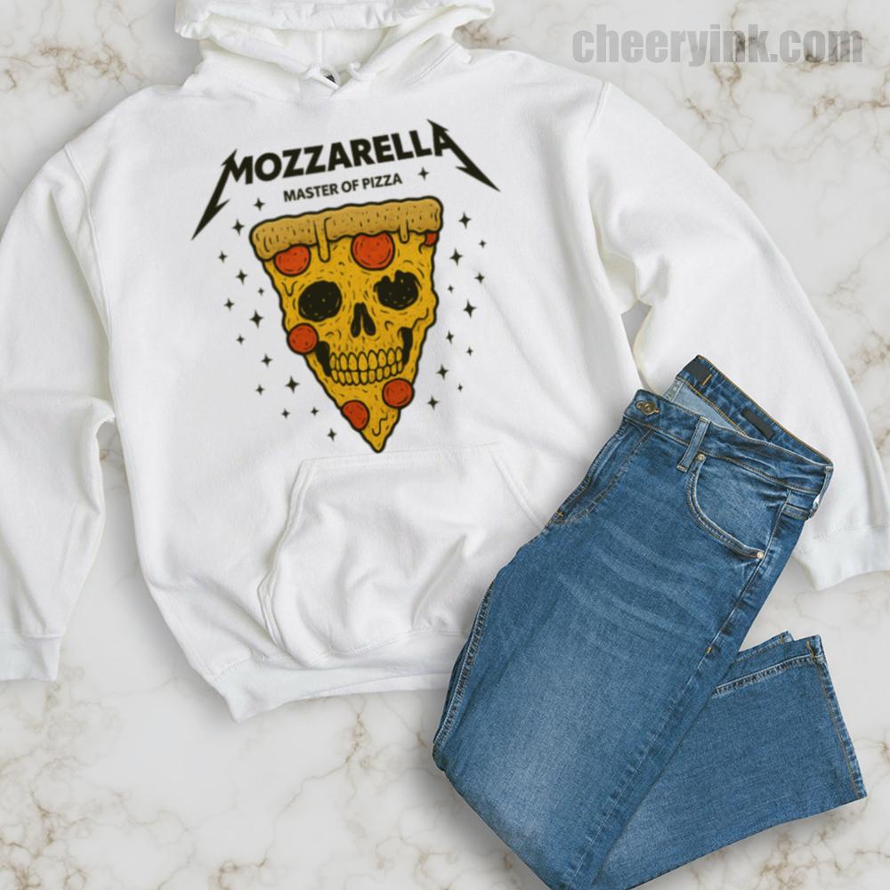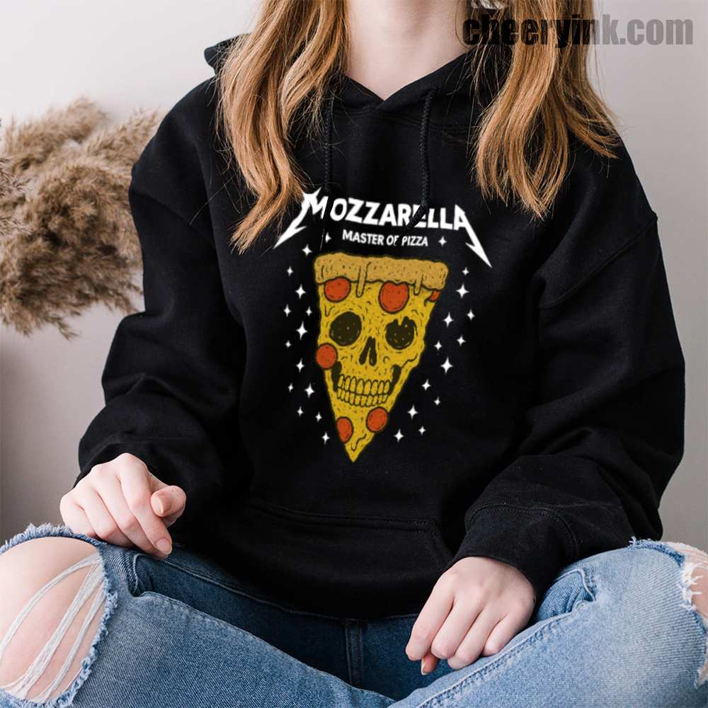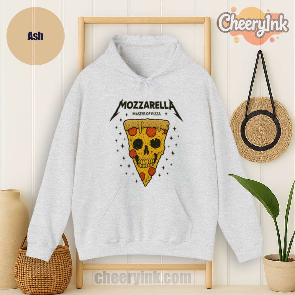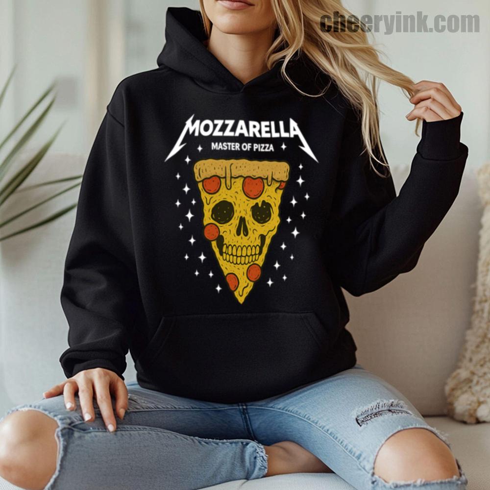 Turn heads and spark conversations with the Mozzarella Master of Pizza Hoodie! Inspired by metal band designs, this hoodie features a pizza slice shaped like a skull, surrounded by stars, and topped with melting mozzarella and pepperoni. It’s bold, fun, and deliciously rebellious.