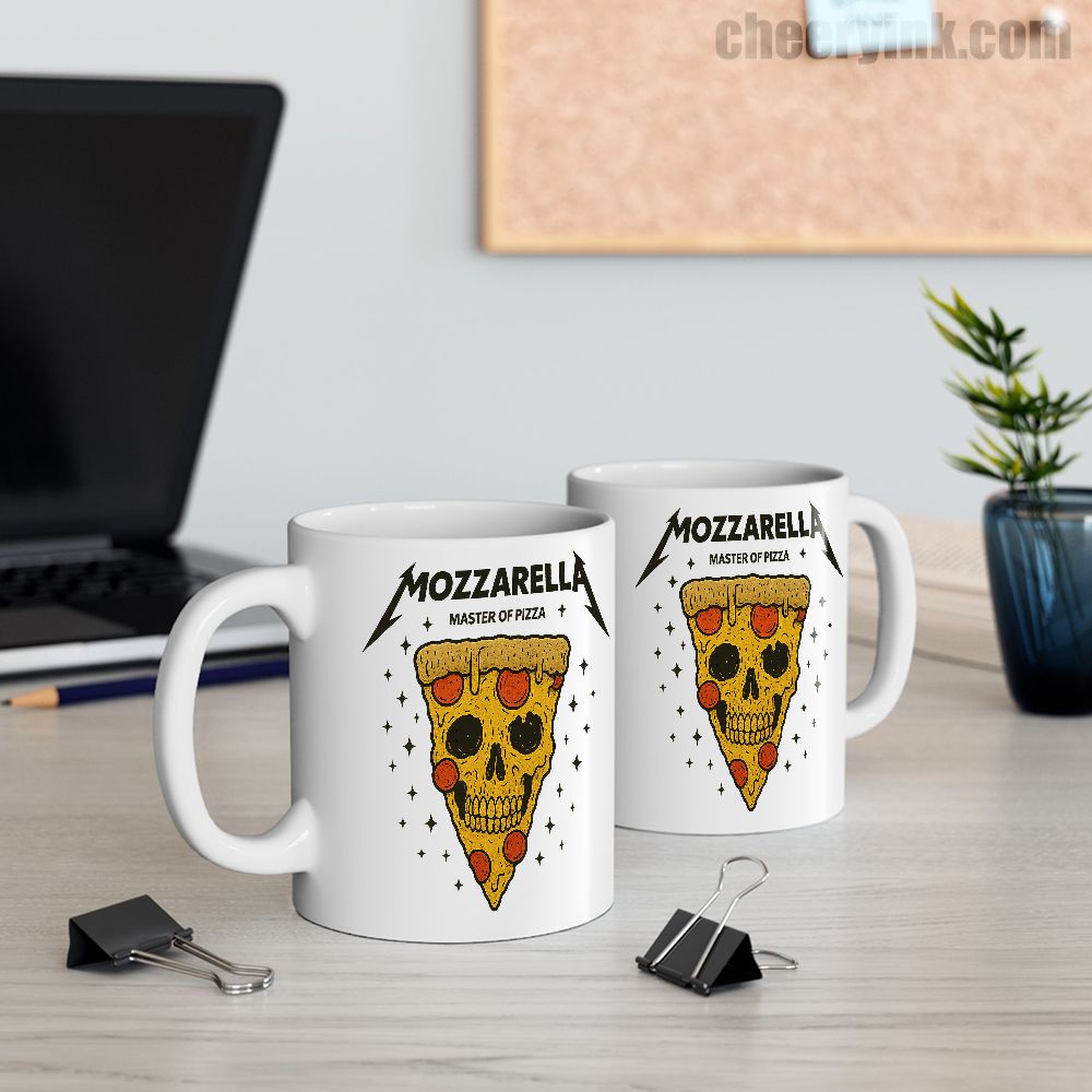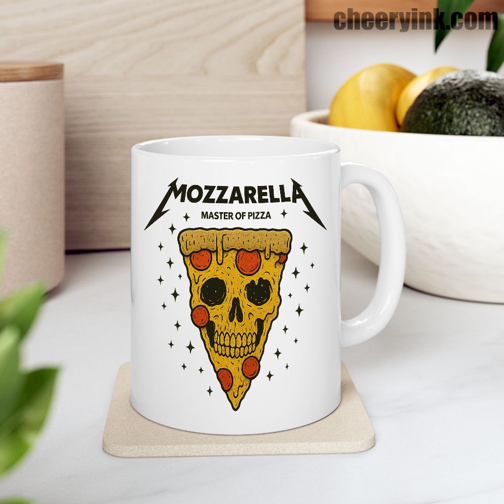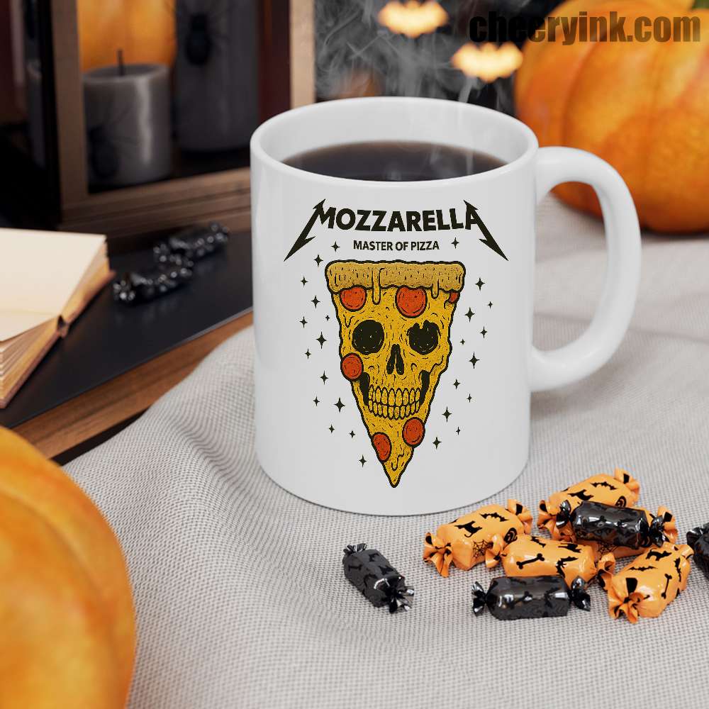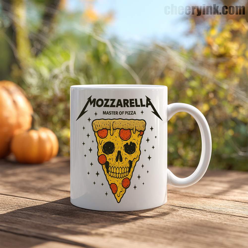 The Mozzarella Master of Pizza Mugis here to bring humor and flavor to your mornings. Featuring a badass skull-pizza design with bold lettering and retro vibes, this mug is ideal for those who rock hard and snack harder.