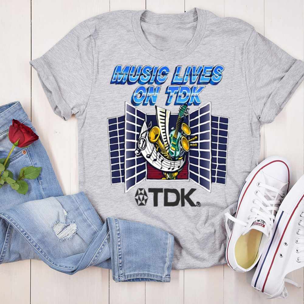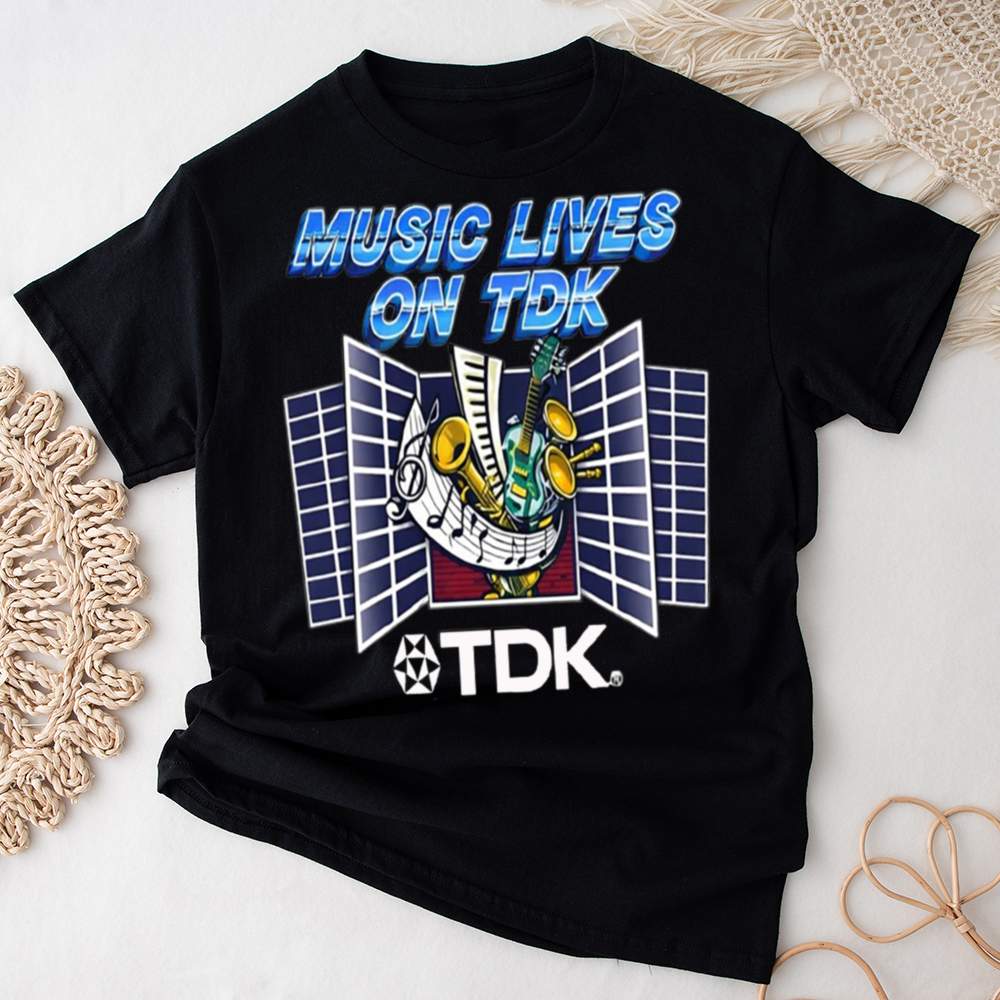 Music Lives on TDK T-Shirt – Retro Music Cassette Vibes