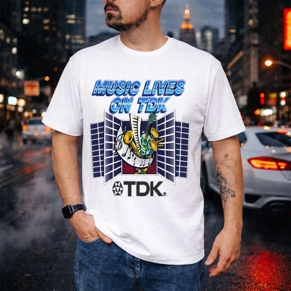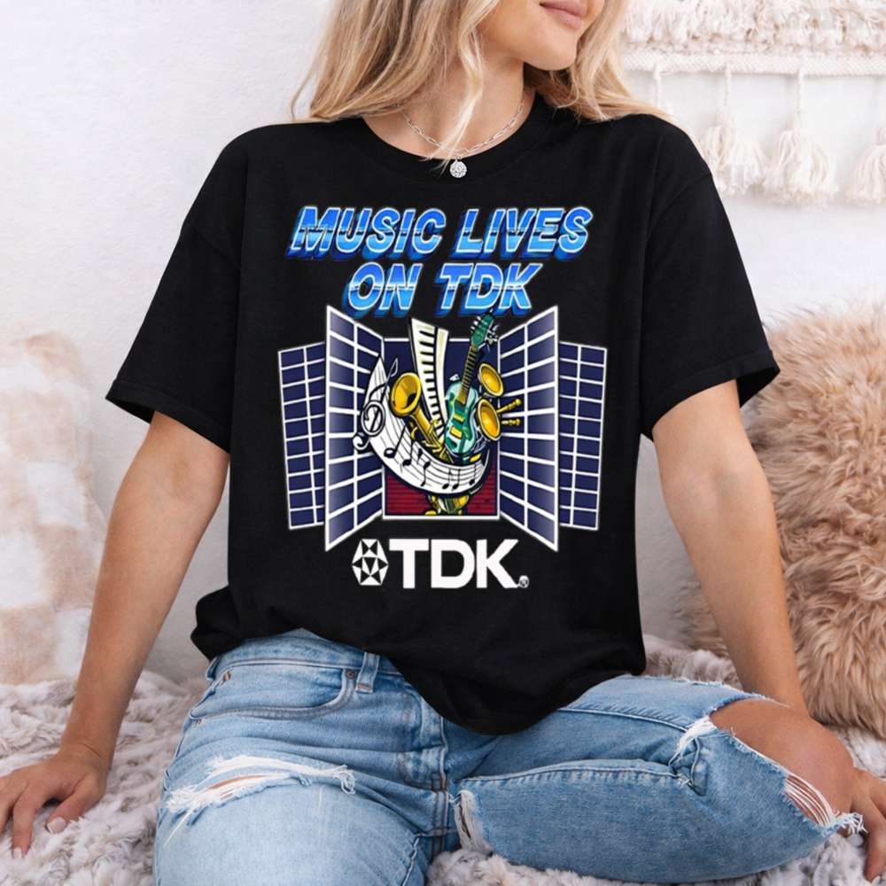 Celebrate the golden age of sound with the Music Lives on TDK T-Shirt. Featuring a retro explosion of instruments, notes, and classic cassette-era style, this unisex tee is perfect for music lovers, vintage tech fans, and 80s/90s nostalgia seekers.