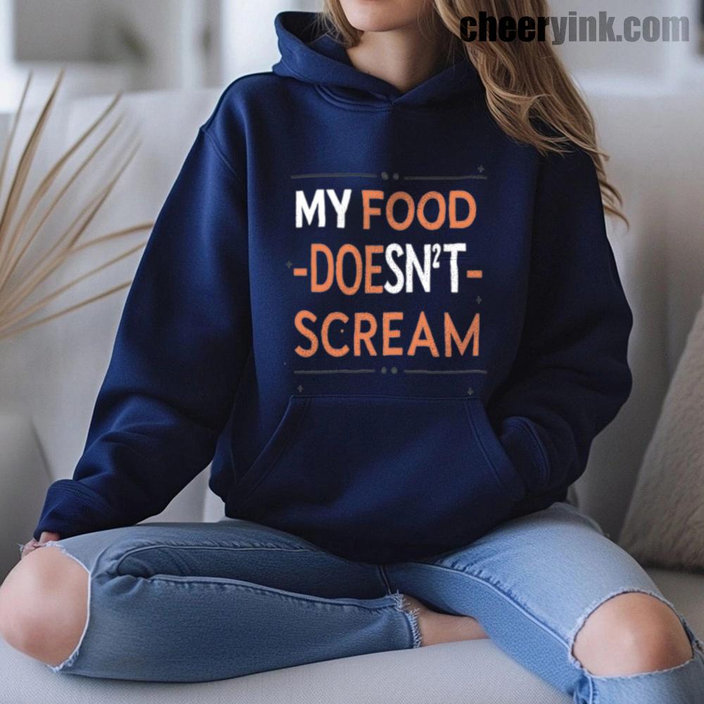 Our My Food Doesn’t Scream Hoodie. makes a bold statement against animal cruelty while keeping you cozy and stylish. With its clean, impactful design and warm fleece interior, it’s the perfect layer for cooler days and cooler minds. This hoodie is ideal for those embracing a plant-based lifestyle who want to wear their compassion proudly.