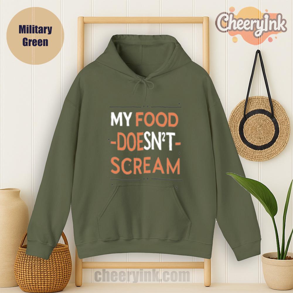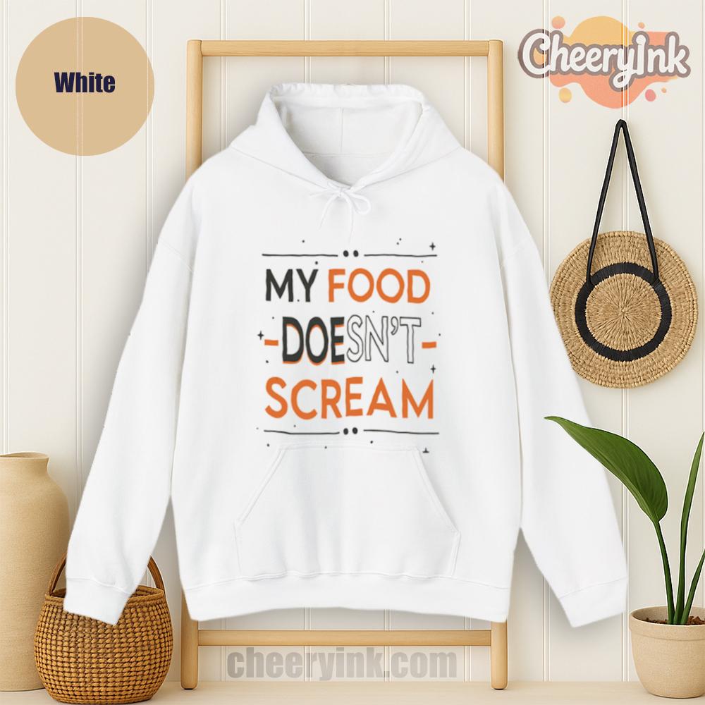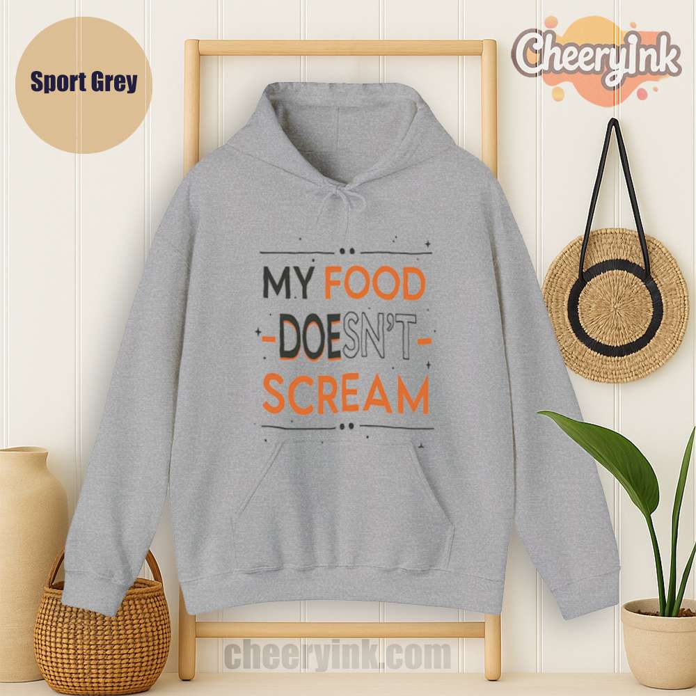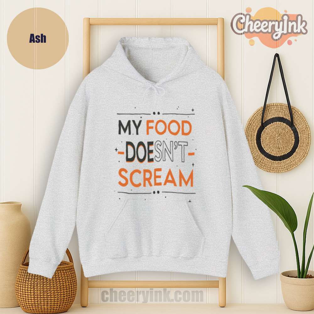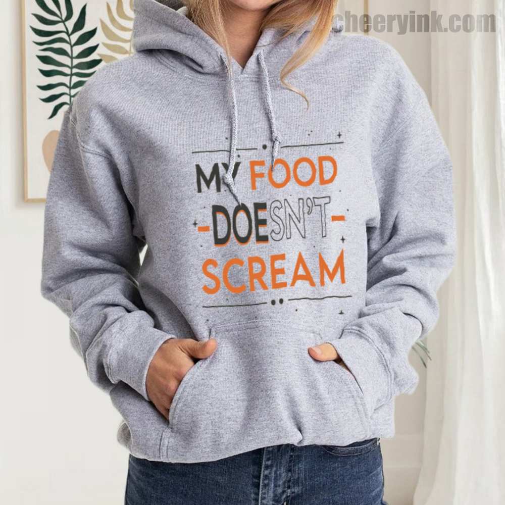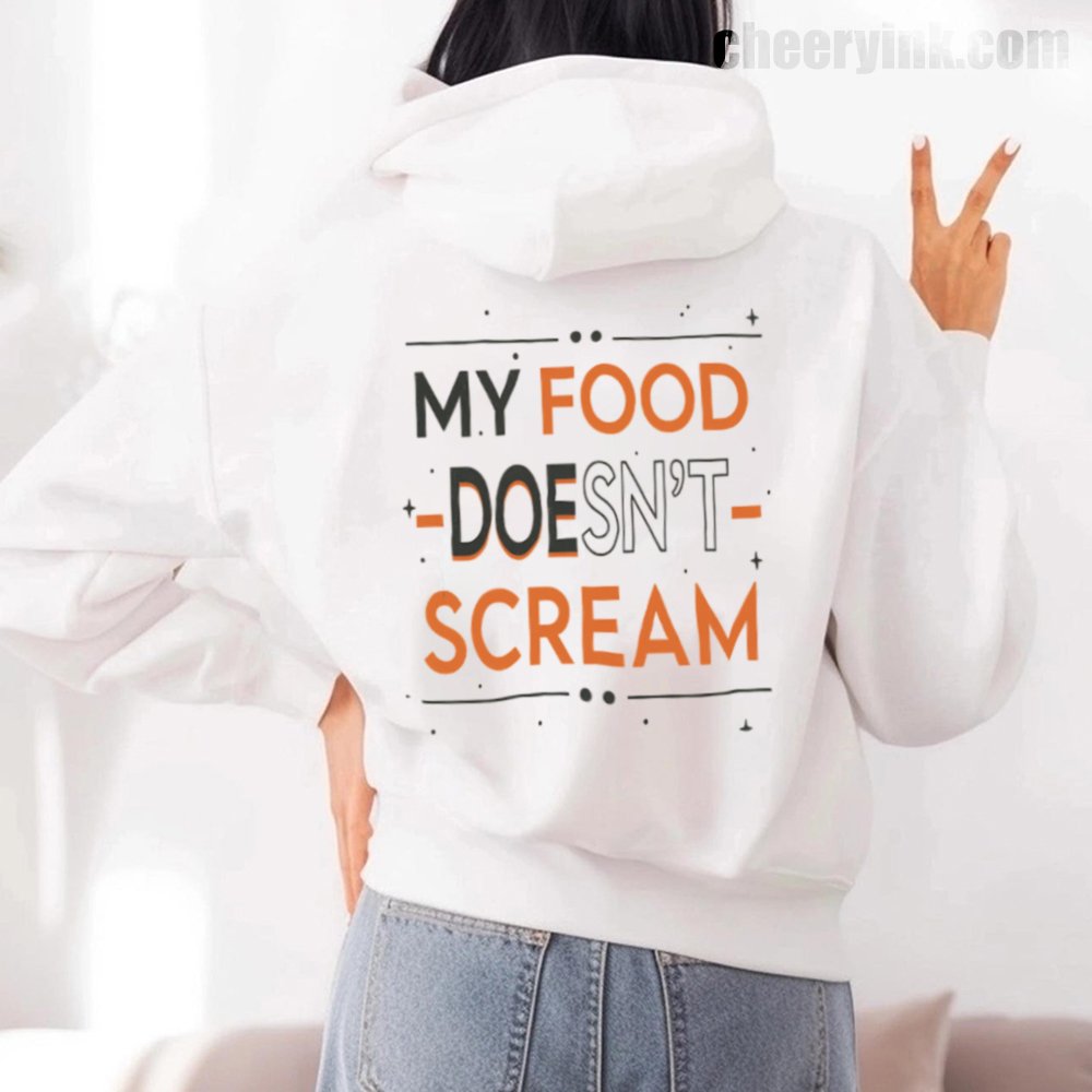 Stay warm, stay kind. Get your My Food Doesn’t Scream Hoodie. and let your compassion shine.