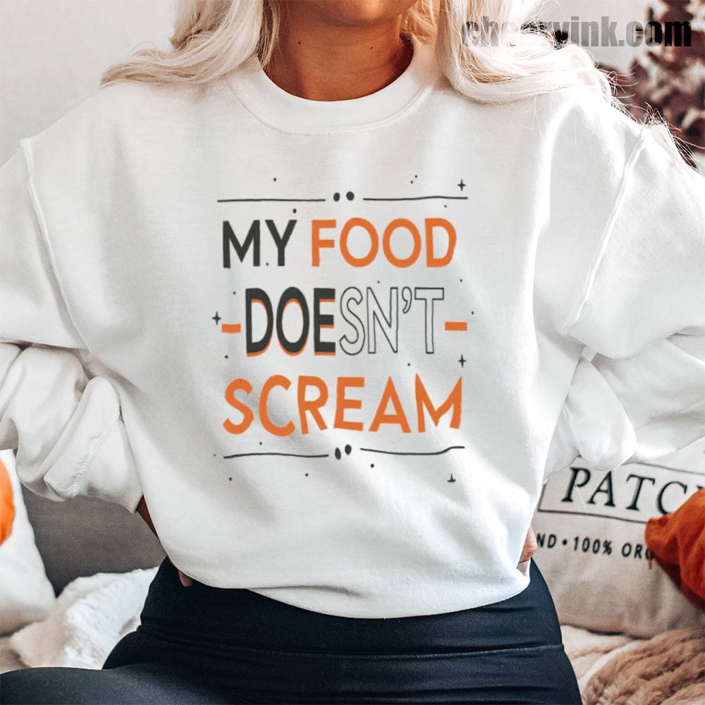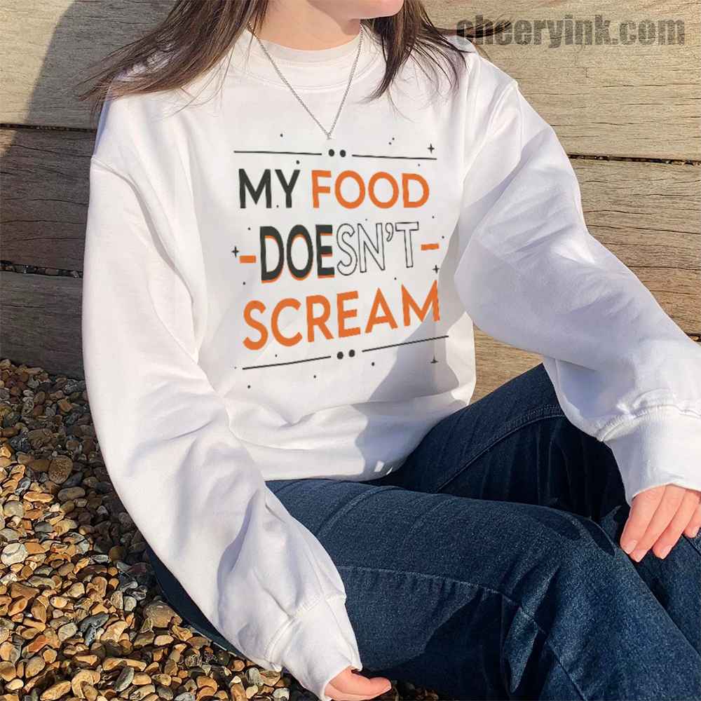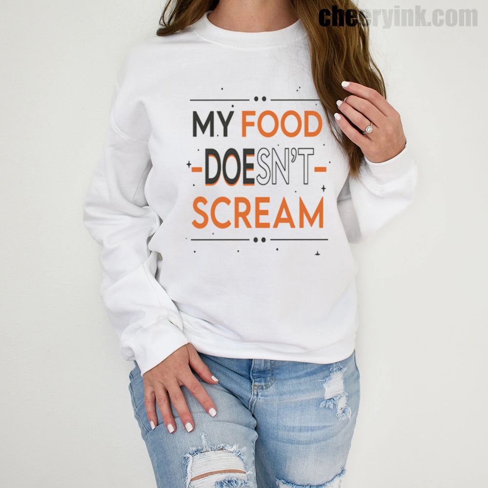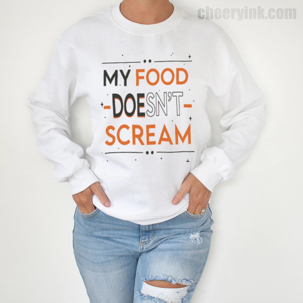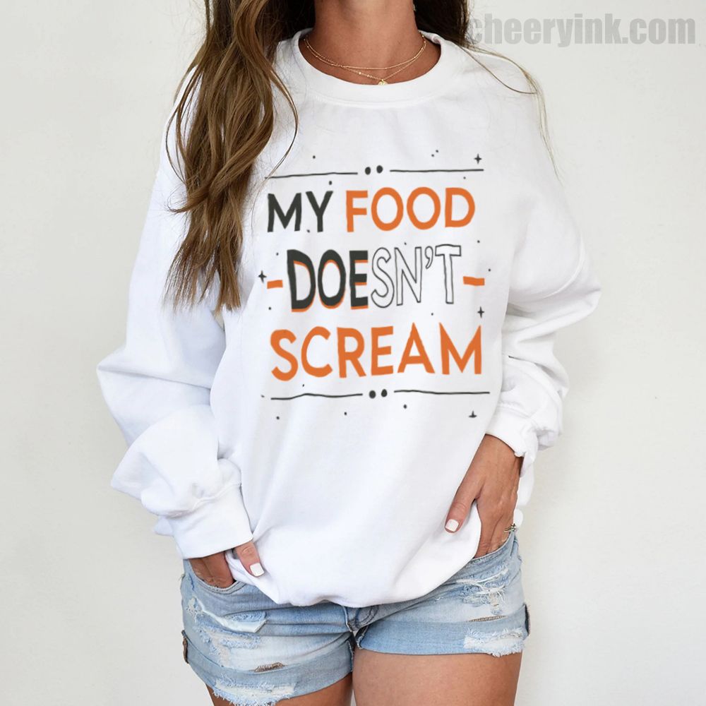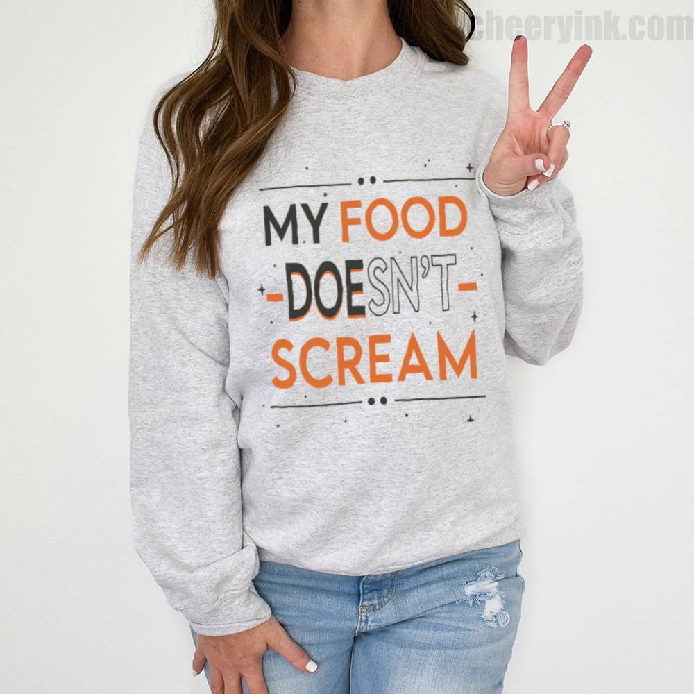 Put kindness front and center. Grab your My Food Doesn’t Scream Sweatshirt and be a voice for the voiceless.