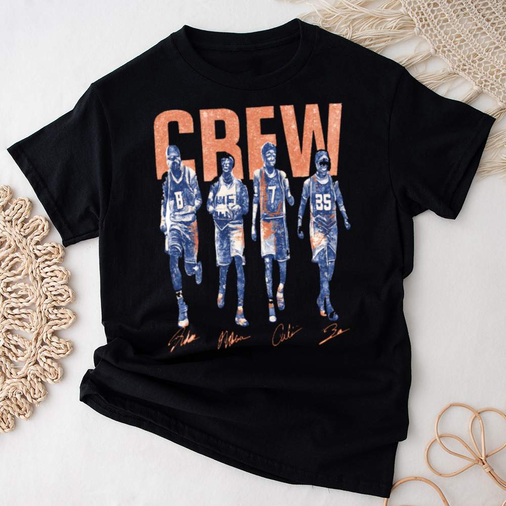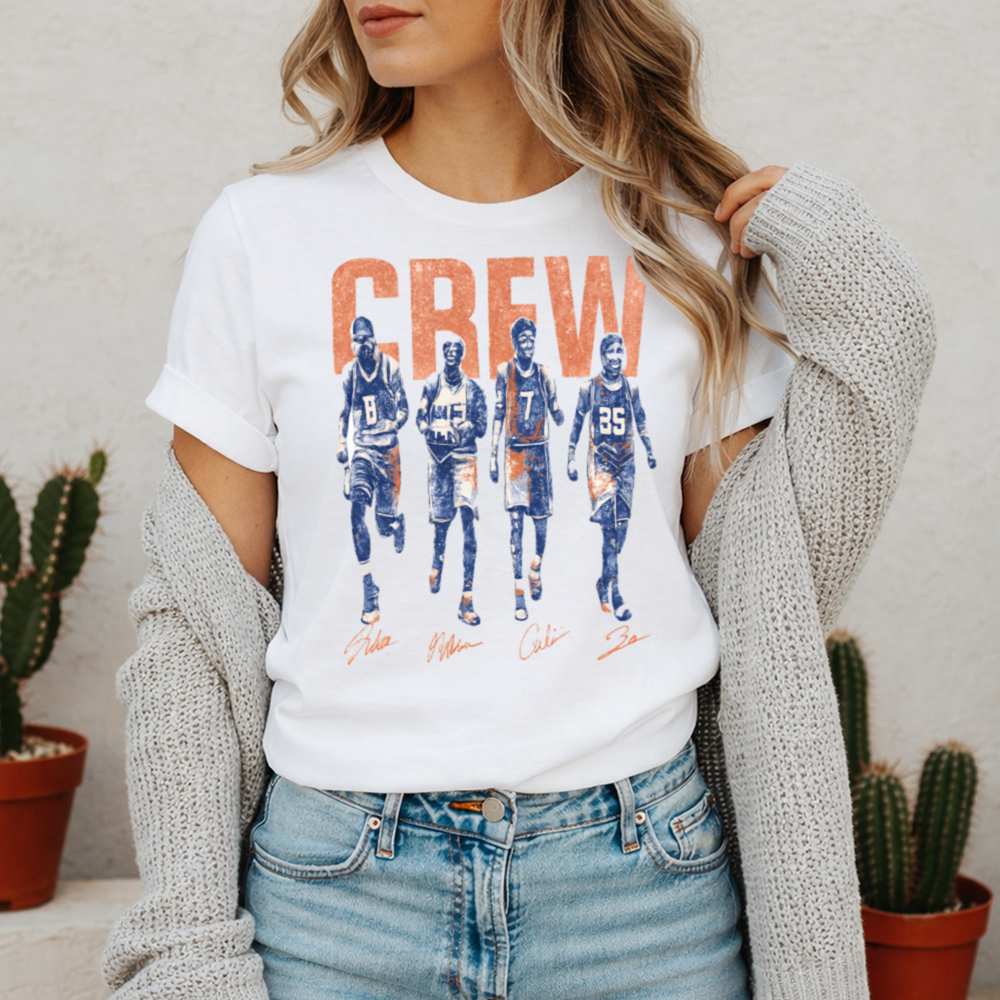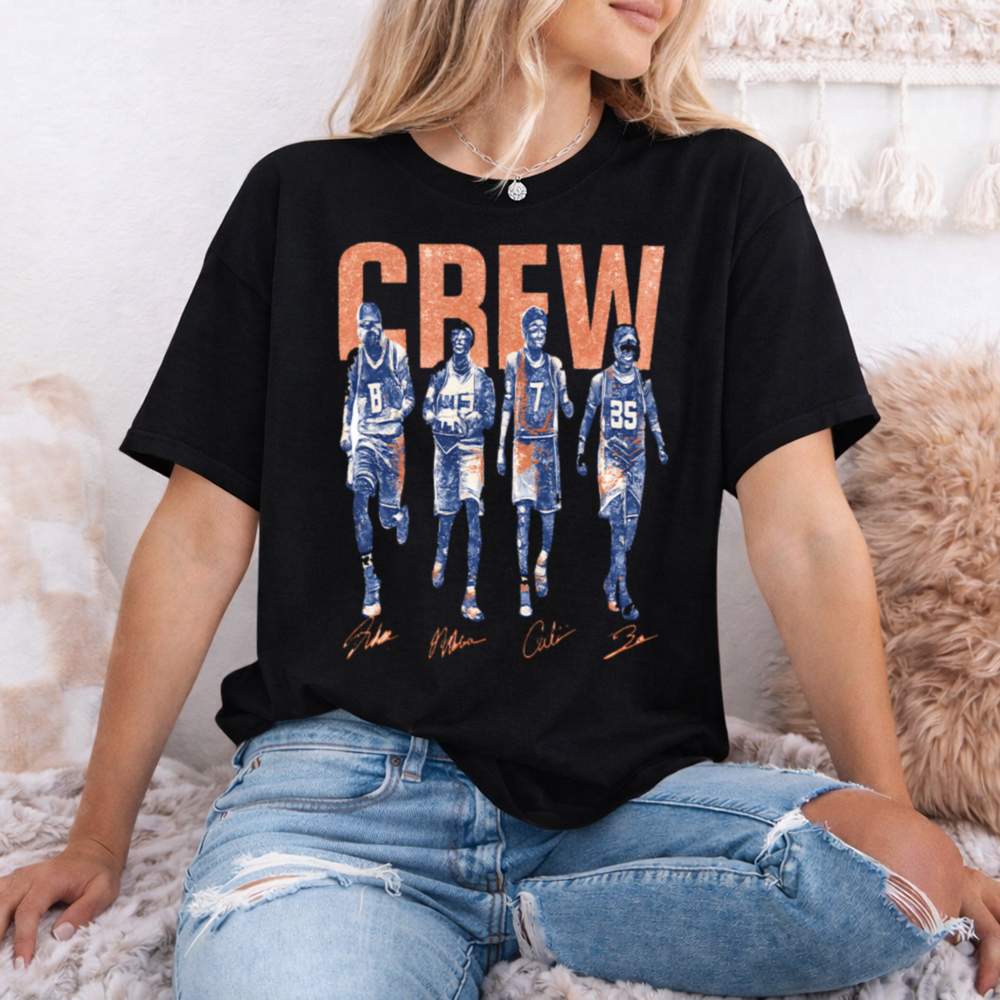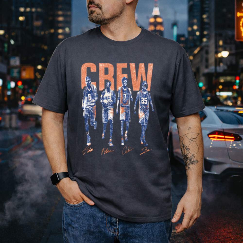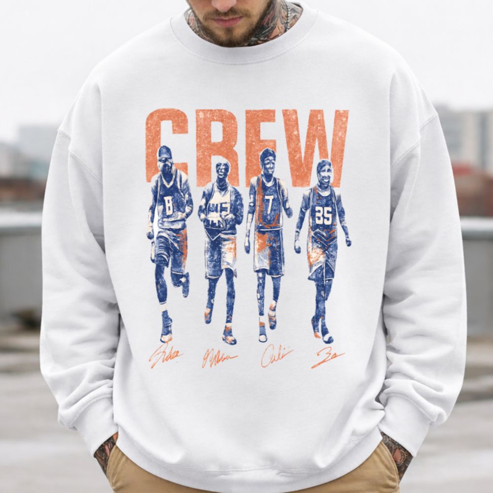 The distressed orange-and-blue artwork gives it that throwback vibe, while the bold “CREW” lettering ties it all together for a streetwear-inspired finish. Made from 100% soft cotton and designed for comfort and movement, it’s perfect for watching the game, hitting the courts, or showing your fandom on the go.