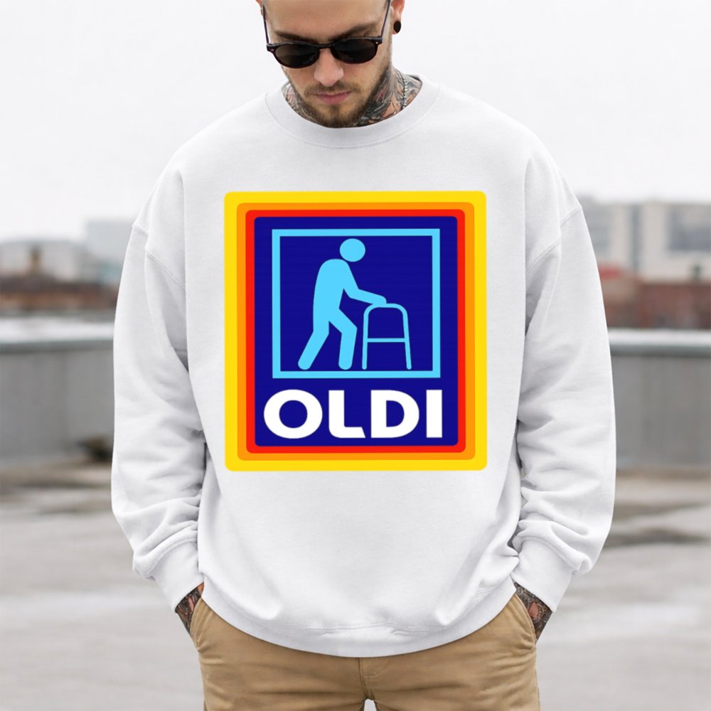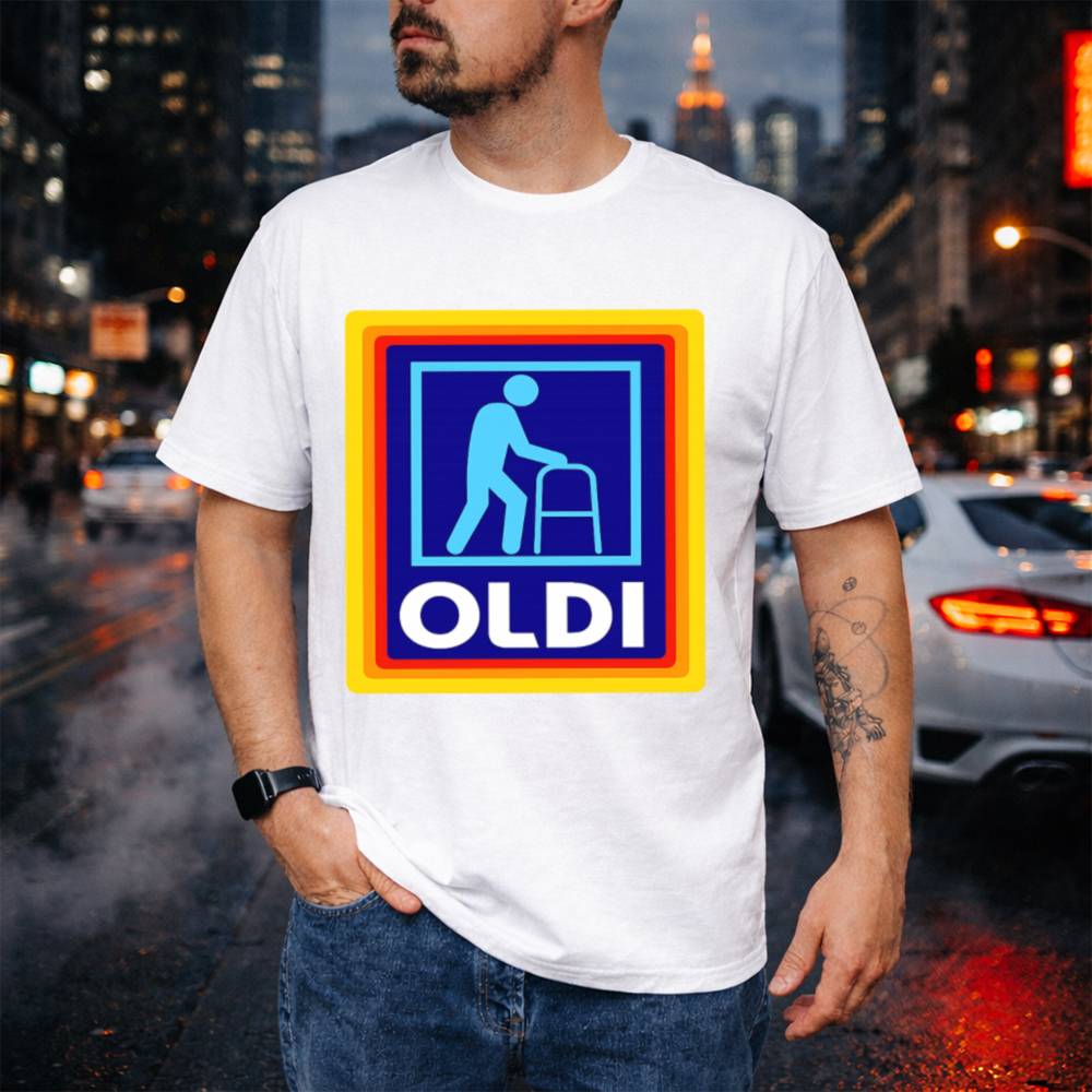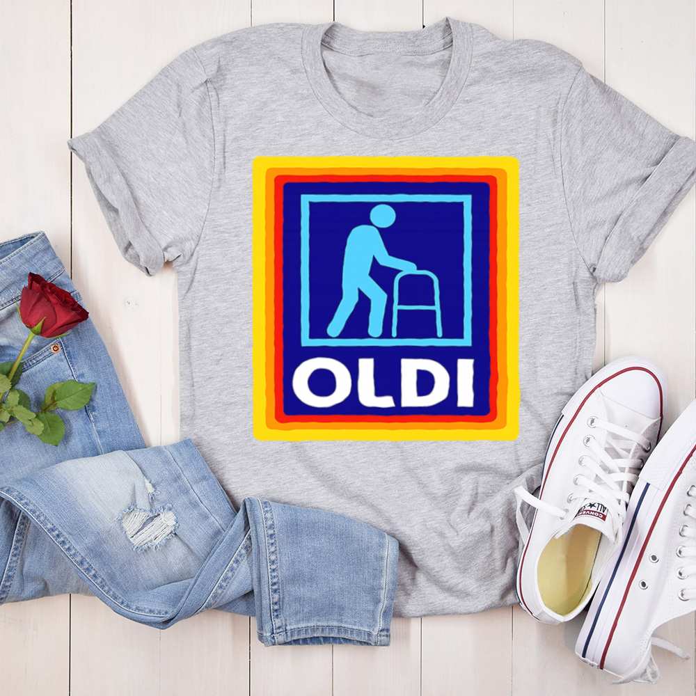 Laugh in the face of getting older with the Oldi Parody T-Shirt. Inspired by the instantly recognizable ALDI logo but cleverly reworked to feature a stick figure with a walker and the word “OLDI,” this shirt delivers peak dad-joke energy and meme-worthy style. Whether you’re aging gracefully or not-so-gracefully, this tee brings the humor loud and clear.