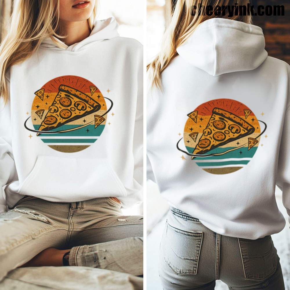 Wrap yourself in celestial comfort with our Pizza Galaxy Hoodie. Featuring a slice of pepperoni pizza floating through a vibrant retro galaxy, this hoodie is perfect for anyone who dreams of pizza in space. Whether you’re lounging on the couch or braving the cold, this design turns your love of pizza into a stellar fashion statement.