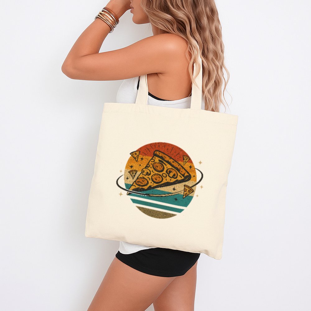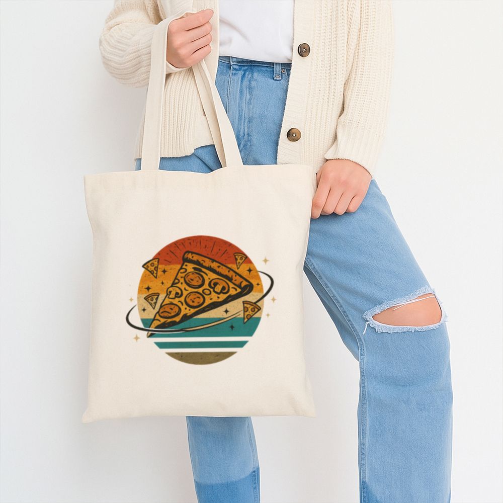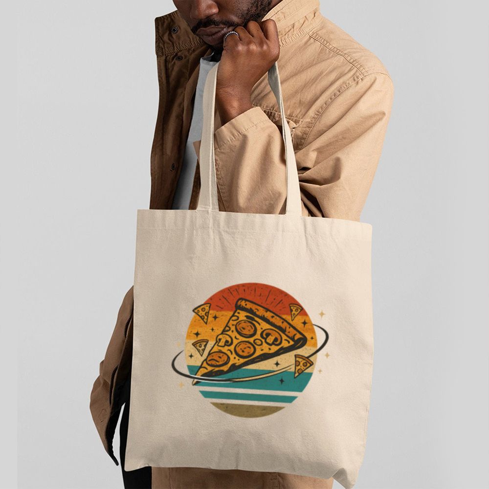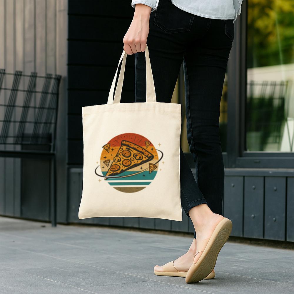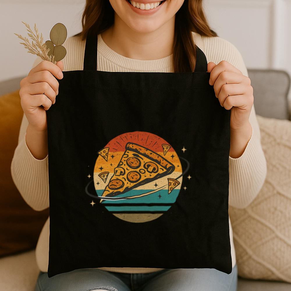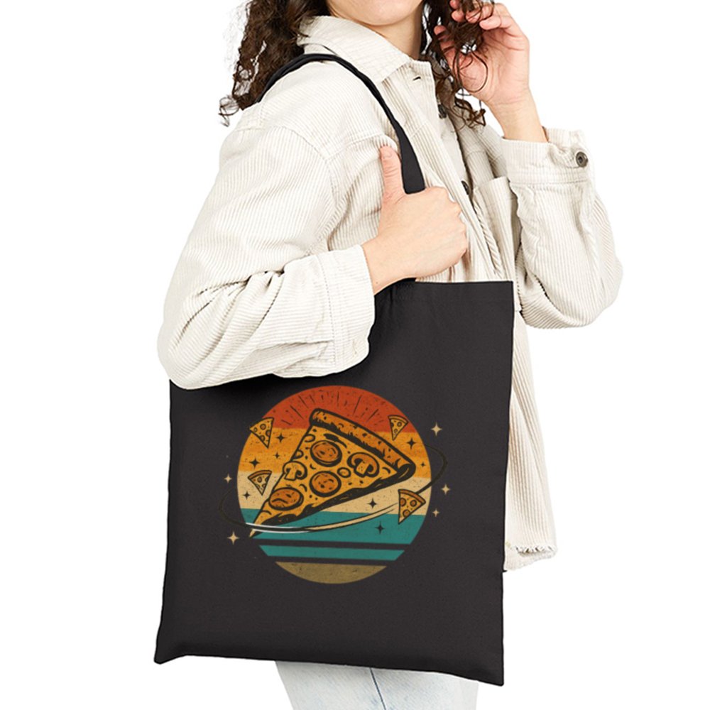 Pizza Galaxy Tote Bag – Retro Space For Gift Pizza Reusable Bag