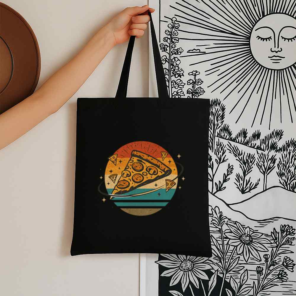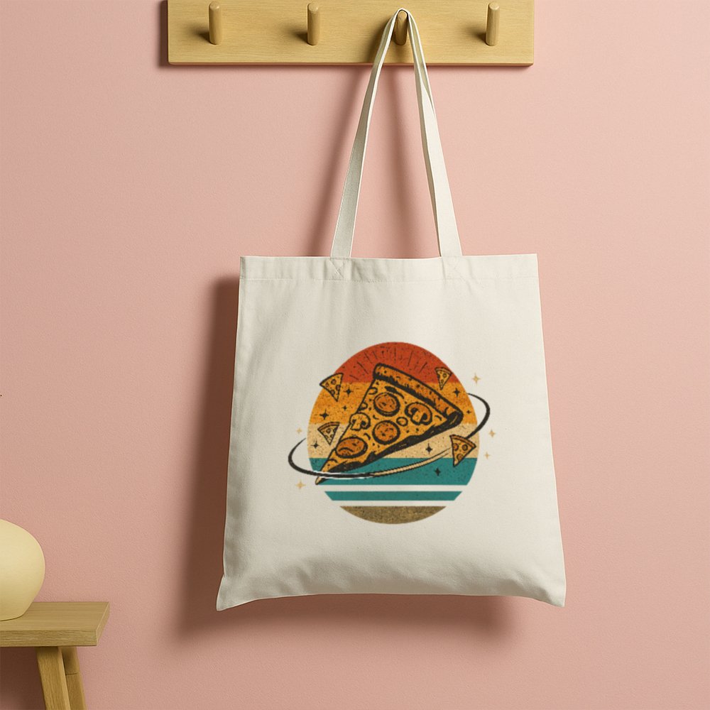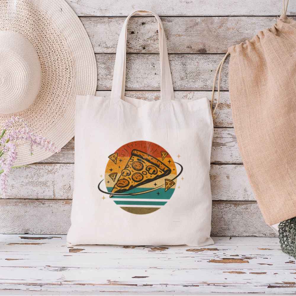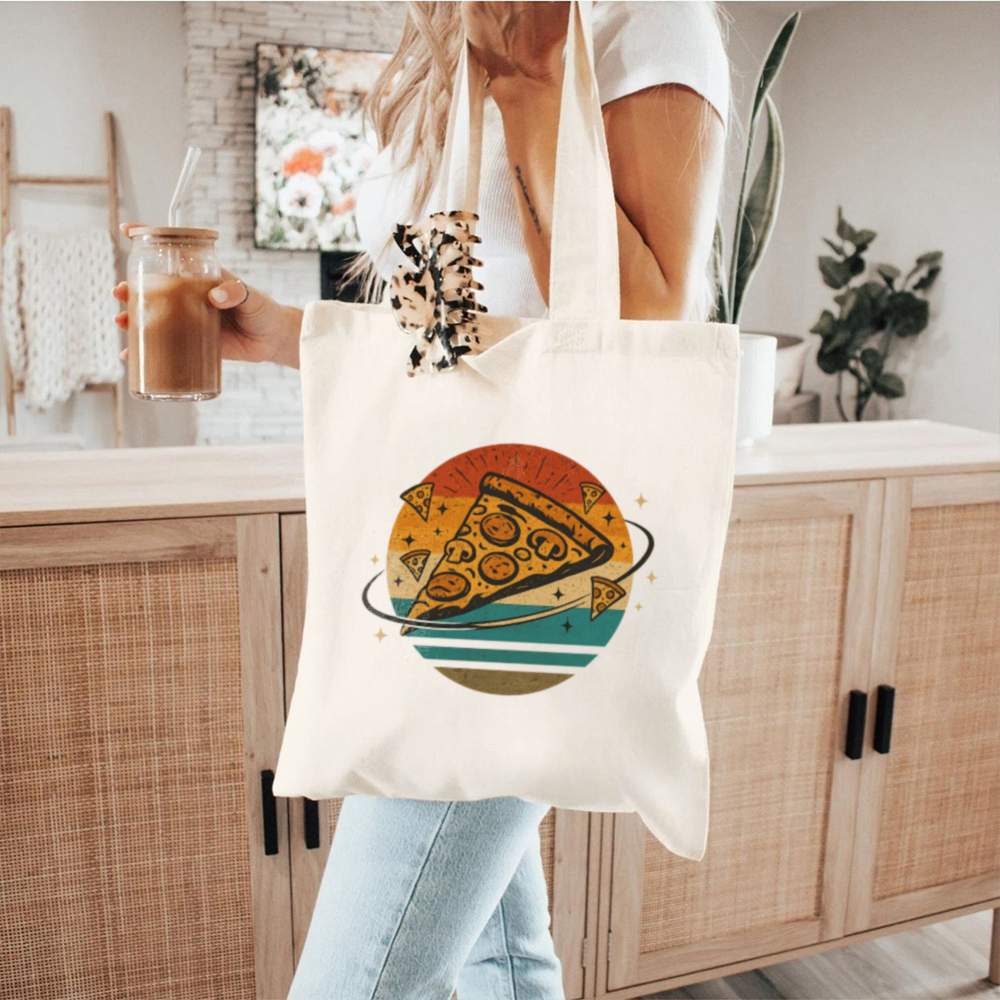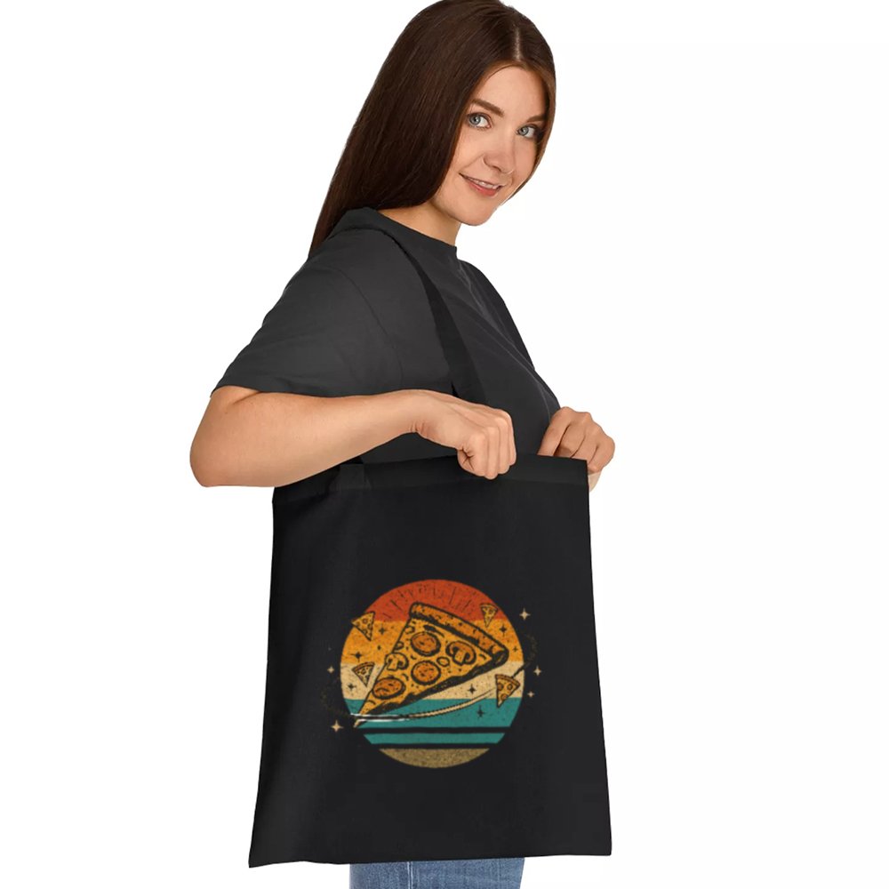 Pizza Galaxy Tote Bag – Retro Space For Gift Pizza Reusable Bag