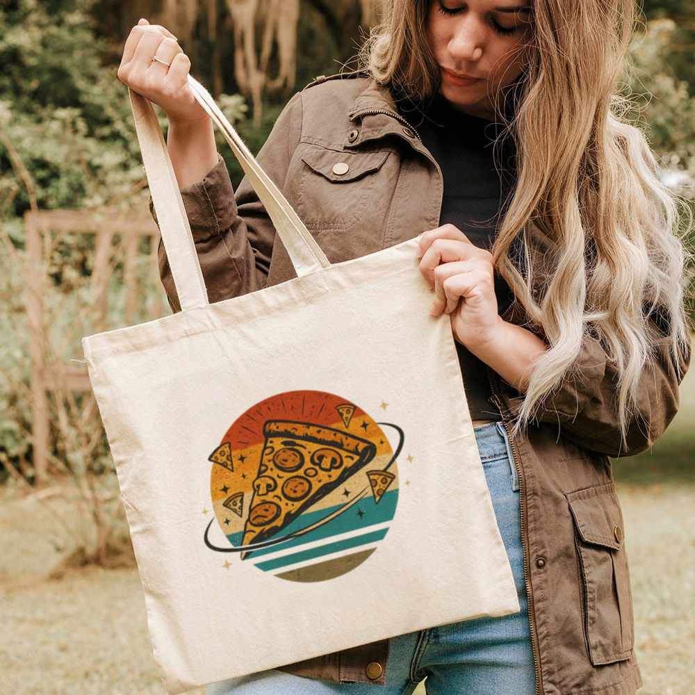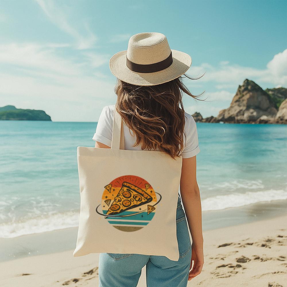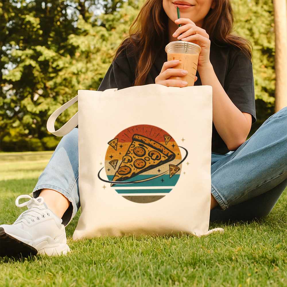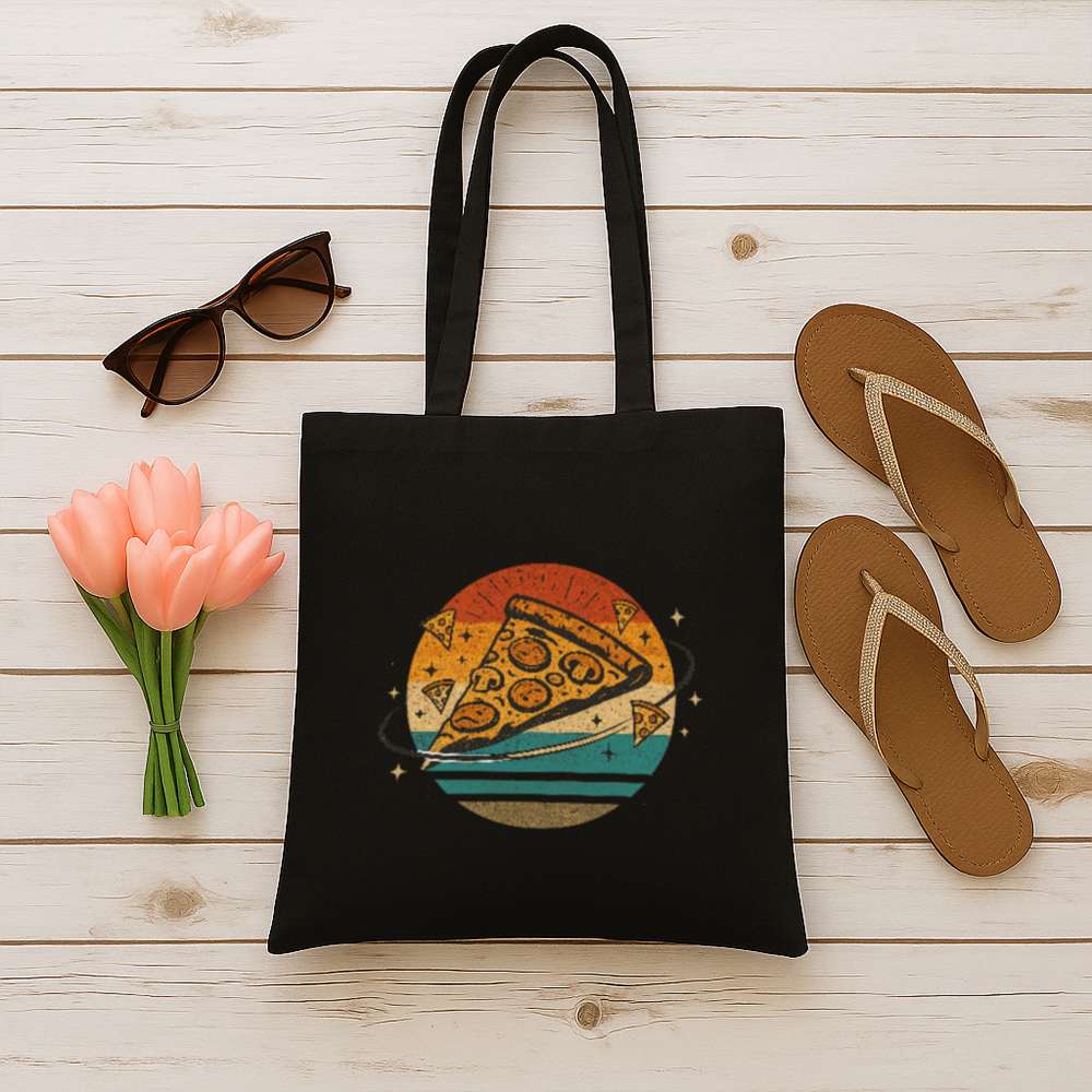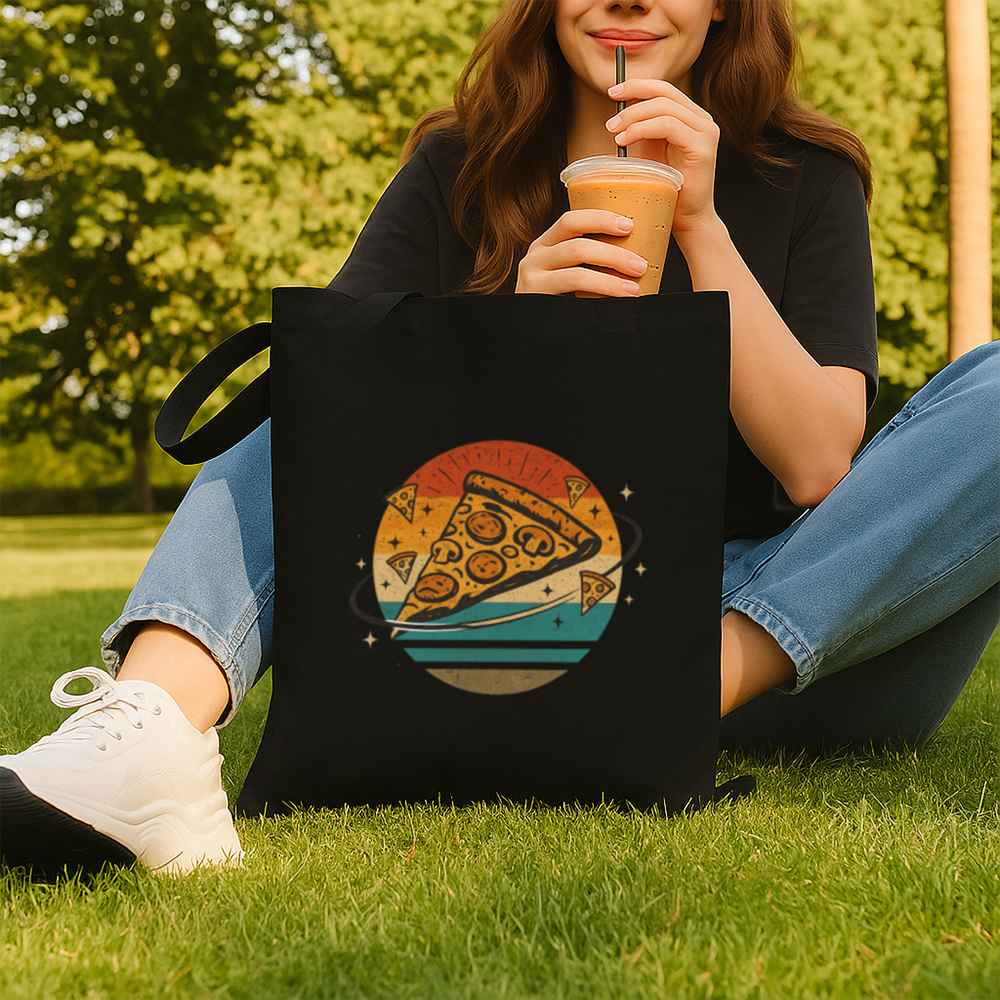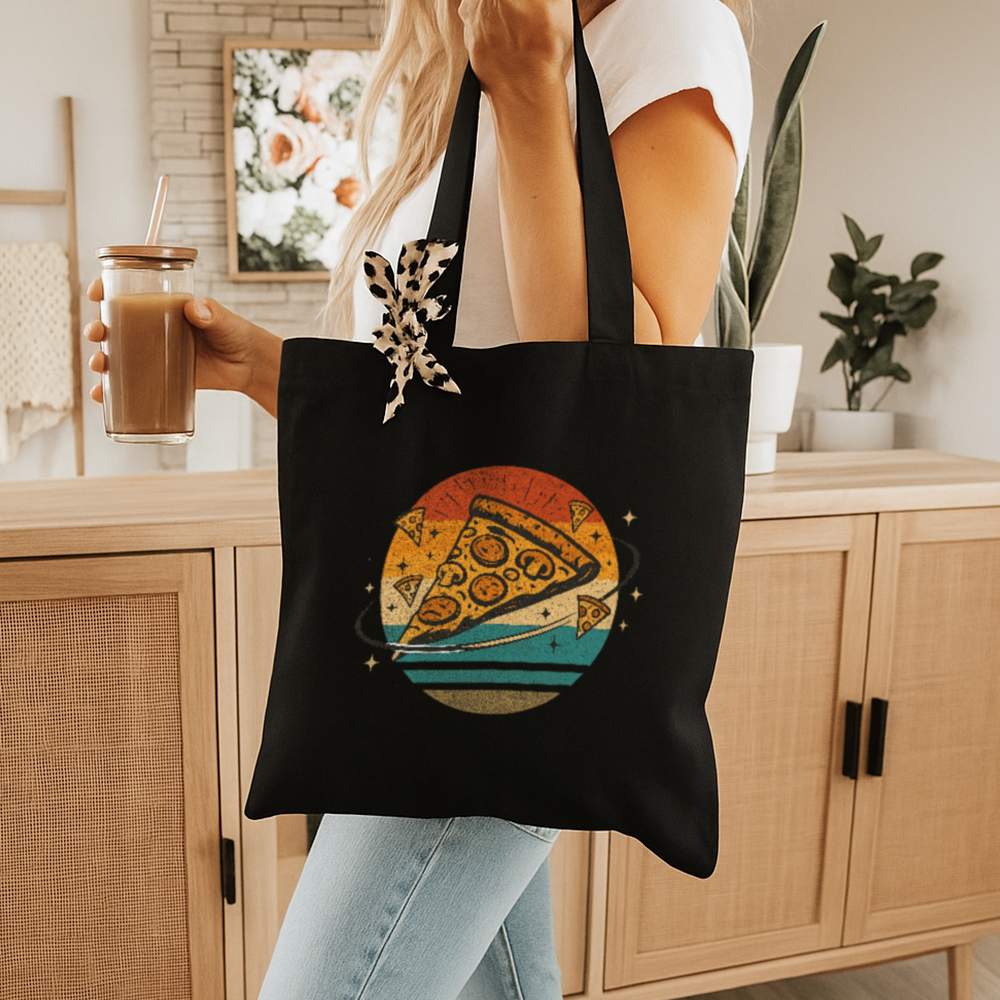 Pizza Galaxy Tote Bag – Retro Space For Gift Pizza Reusable Bag