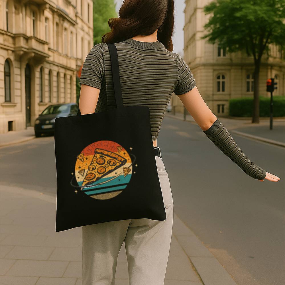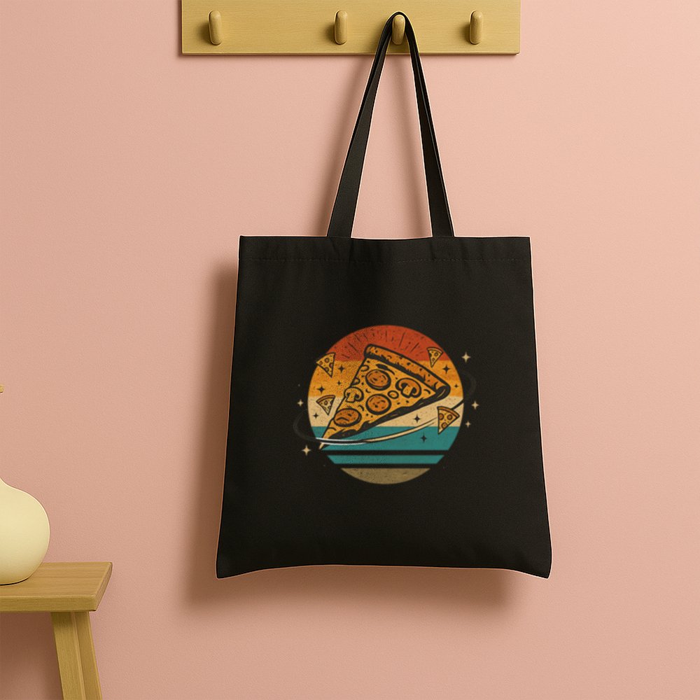 Carry your essentials in style with this Pizza Galaxy Tote Bag! Featuring a flying slice of pizza in space, it’s a fun and reusable bag for shopping, school, or daily use.