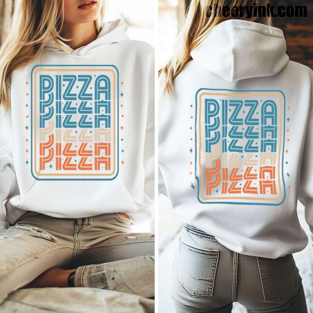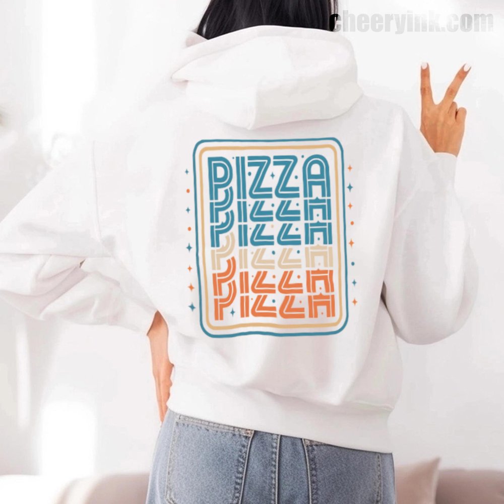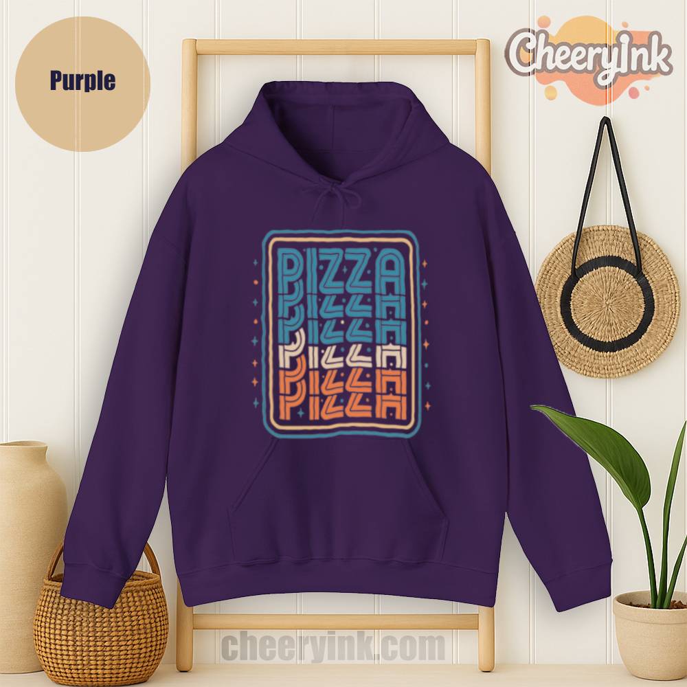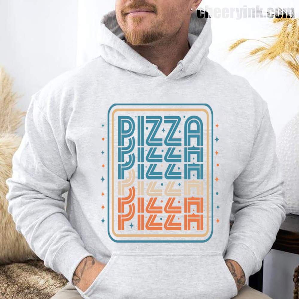 There’s no better combo than warmth and pizza and our Pizza Hoodie delivers both in style. Featuring a bold, multi-color retro design with the word “PIZZA” repeated in funky, eye-catching typography, this hoodie turns heads and starts conversations. Ideal for pizza parties, casual streetwear, or snuggling on the couch with a slice.