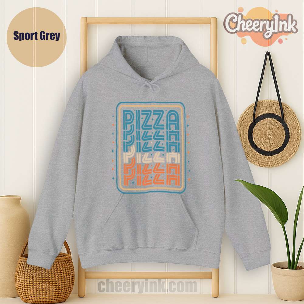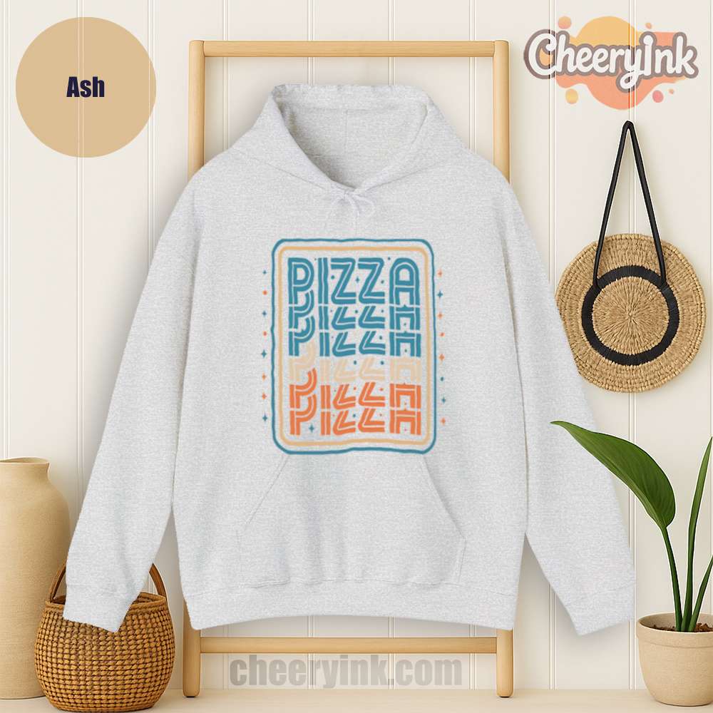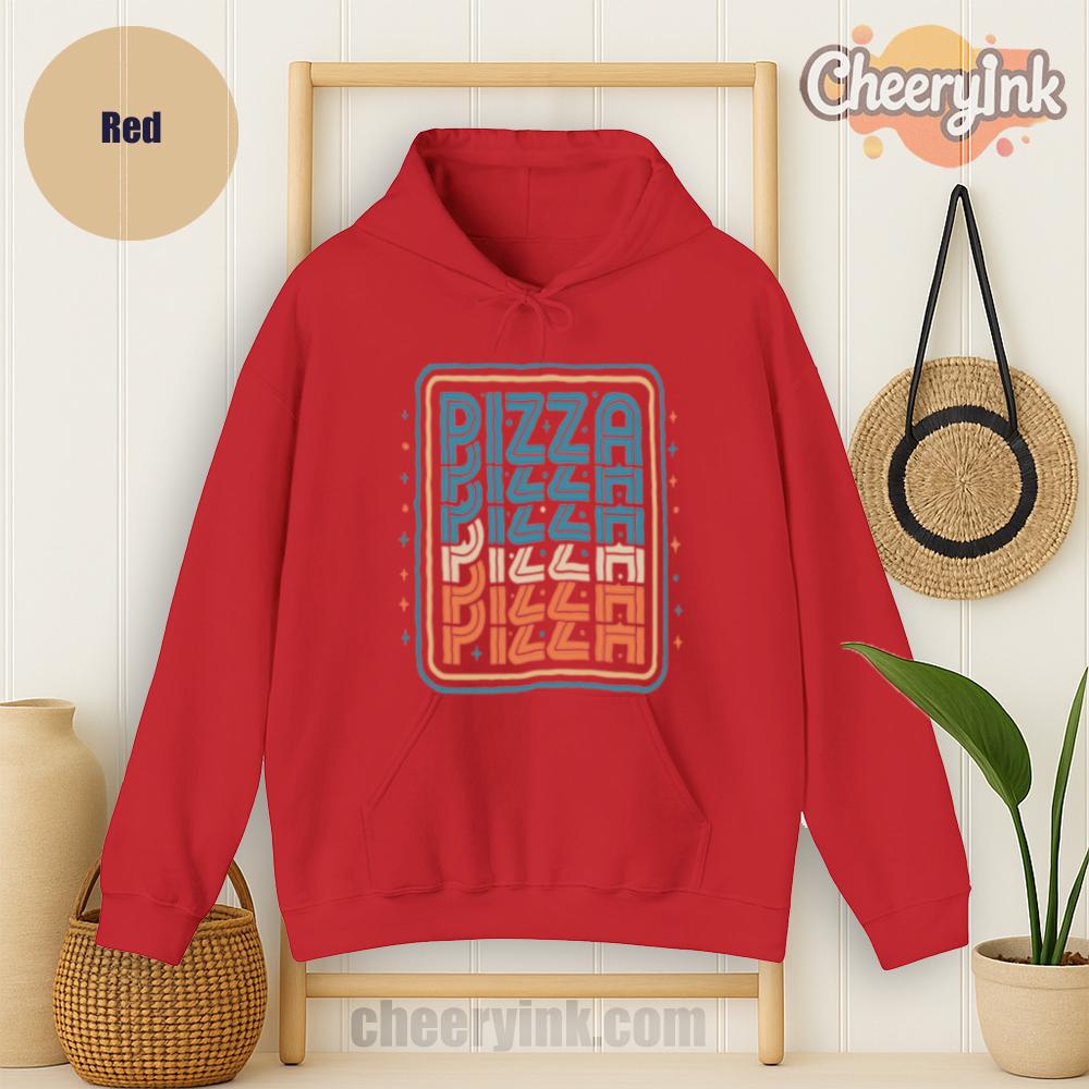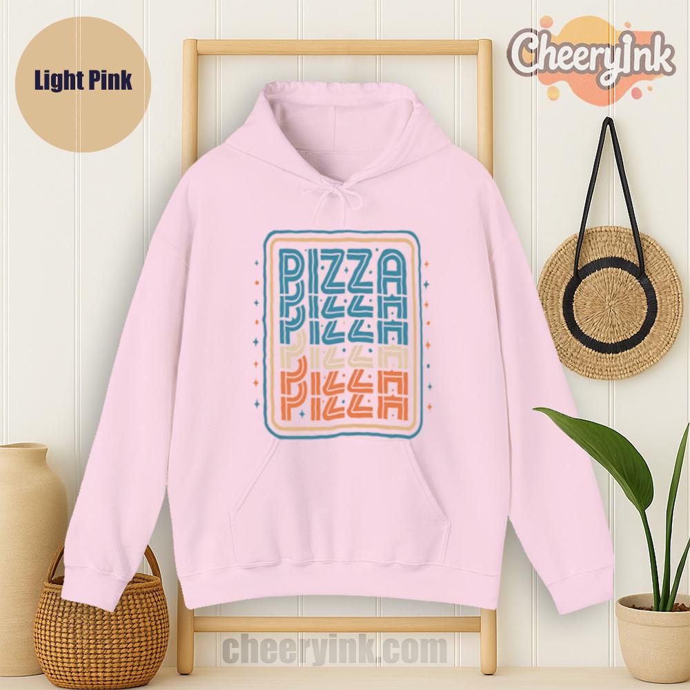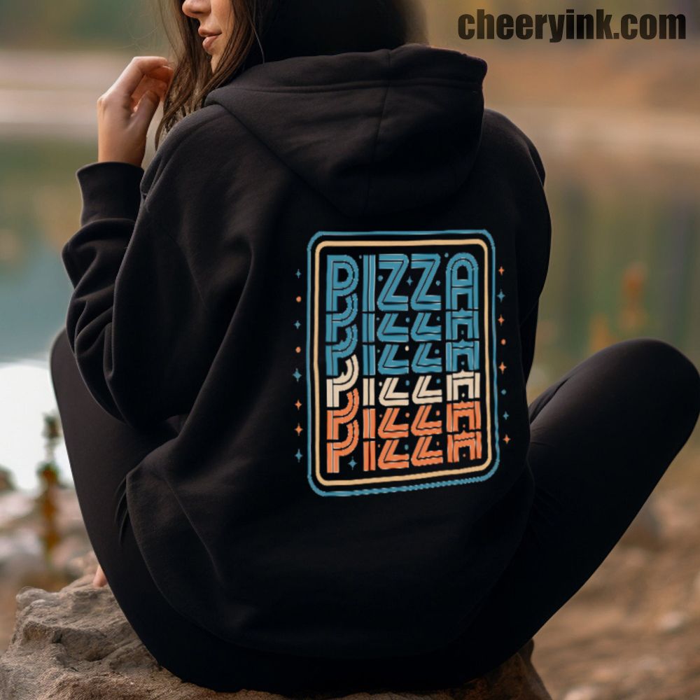 There’s no better combo than warmth and pizza and our Pizza Hoodie delivers both in style. Featuring a bold, multi-color retro design with the word “PIZZA” repeated in funky, eye-catching typography, this hoodie turns heads and starts conversations. Ideal for pizza parties, casual streetwear, or snuggling on the couch with a slice.