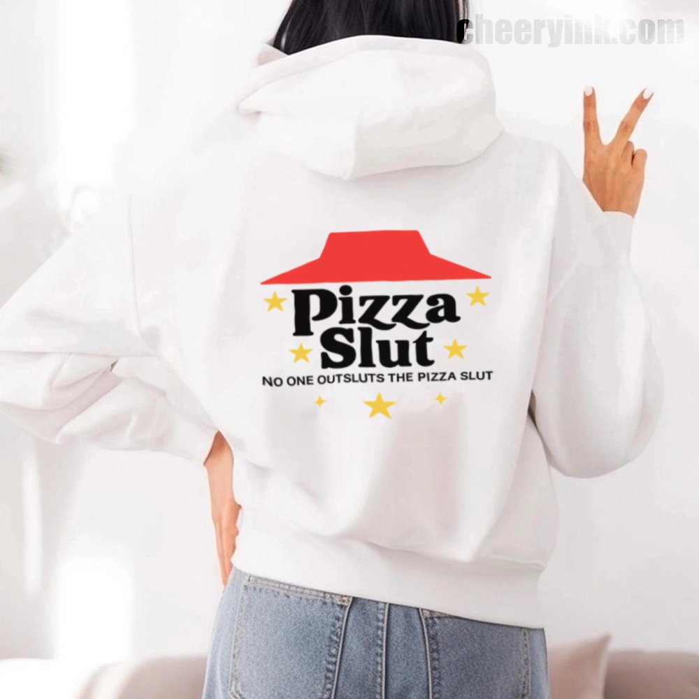 Warm up with spicy humor in our Pizza Slut Hoodie! Inspired by the iconic pizza chain logo but with a scandalous twist, this design is made for those who love their pizza extra cheesy and their humor extra bold. “No one outsluts the Pizza Slut” says it all you’re the queen (or king) of cravings.