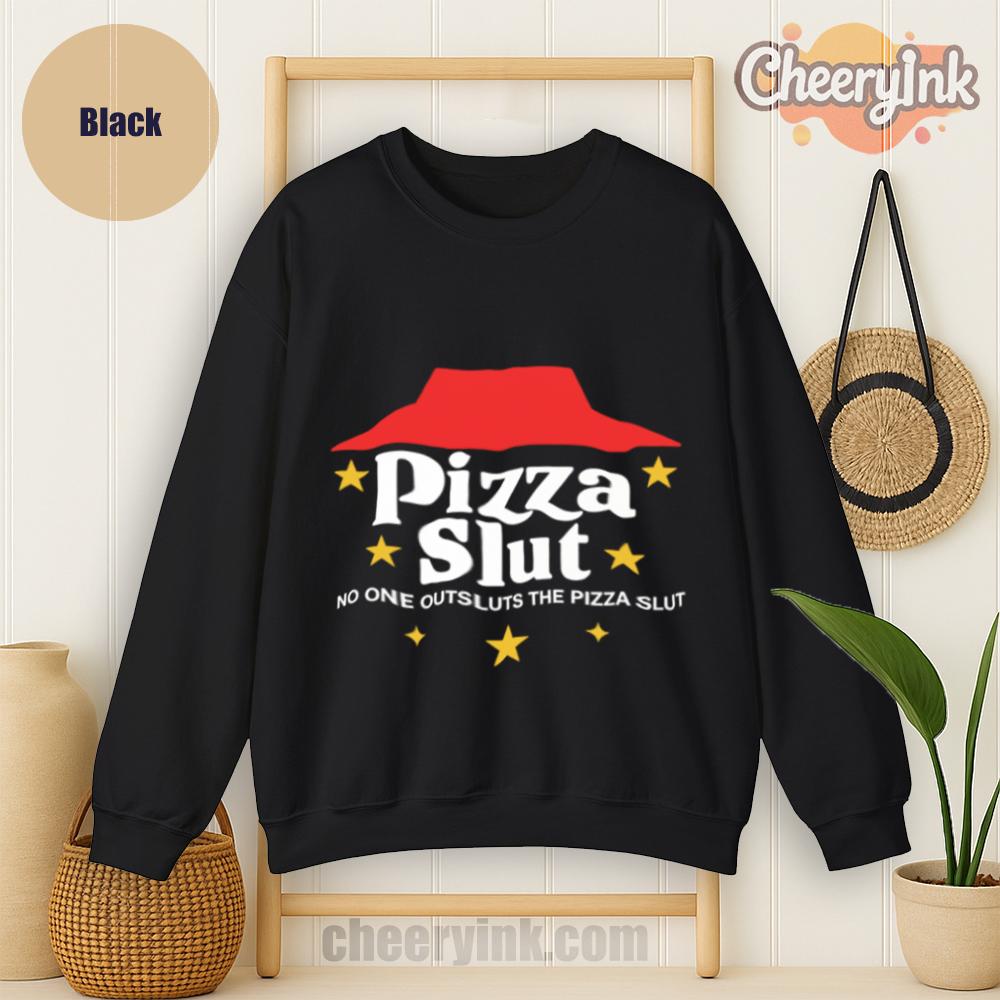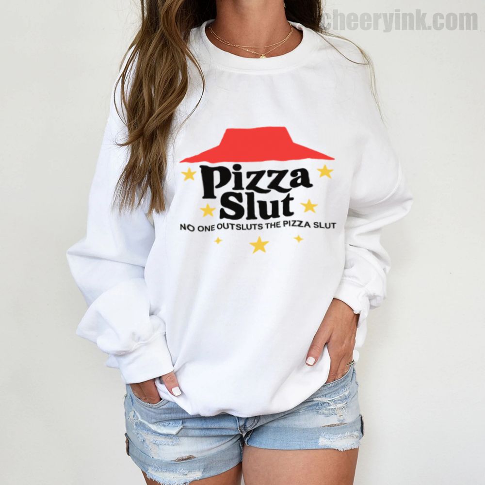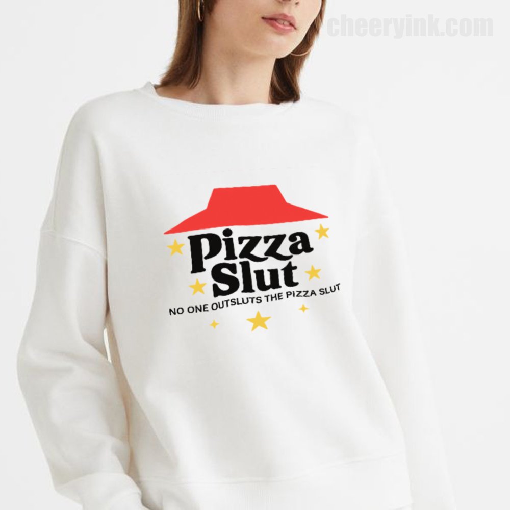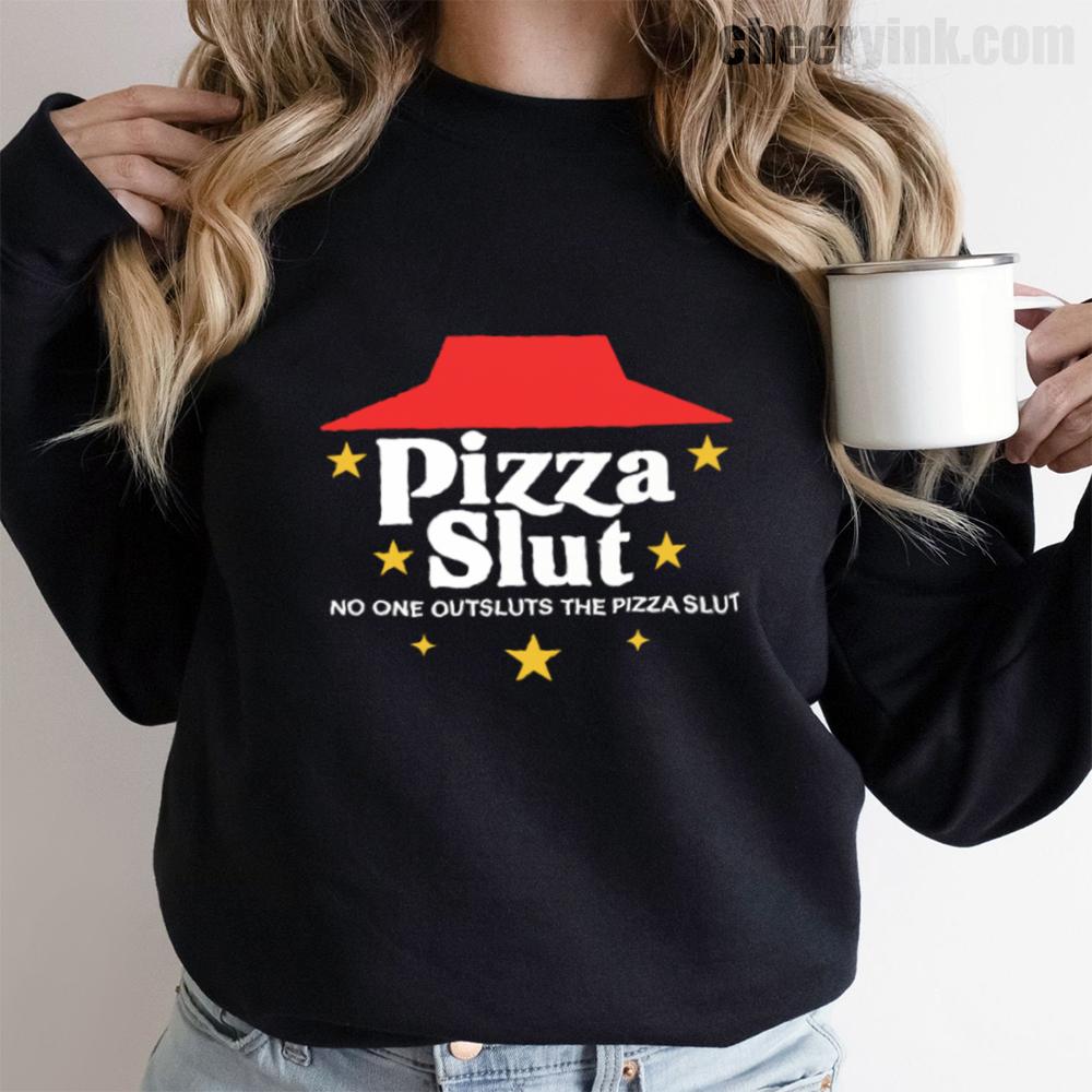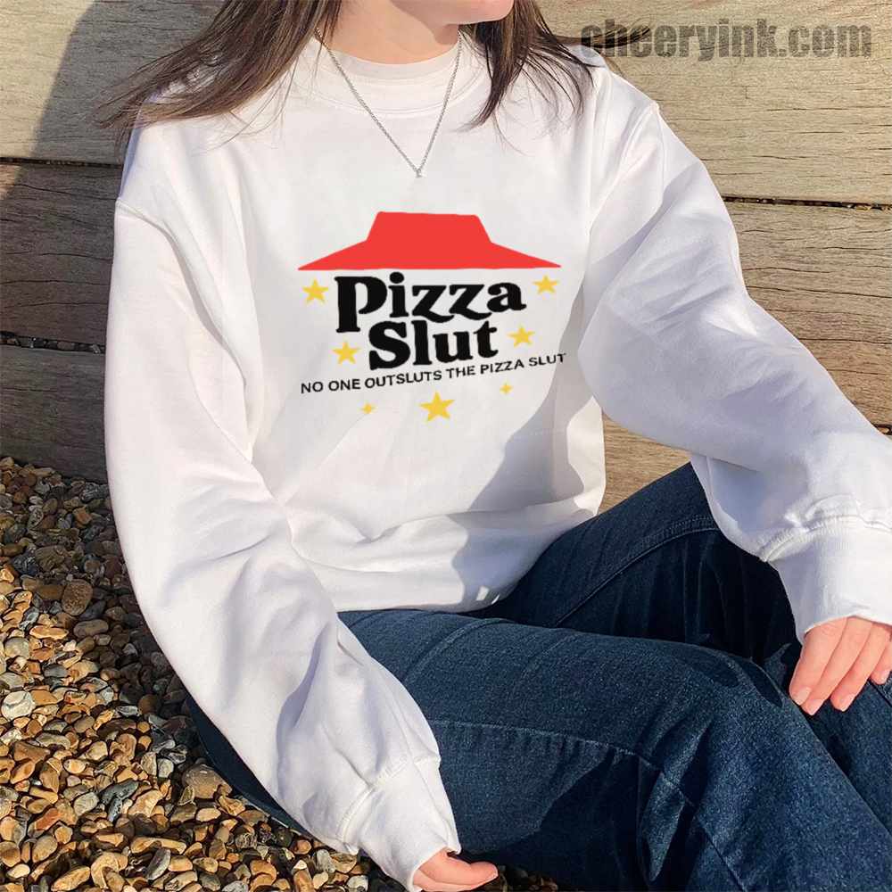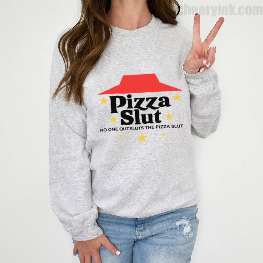 Make a bold statement with our Pizza Slut Sweatshirt. With a design that spoofs the classic pizza chain look, this cozy pullover turns heads and delivers laughs. The phrase “No one outsluts the Pizza Slut” says everything you need—funny, fierce, and all-in on the pizza life.