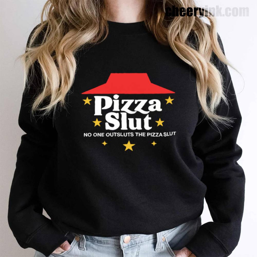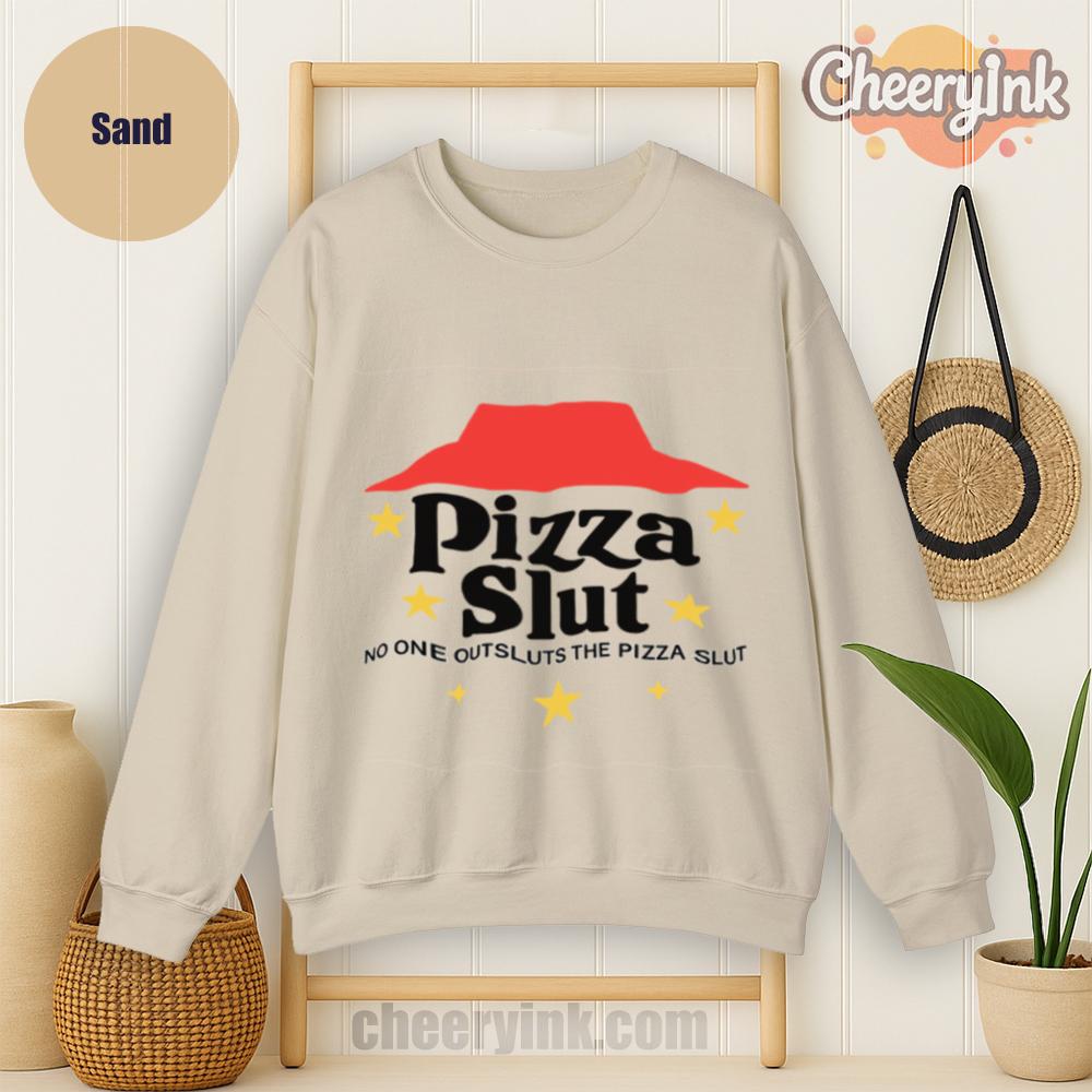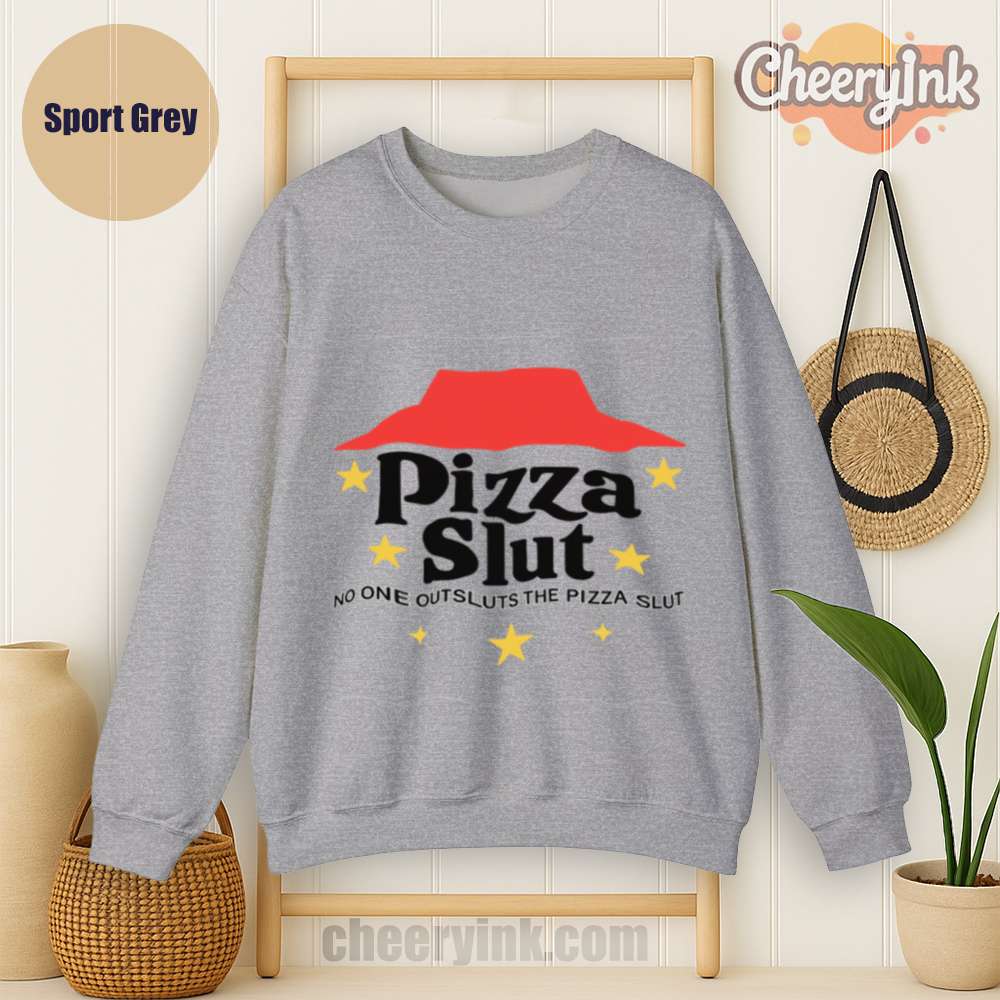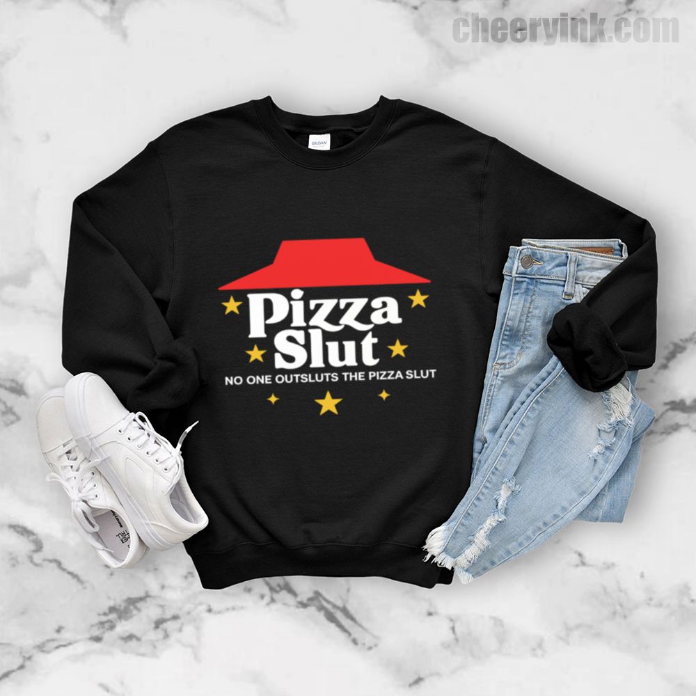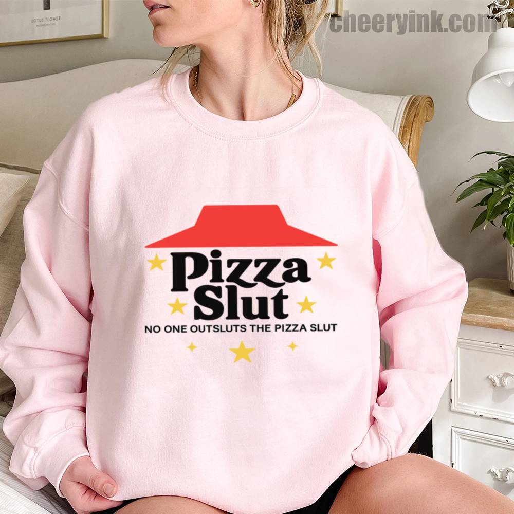 Make a bold statement with our Pizza Slut Sweatshirt. With a design that spoofs the classic pizza chain look, this cozy pullover turns heads and delivers laughs. The phrase “No one outsluts the Pizza Slut” says everything you need—funny, fierce, and all-in on the pizza life.