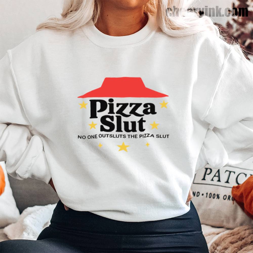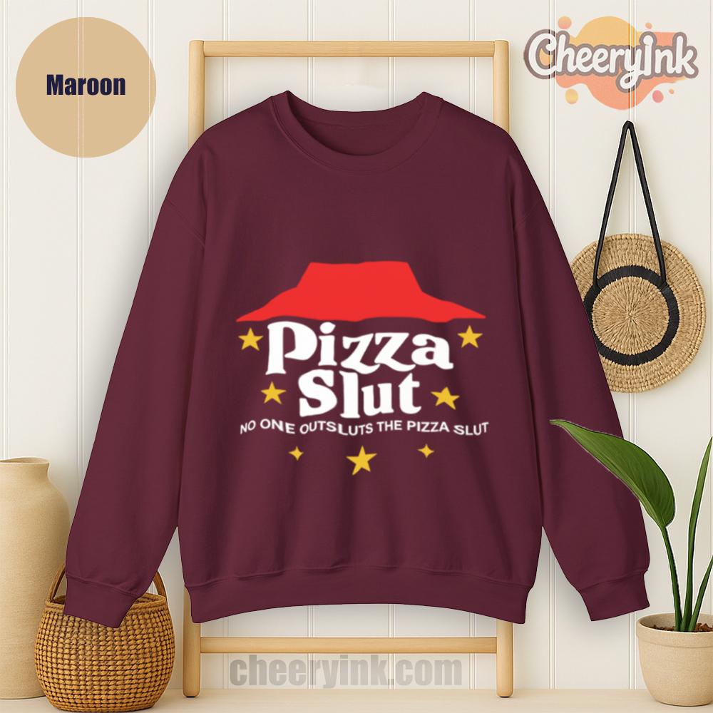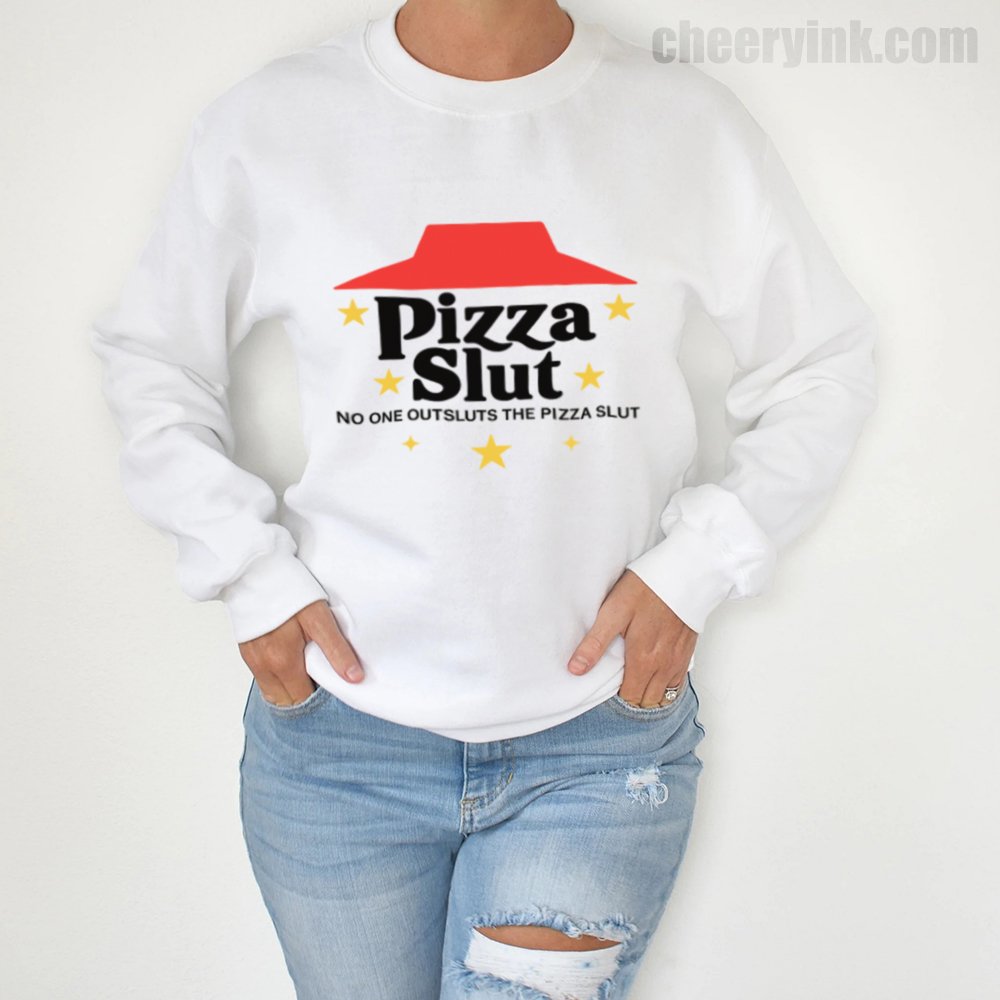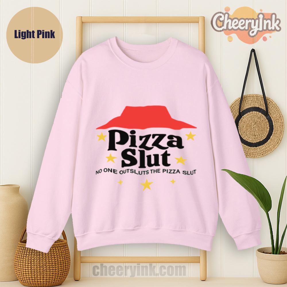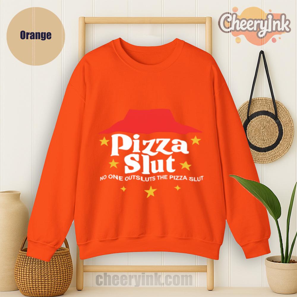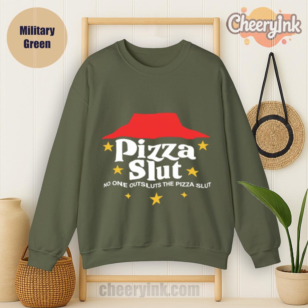 Make a bold statement with our Pizza Slut Sweatshirt. With a design that spoofs the classic pizza chain look, this cozy pullover turns heads and delivers laughs. The phrase “No one outsluts the Pizza Slut” says everything you need—funny, fierce, and all-in on the pizza life.