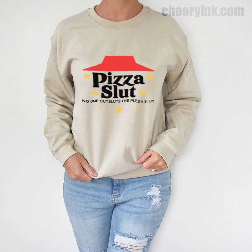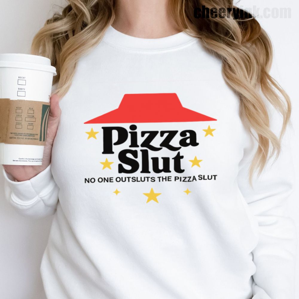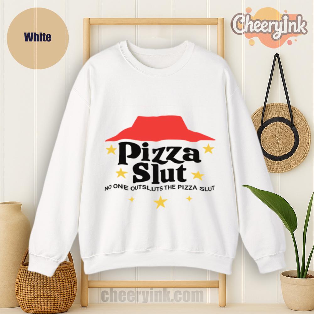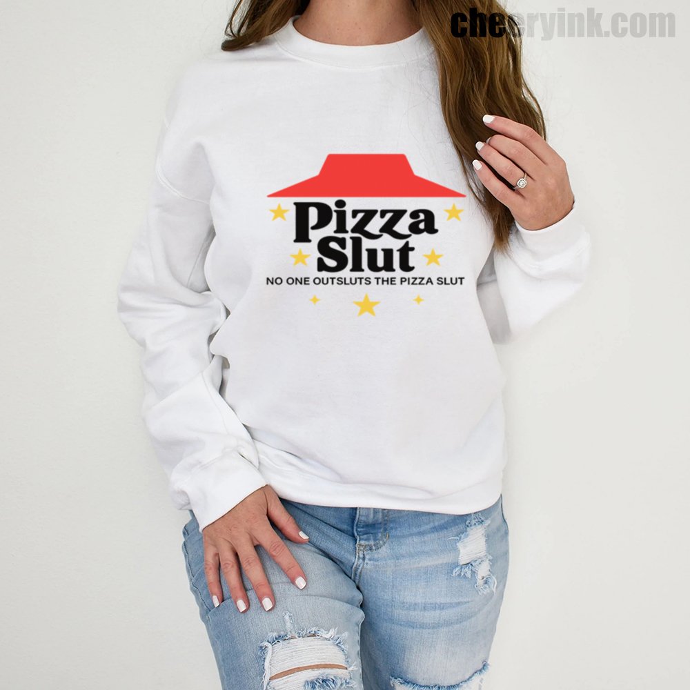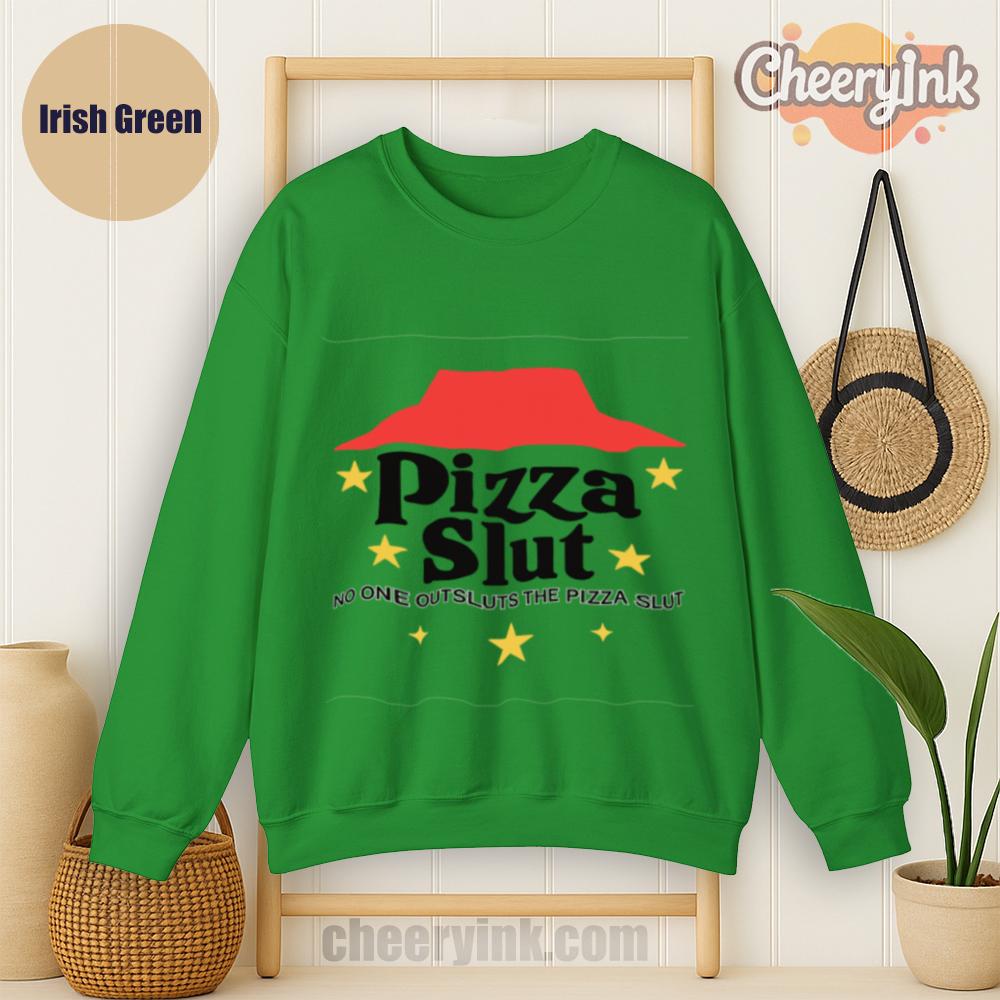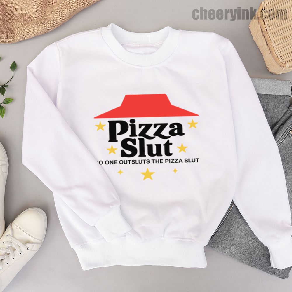 Make a bold statement with our Pizza Slut Sweatshirt. With a design that spoofs the classic pizza chain look, this cozy pullover turns heads and delivers laughs. The phrase “No one outsluts the Pizza Slut” says everything you need—funny, fierce, and all-in on the pizza life.