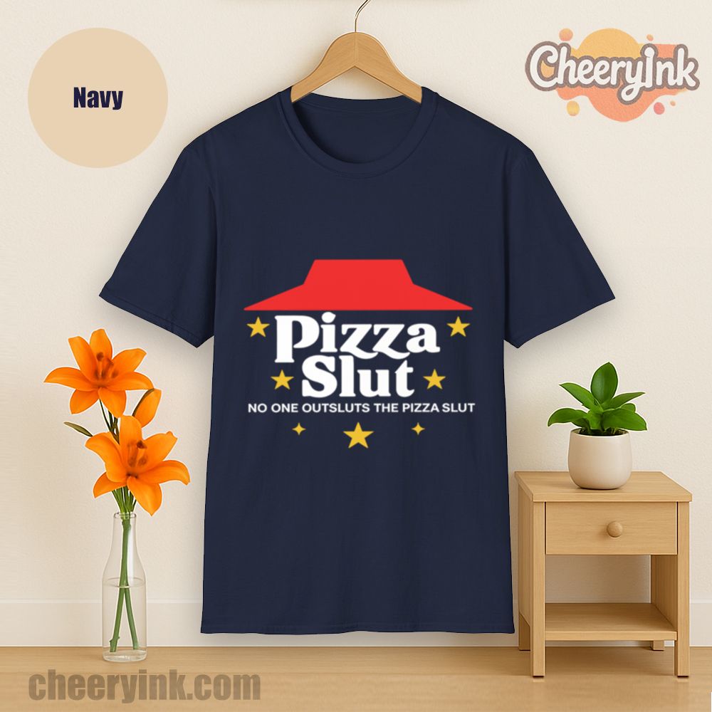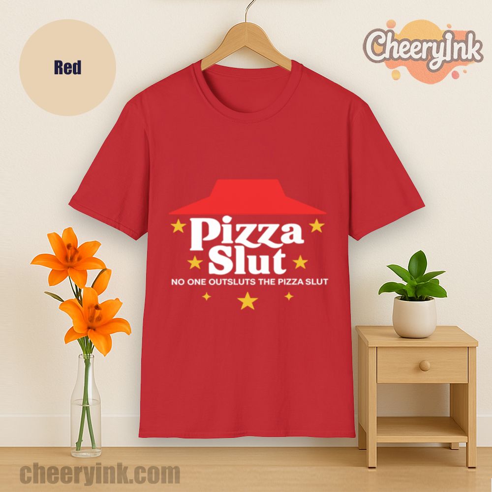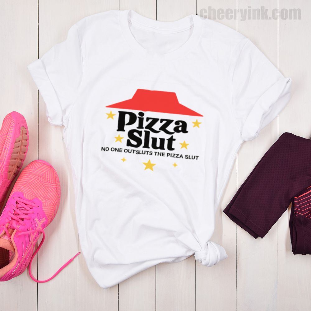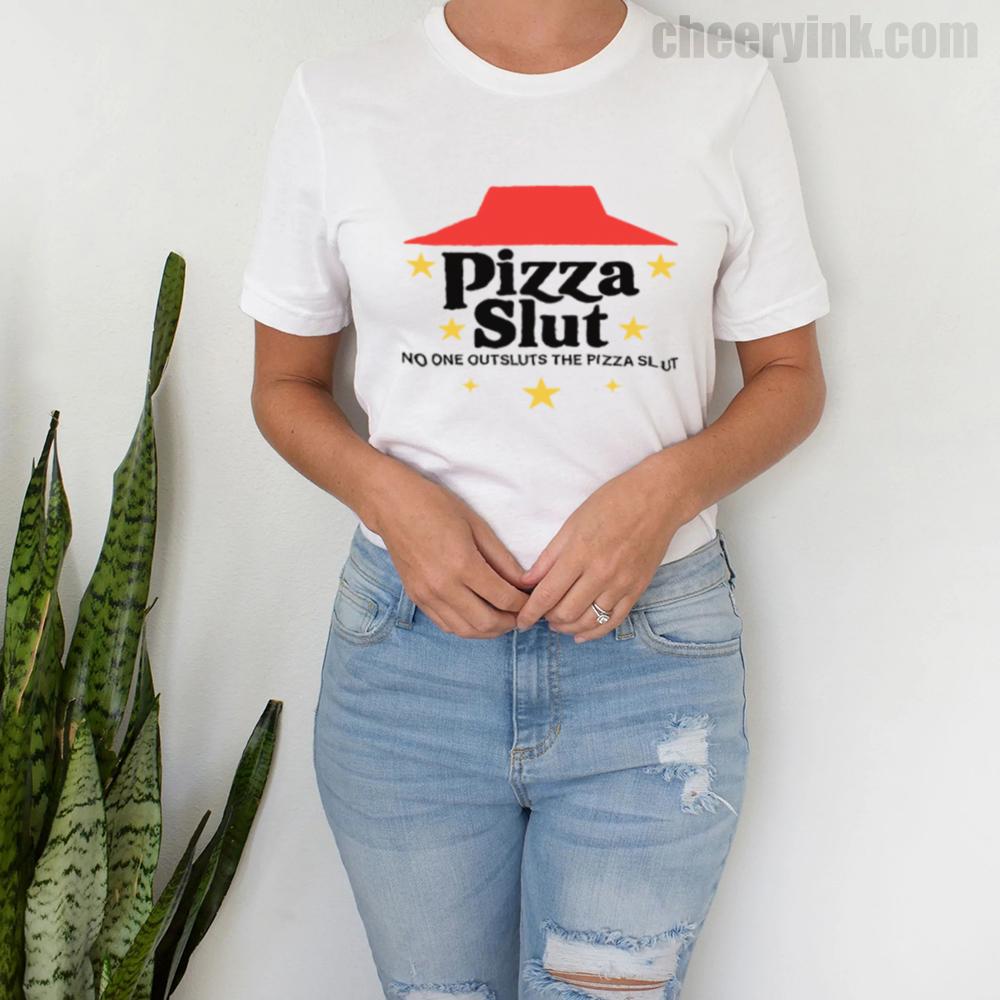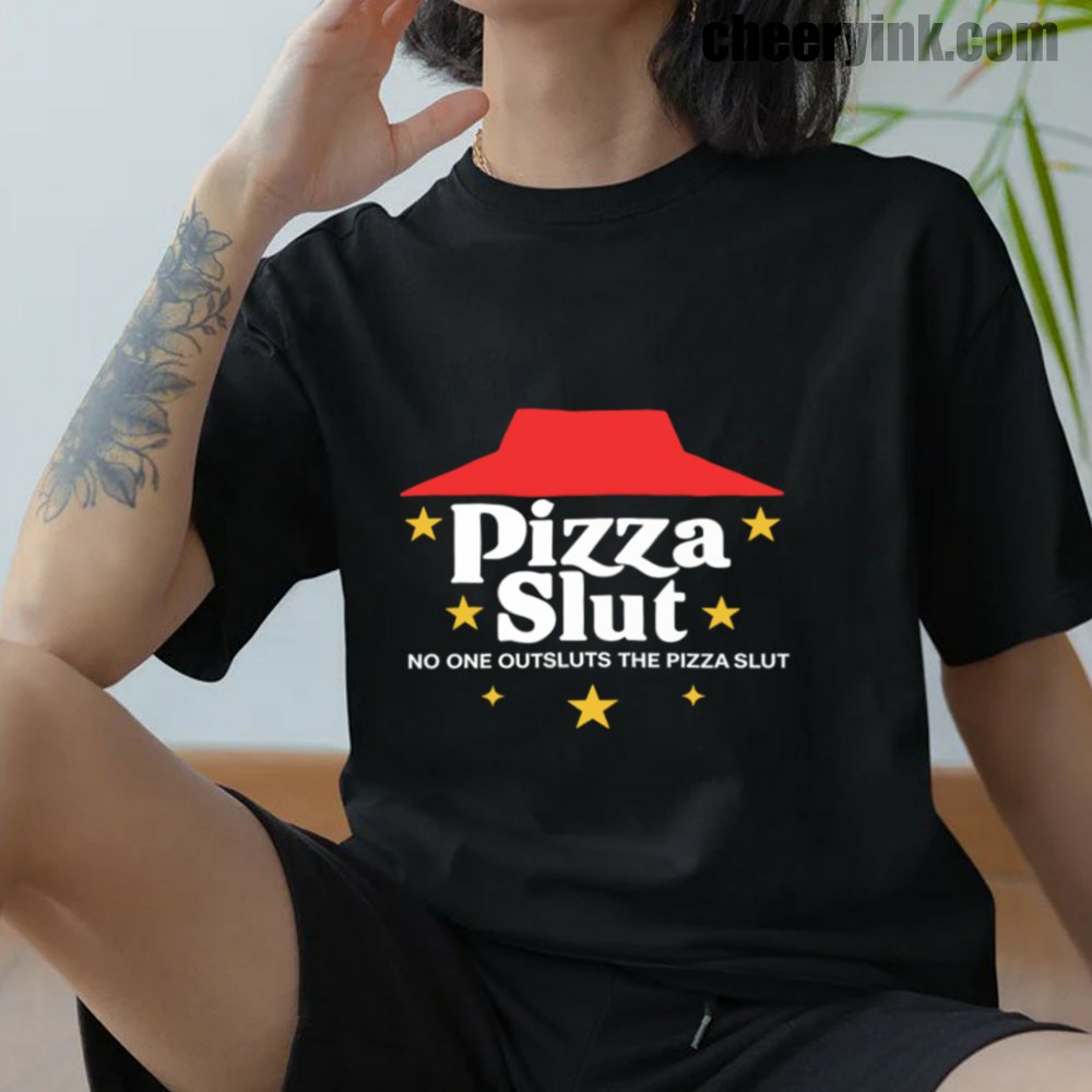 Say it loud, say it proud: you’re the Pizza Slut, and no one outs****s you! This Pizza Slut T-Shirt features a playful parody of a popular pizza brand with a raunchy twist. The bold black text, red roof, and gold stars come together for a cheeky statement piece that’s sure to get attention.