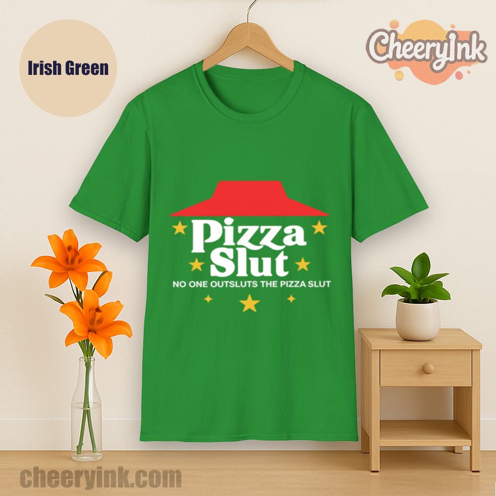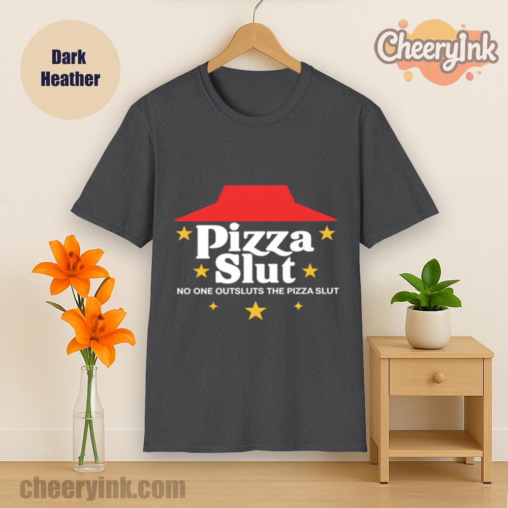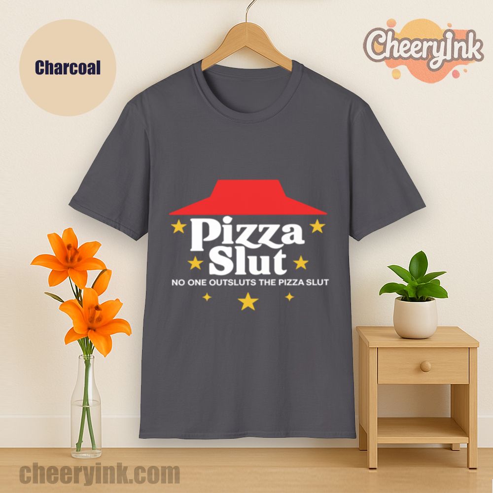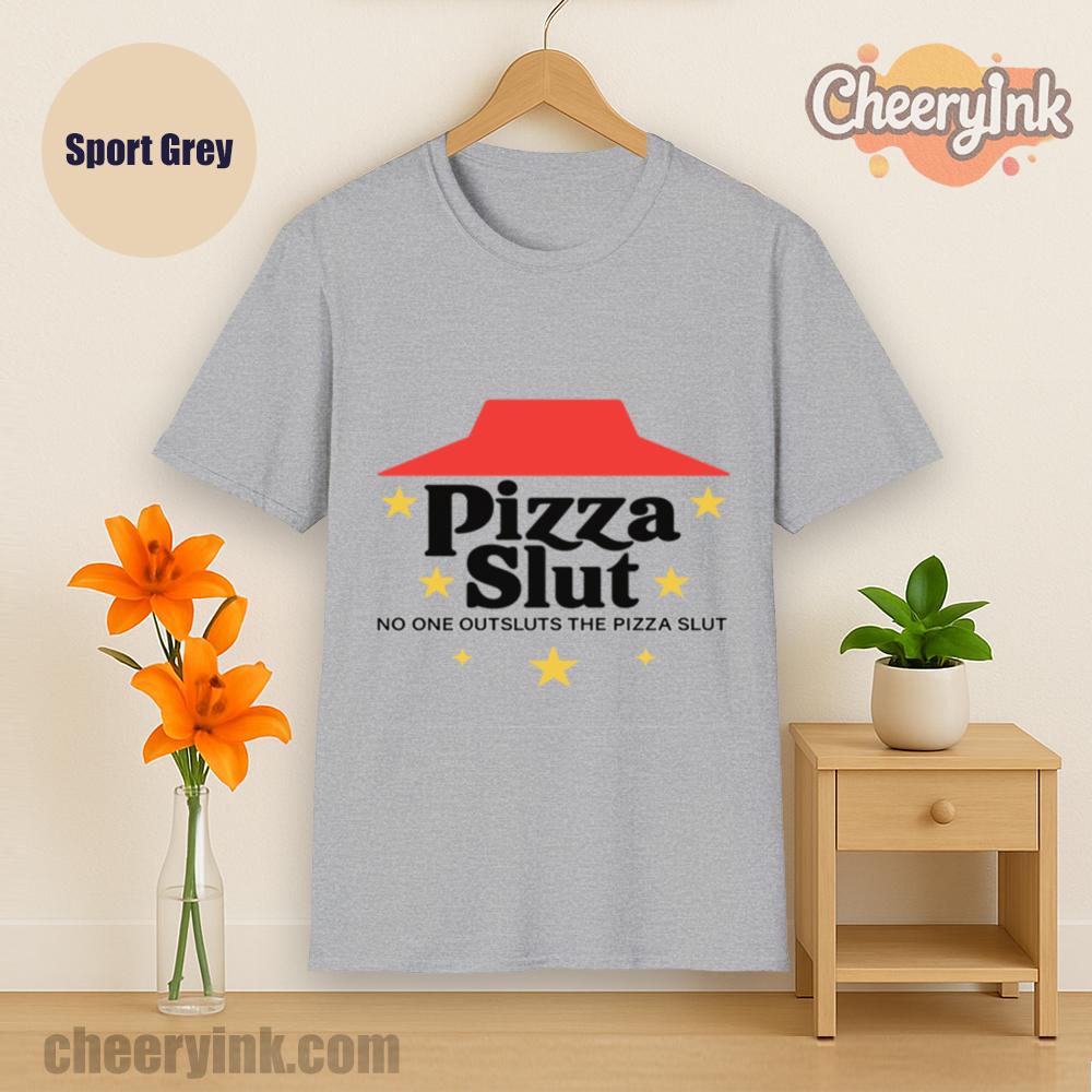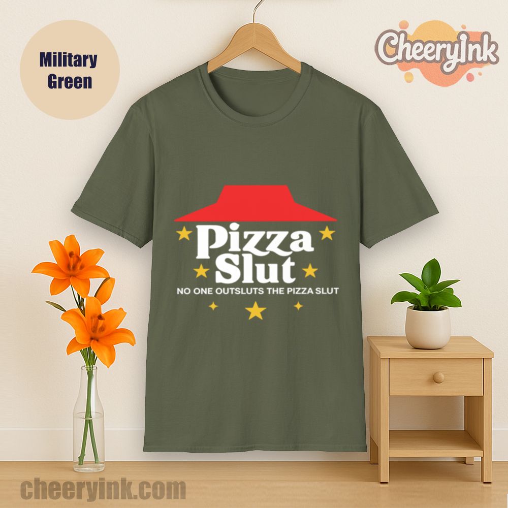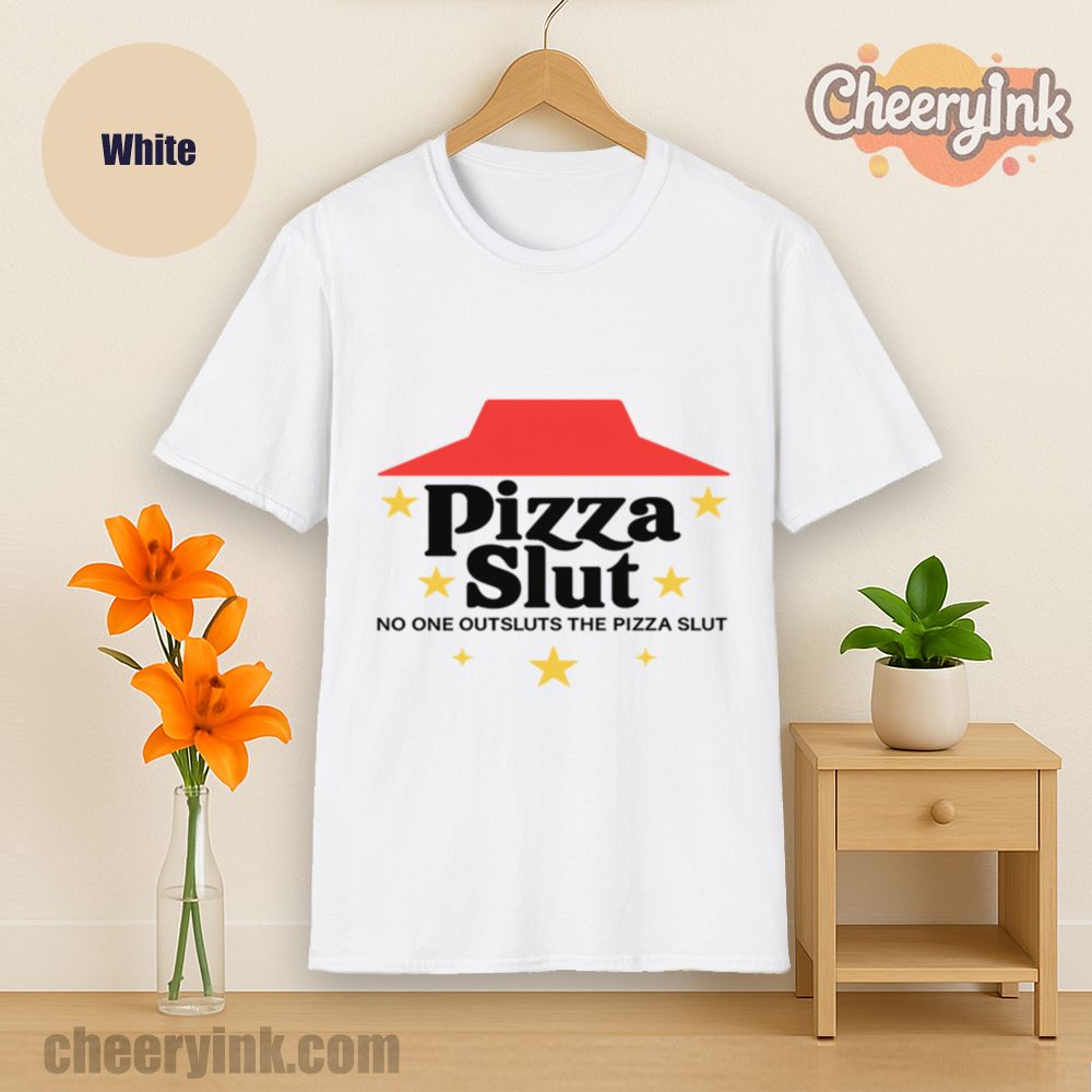 Say it loud, say it proud: you’re the Pizza Slut, and no one outs****s you! This Pizza Slut T-Shirt features a playful parody of a popular pizza brand with a raunchy twist. The bold black text, red roof, and gold stars come together for a cheeky statement piece that’s sure to get attention.