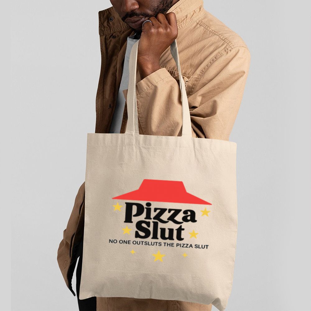 Show the world you’re serving looks and slices with this Pizza Slut Tote Bag. Featuring a hilarious design that mimics the famous pizza chain, this bag screams confidence and comedy in equal measure. Whether you’re grocery shopping or heading to the beach, this tote turns everyday errands into bold statements.