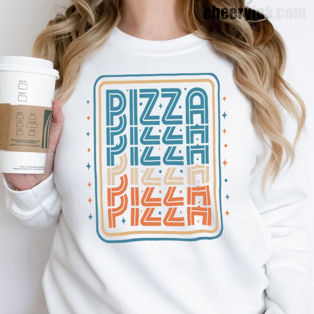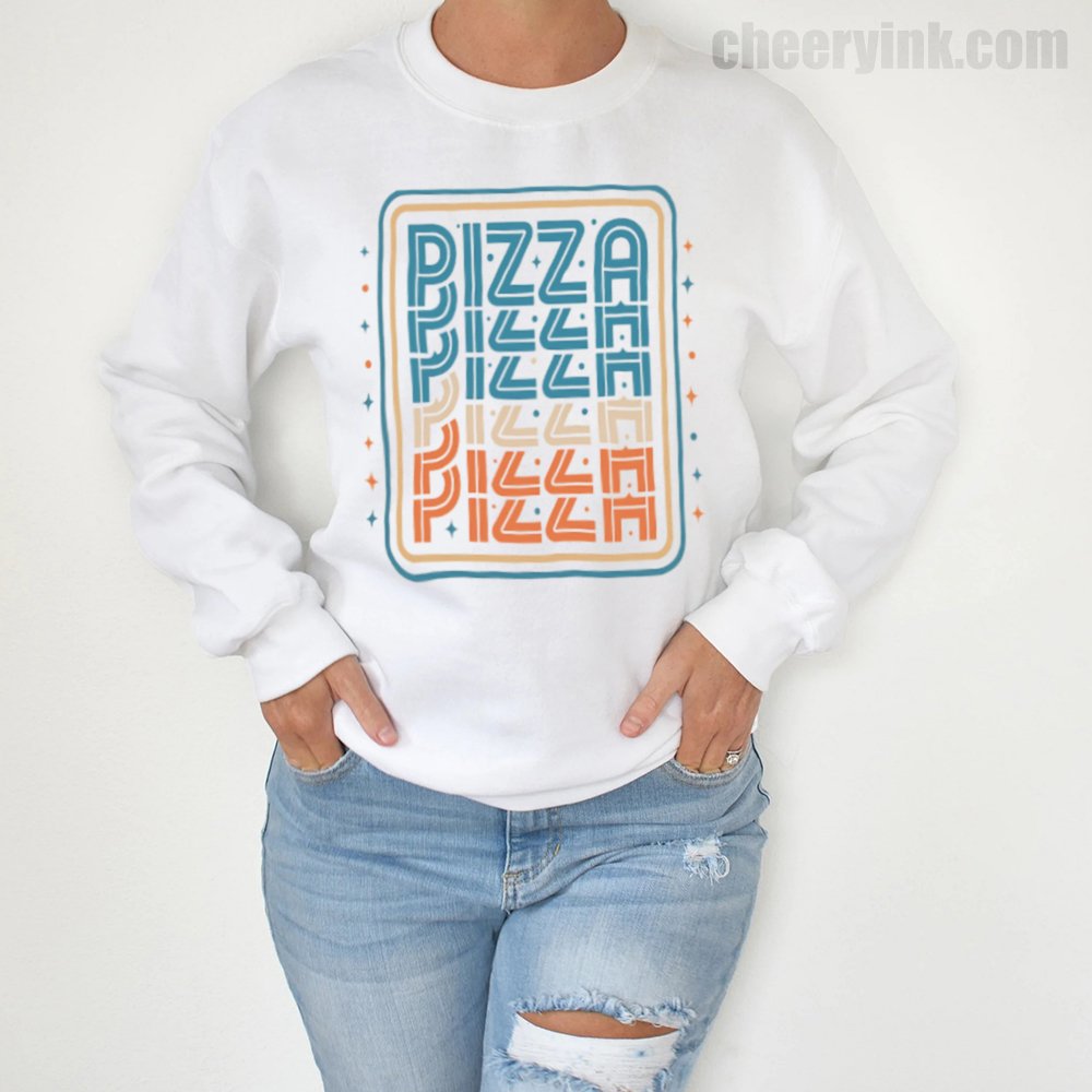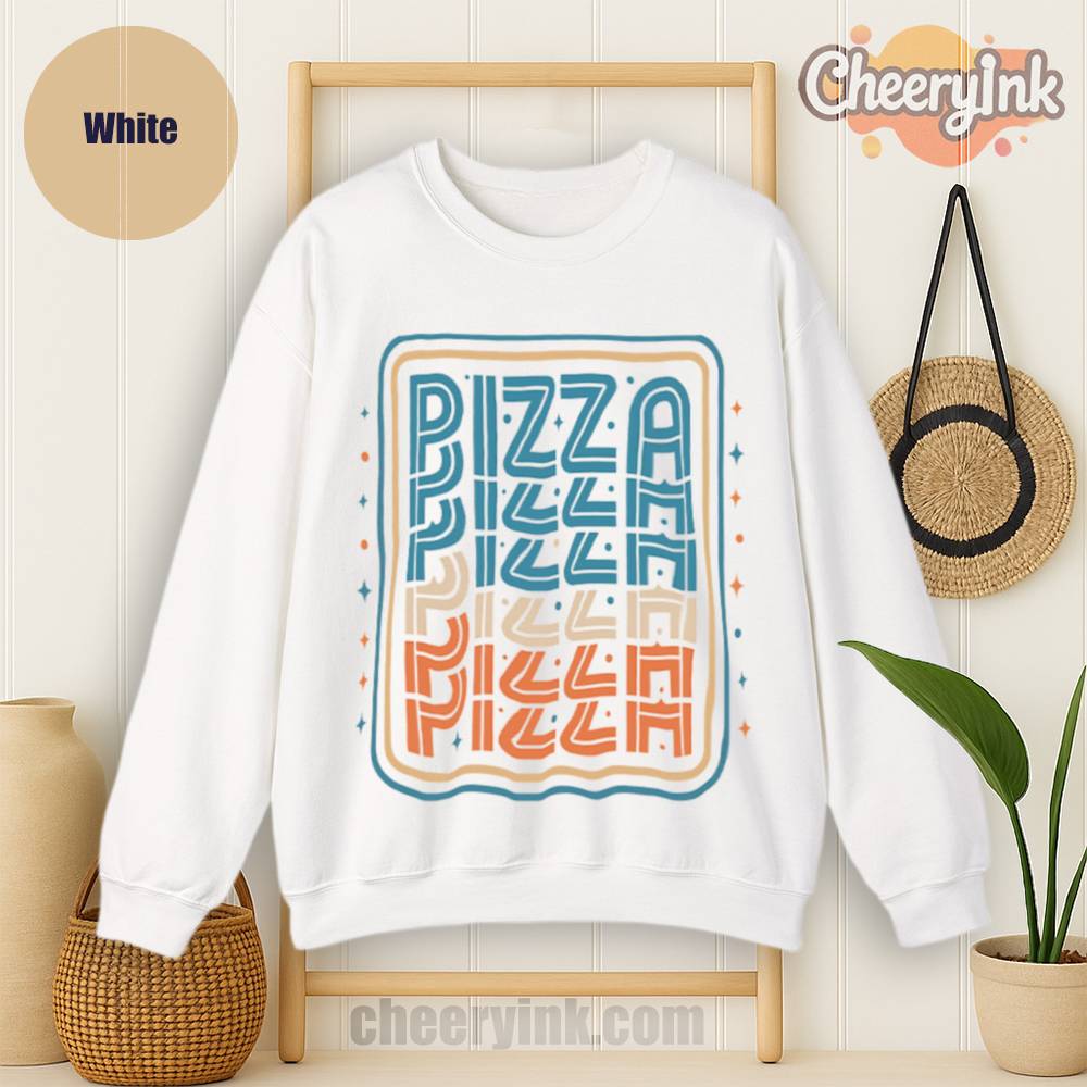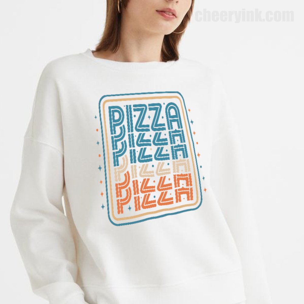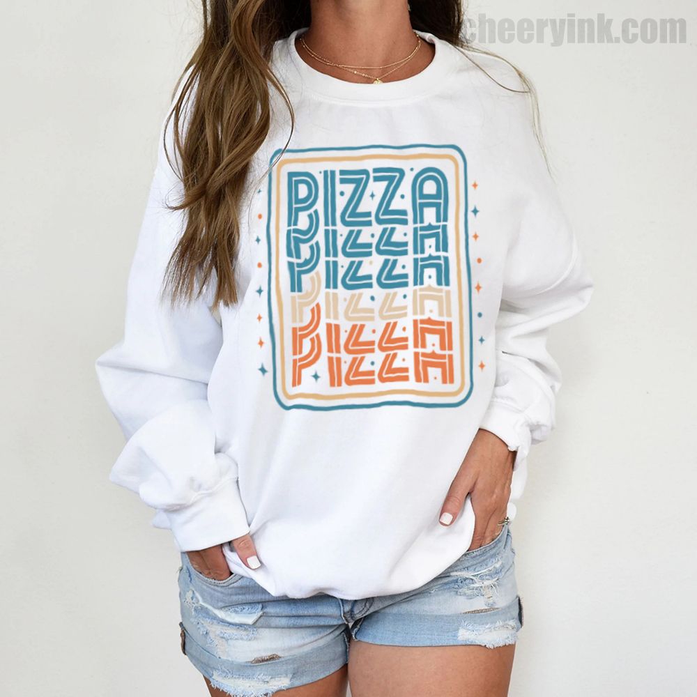 Bring your love for pizza into your everyday style with this cozy Pizza Sweatshirt. The retro-inspired graphic print is stacked with the word “PIZZA” in bold, vintage typography and a groovy color palette. It’s fun, fashionable, and the ultimate tribute to the world’s favorite food.