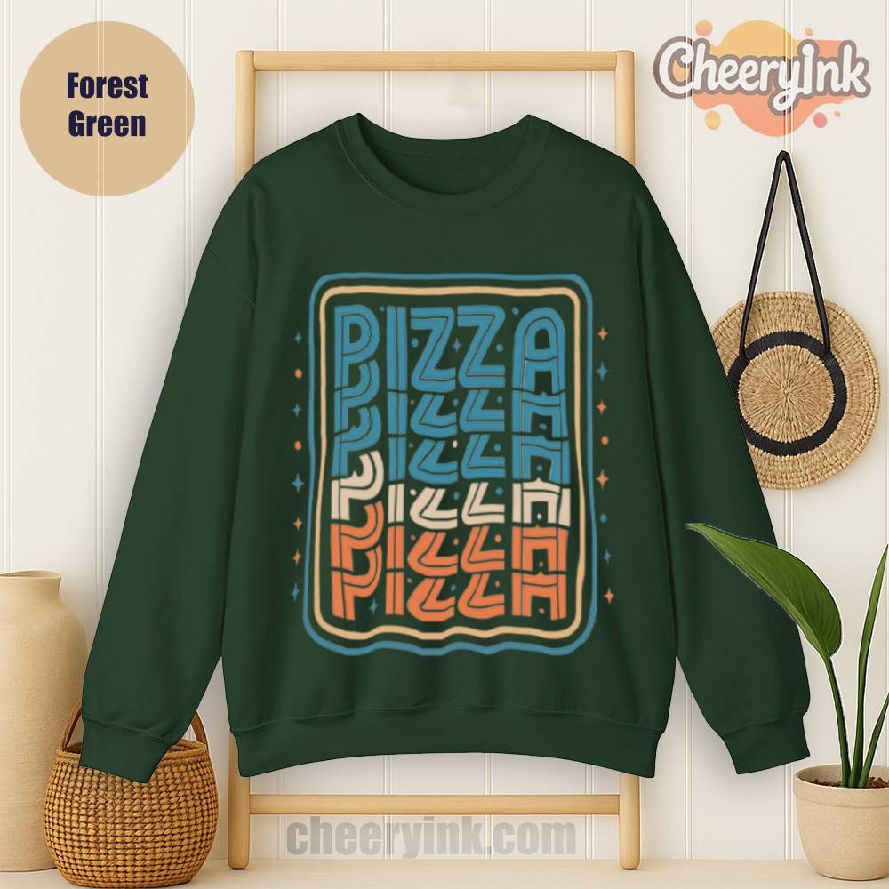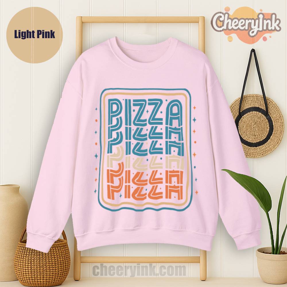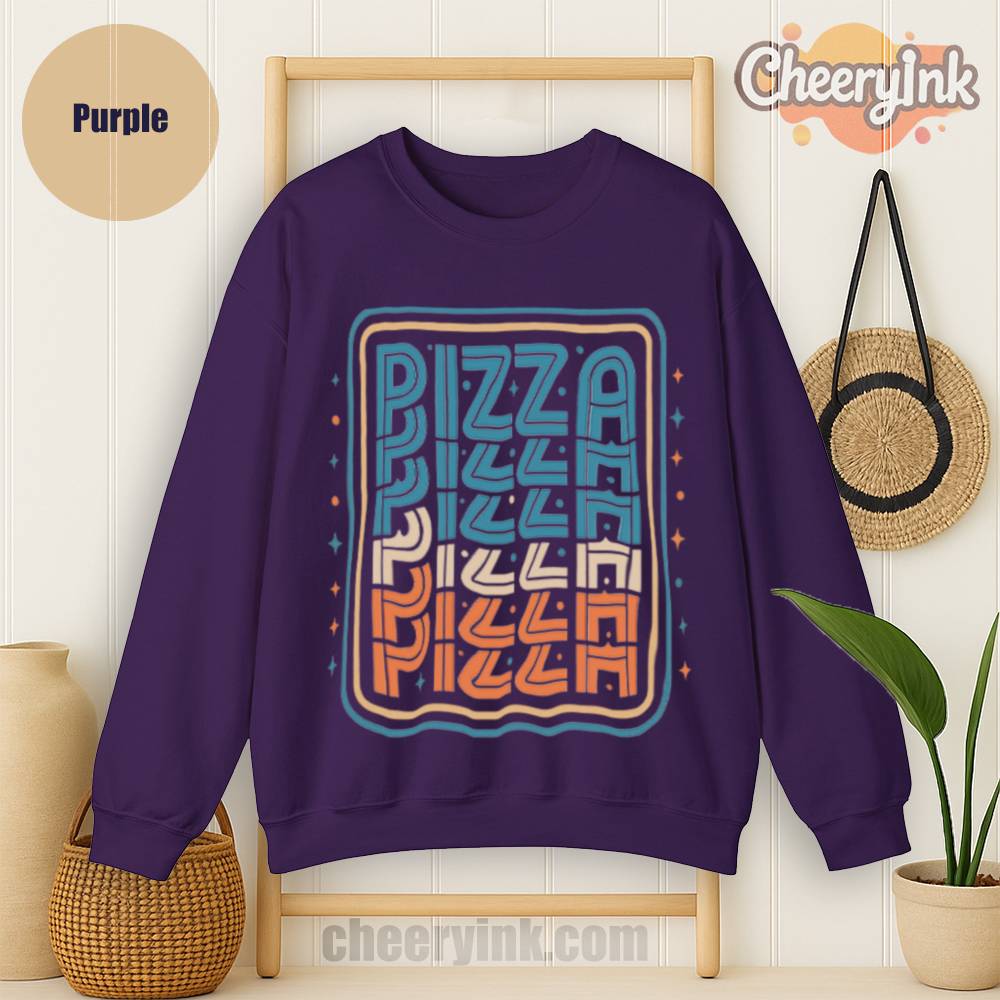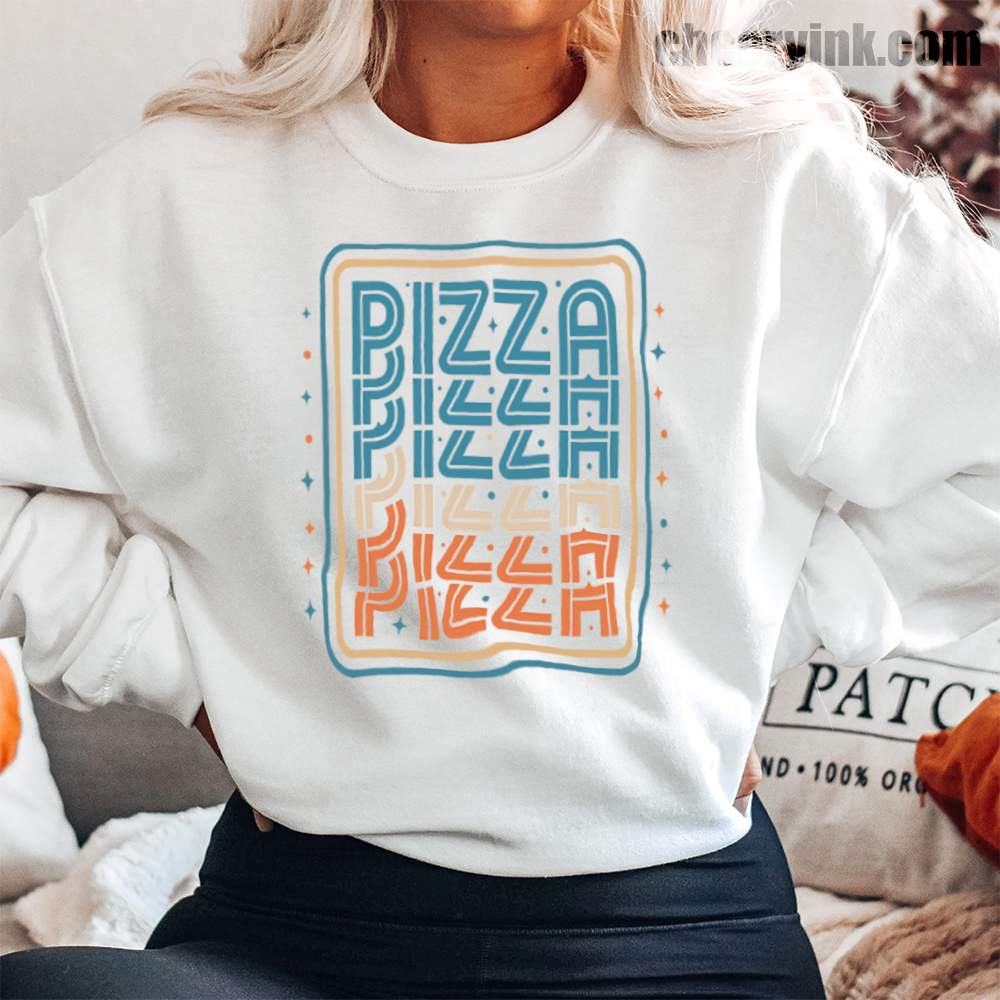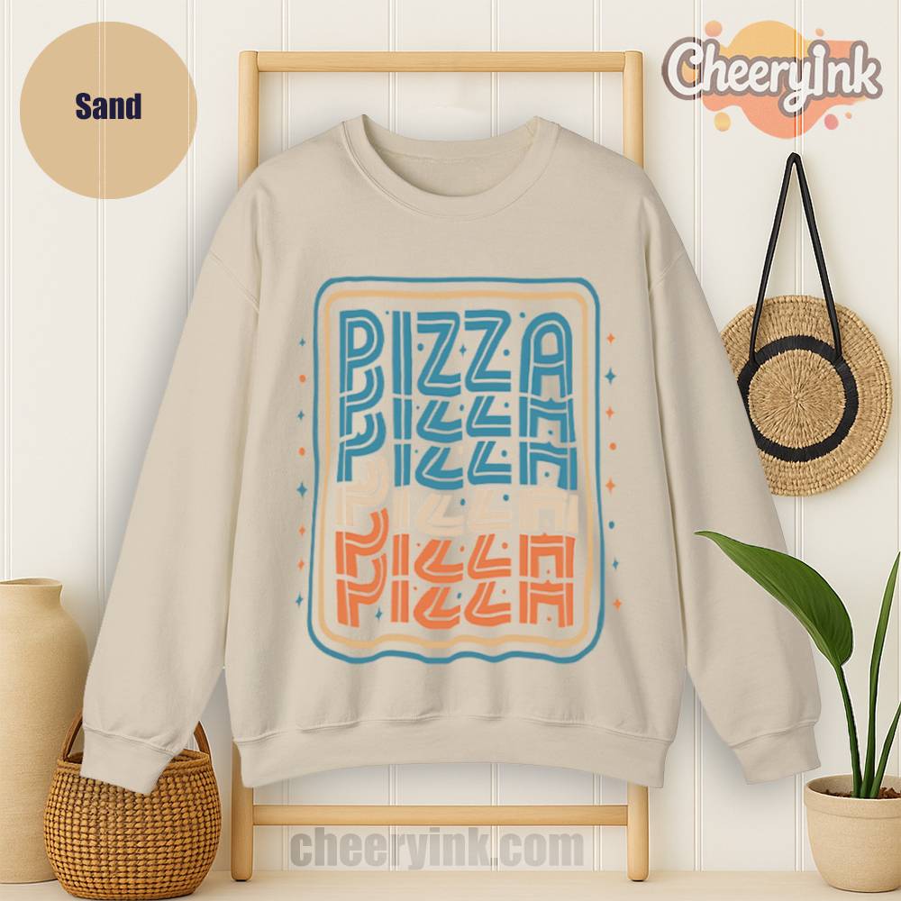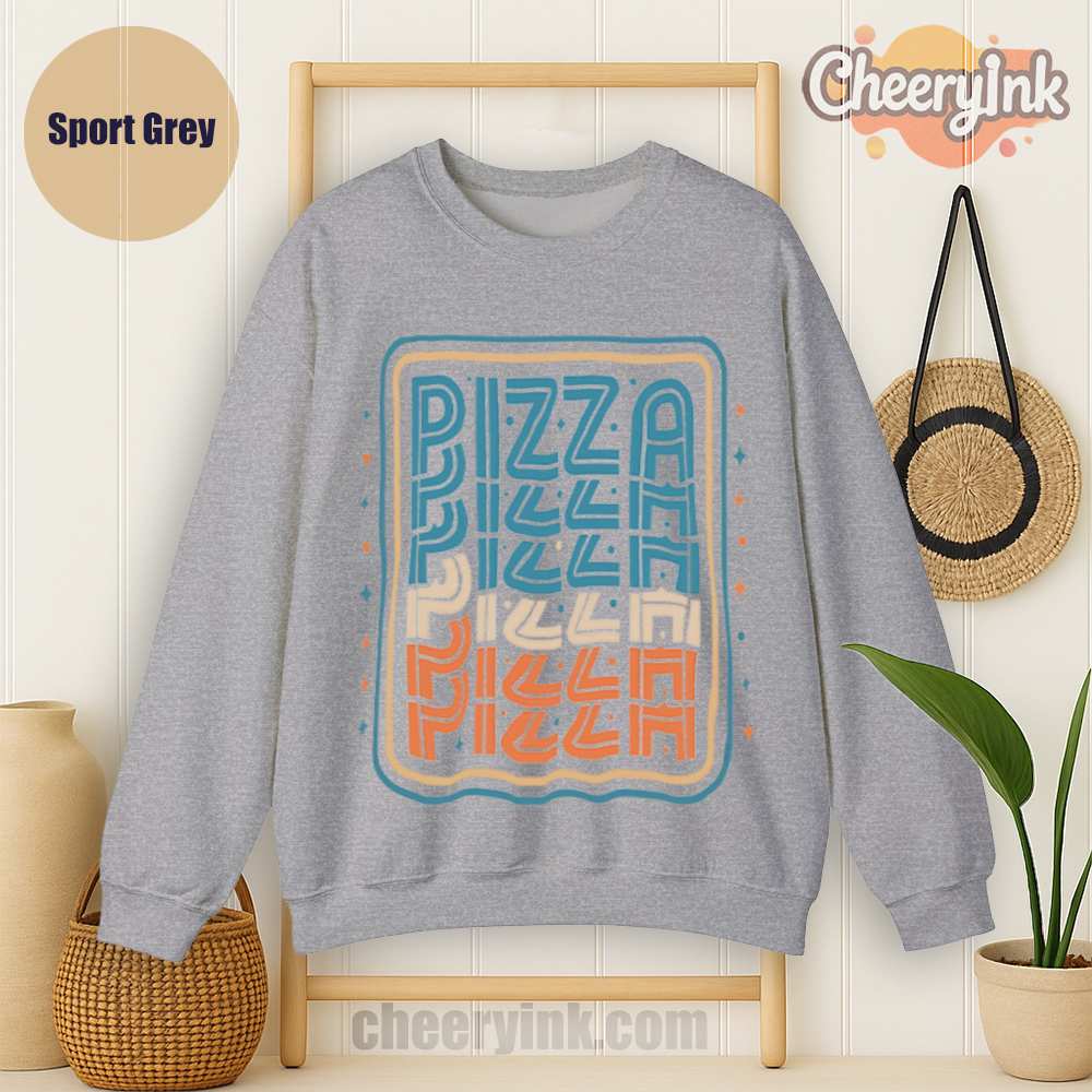Bring your love for pizza into your everyday style with this cozy Pizza Sweatshirt. The retro-inspired graphic print is stacked with the word “PIZZA” in bold, vintage typography and a groovy color palette. It’s fun, fashionable, and the ultimate tribute to the world’s favorite food.