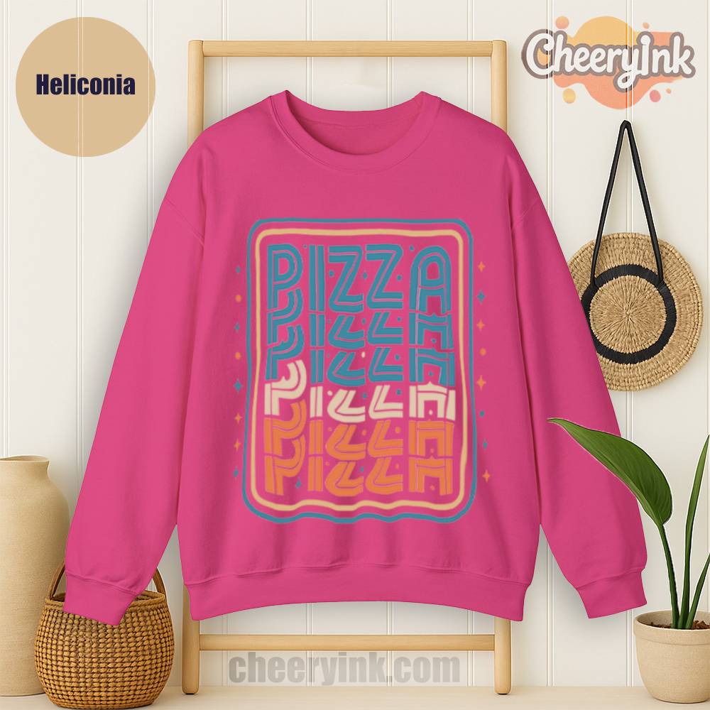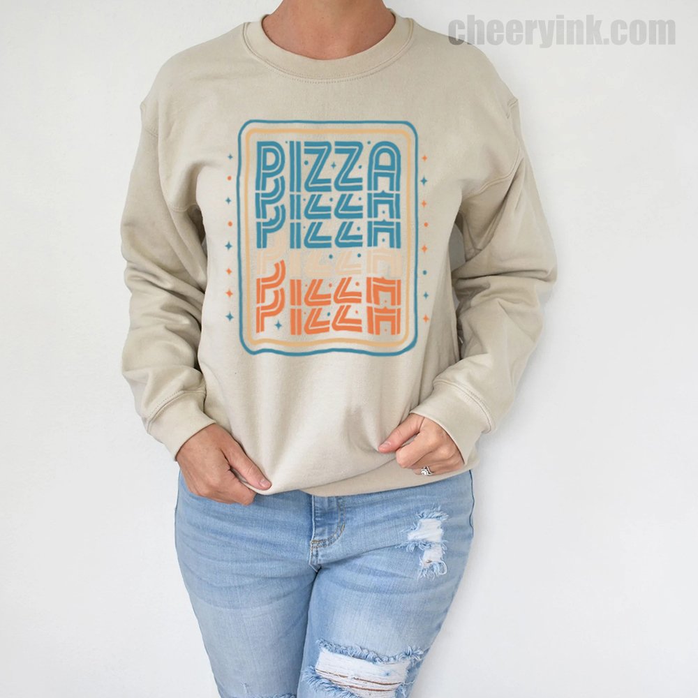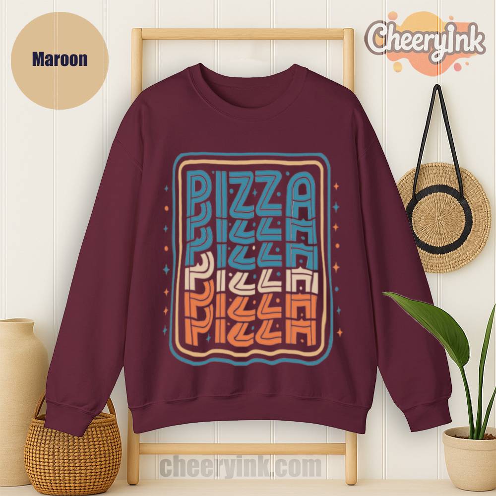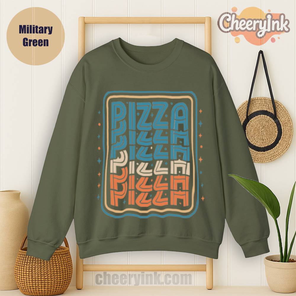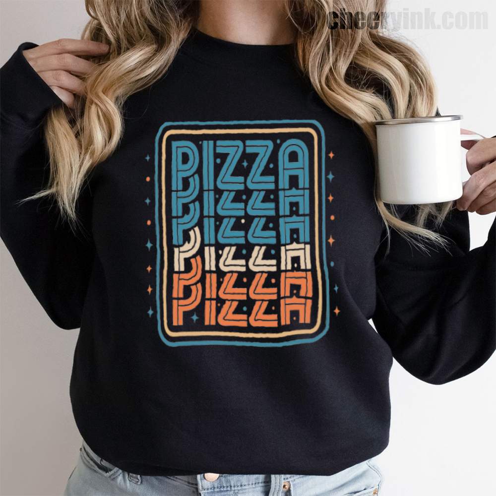 Bring your love for pizza into your everyday style with this cozy Pizza Sweatshirt. The retro-inspired graphic print is stacked with the word “PIZZA” in bold, vintage typography and a groovy color palette. It’s fun, fashionable, and the ultimate tribute to the world’s favorite food.