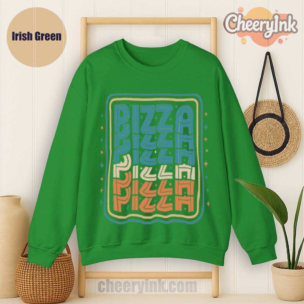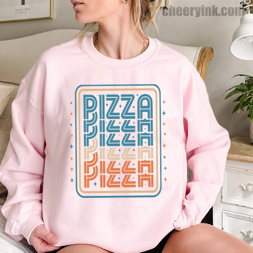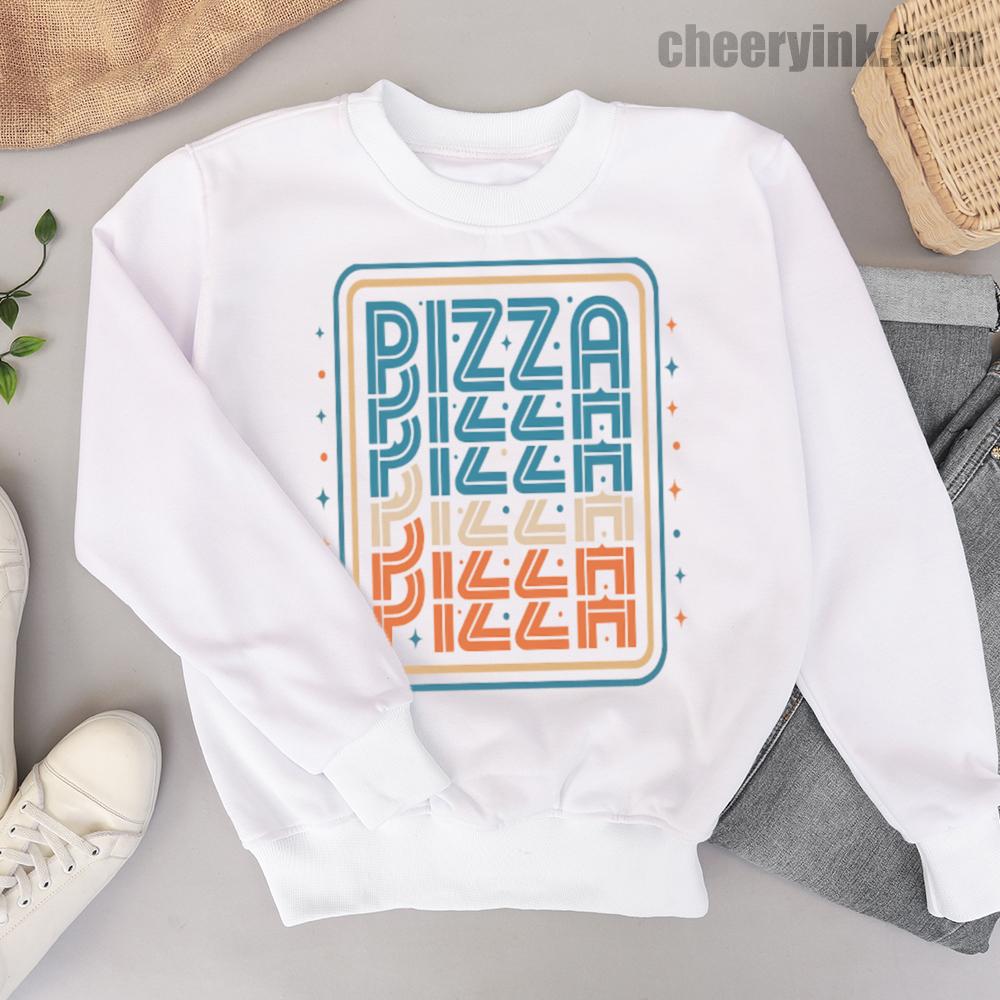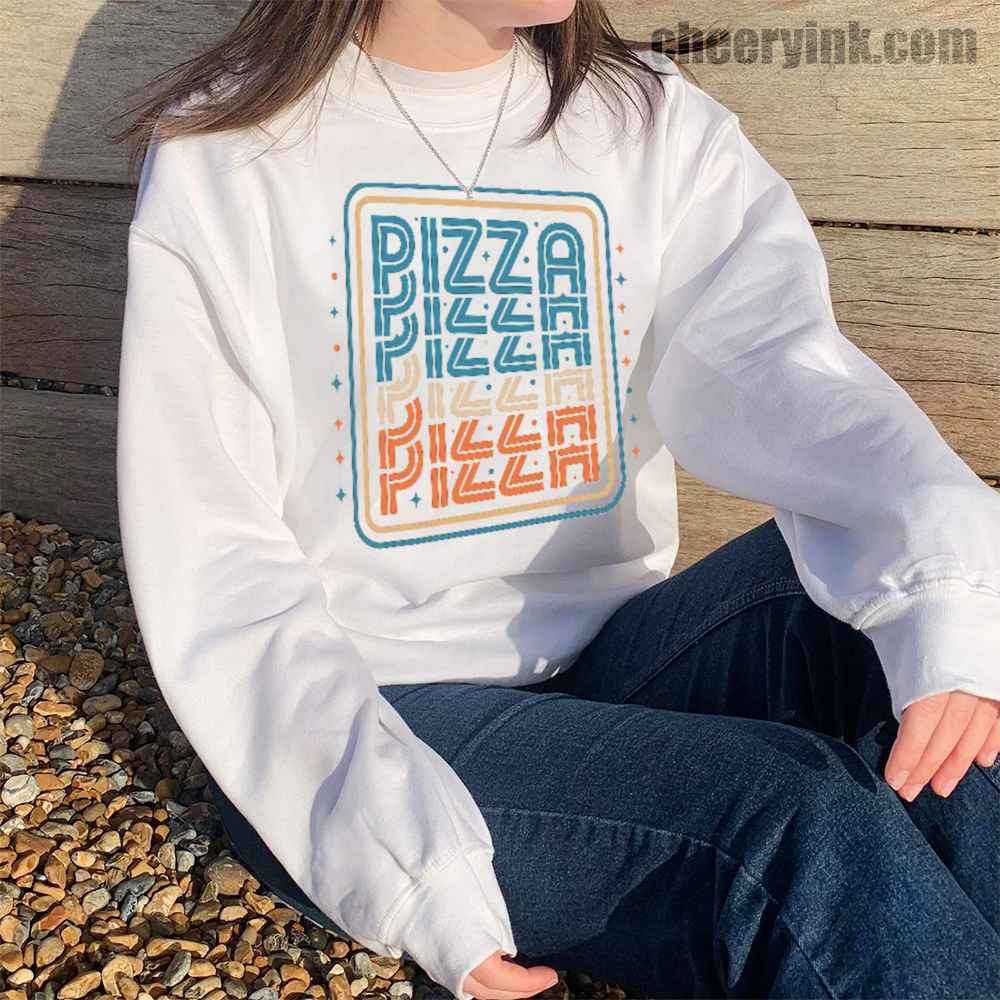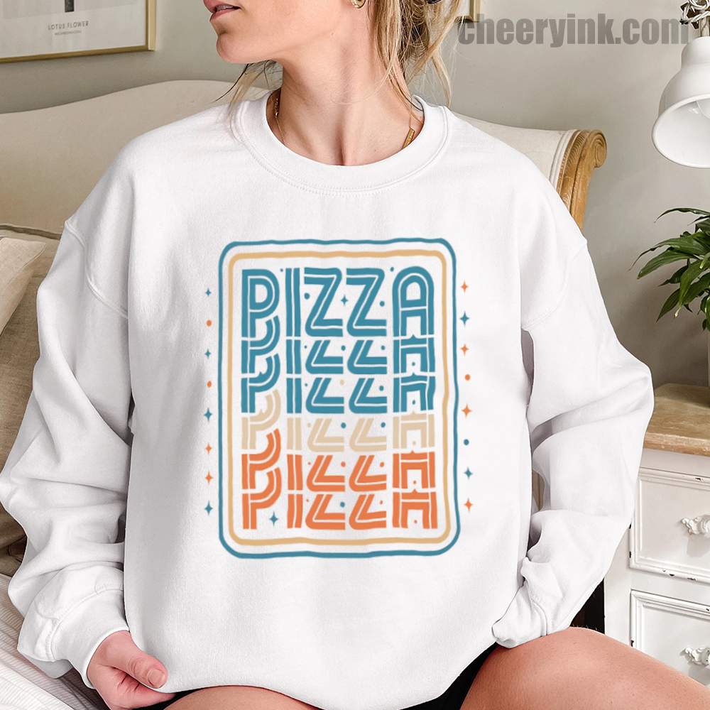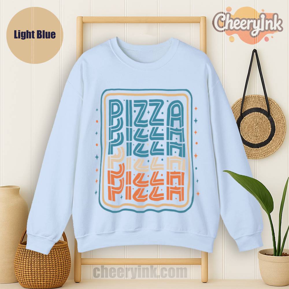 Bring your love for pizza into your everyday style with this cozy Pizza Sweatshirt. The retro-inspired graphic print is stacked with the word “PIZZA” in bold, vintage typography and a groovy color palette. It’s fun, fashionable, and the ultimate tribute to the world’s favorite food.