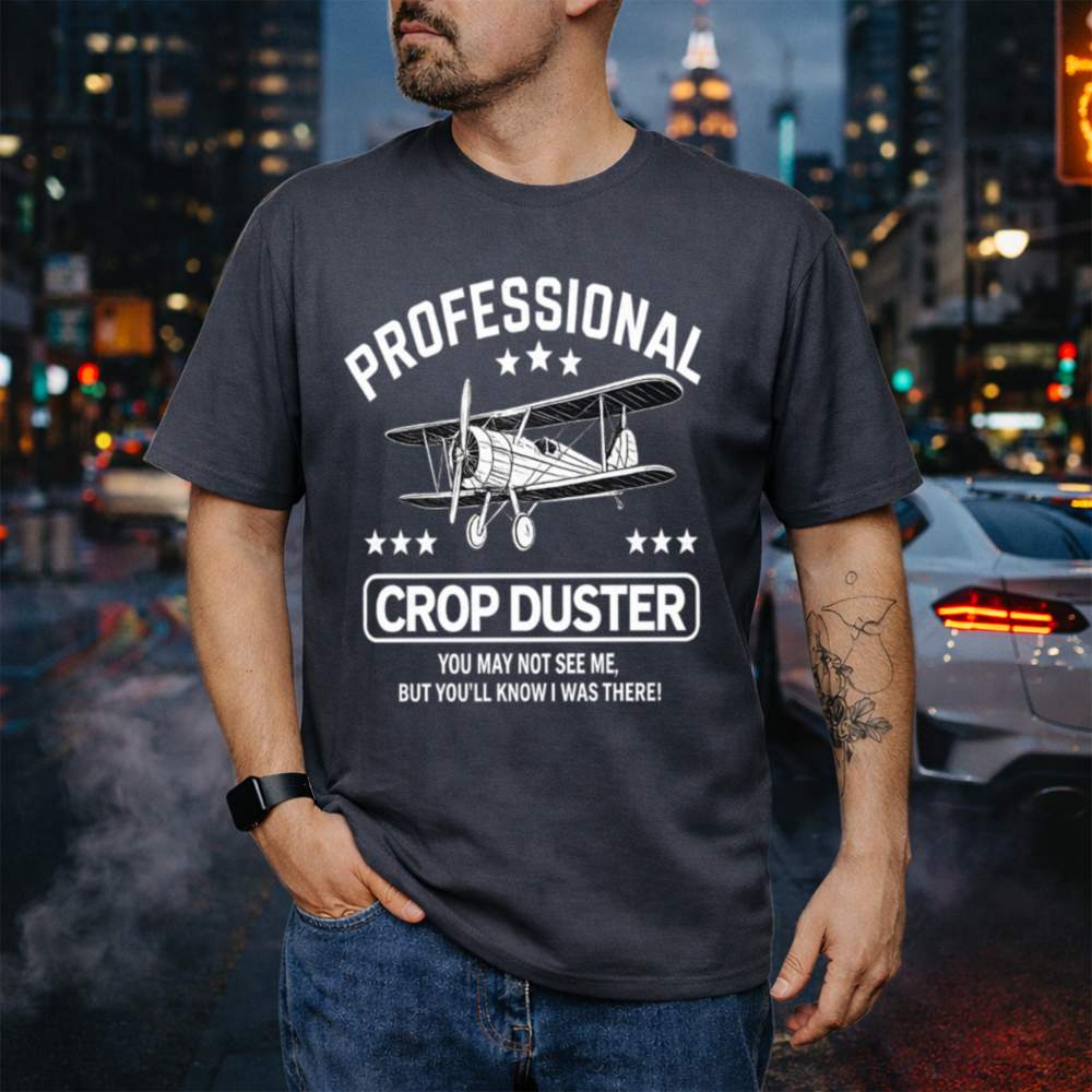 Ready to dust the fields or the living room? Add the Professional Crop Duster Funny T-Shirt to your cart and let your sense of humor take flight.