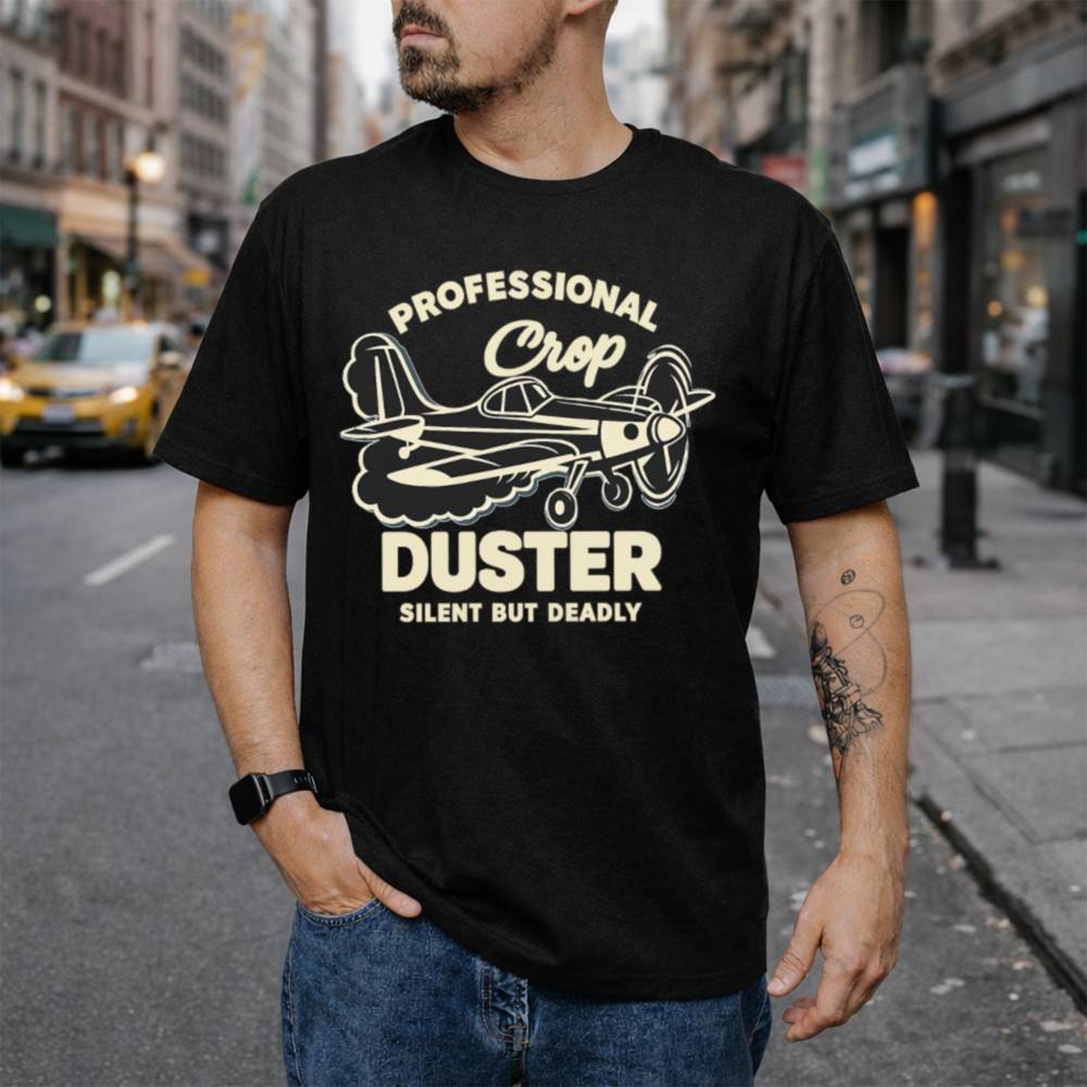 Stealth mode activated. The Professional Crop Duster T-Shirt for Men is your badge of honor if your specialty is dropping “air support” and walking away like nothing happened. Featuring a bold black-and-cream vintage airplane and the classic fart-fueled punchline “Silent But Deadly,” this shirt combines old-school aviation art with timeless bathroom humor.