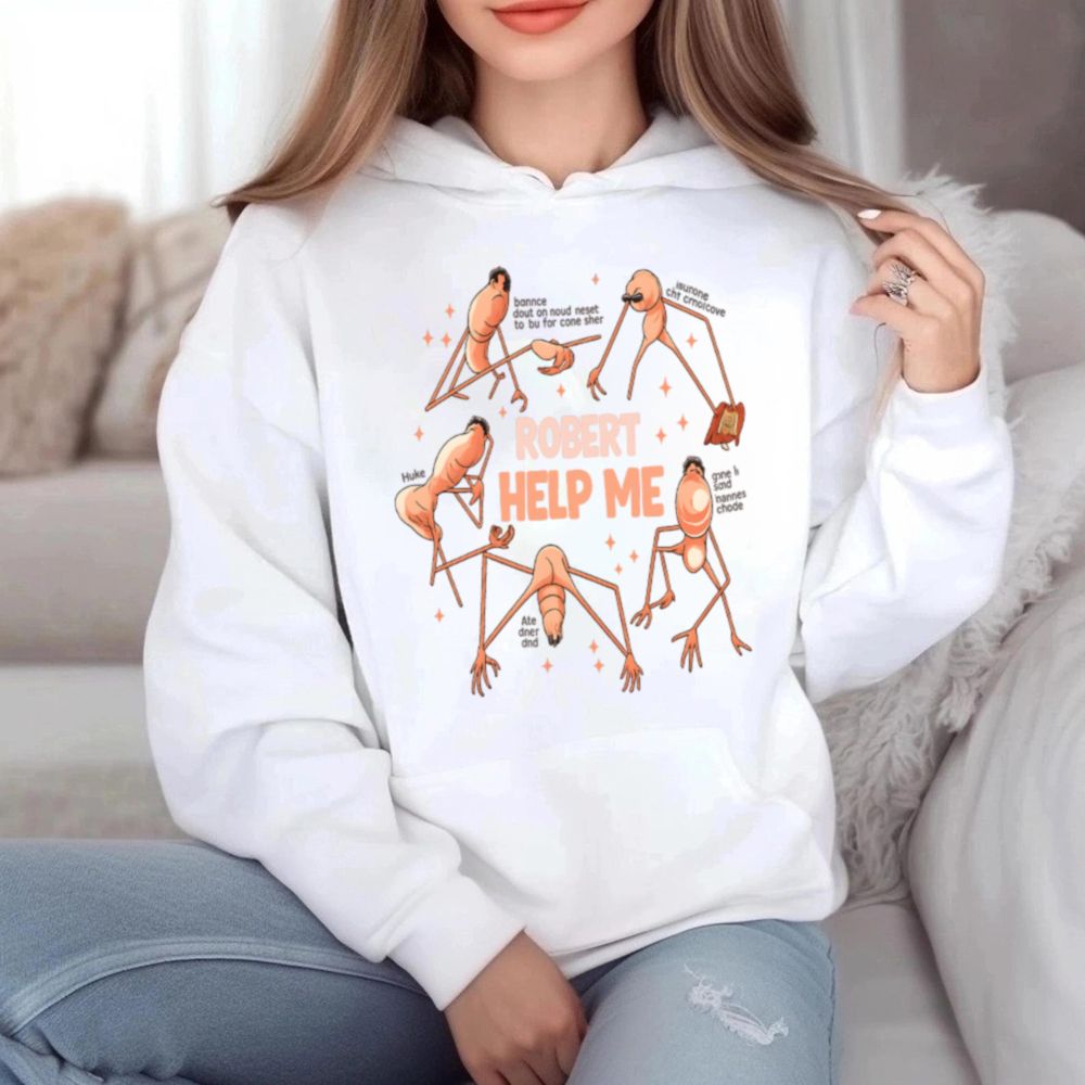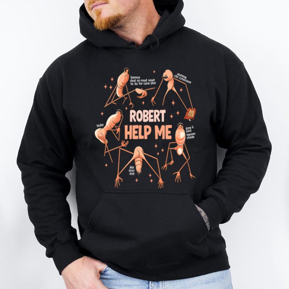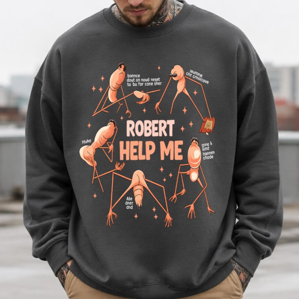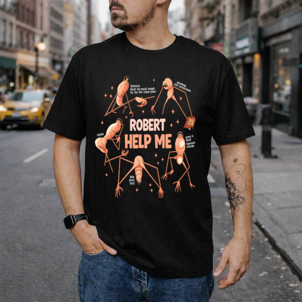 The Robert Help Me Funny T-Shirt is pure meme chaos in wearable form. Unisex and weirdly iconic, it features the infamous surreal creatures spouting nonsensical text and crying out to Robert for help. If your humor lives on the edge of absurd, this shirt is your new religion.