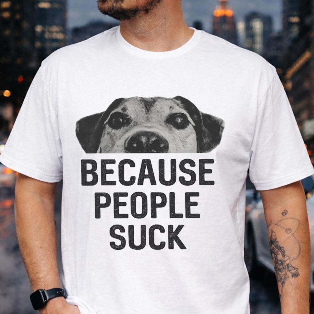 The Sarcastic Introvert Social Avoidance T-Shirt is made for anyone whose patience for crowds runs thin. Featuring a wide-eyed dog above the blunt message “Because People Suck,” this design captures that relatable, socially drained energy introverts know all too well.