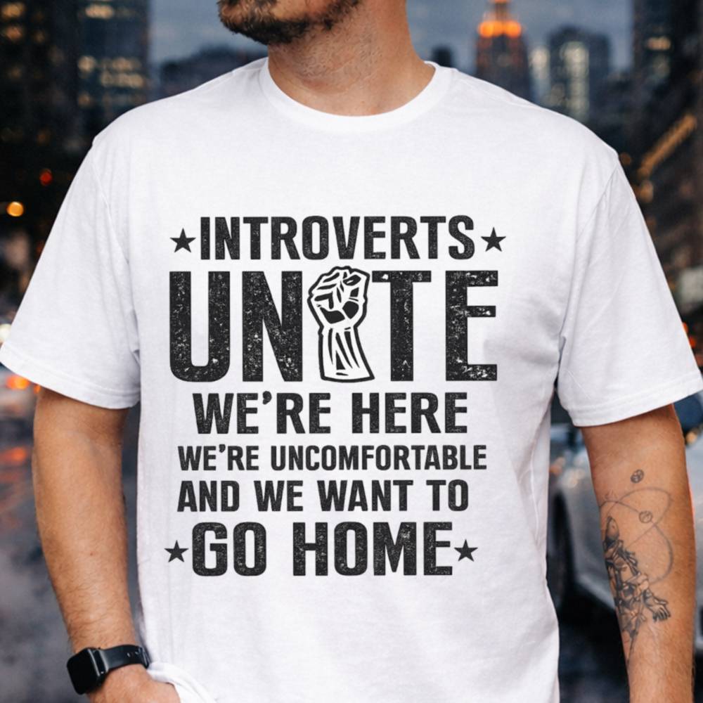 The Sarcastic Introvert Social Discomfort T-Shirt captures that collective moment when the social energy just isn’t there. Featuring a bold raised fist graphic and the unapologetic message about wanting to go home, this design blends rebellion with relatable exhaustion. It’s not just humor it’s a statement about protecting your comfort zone.