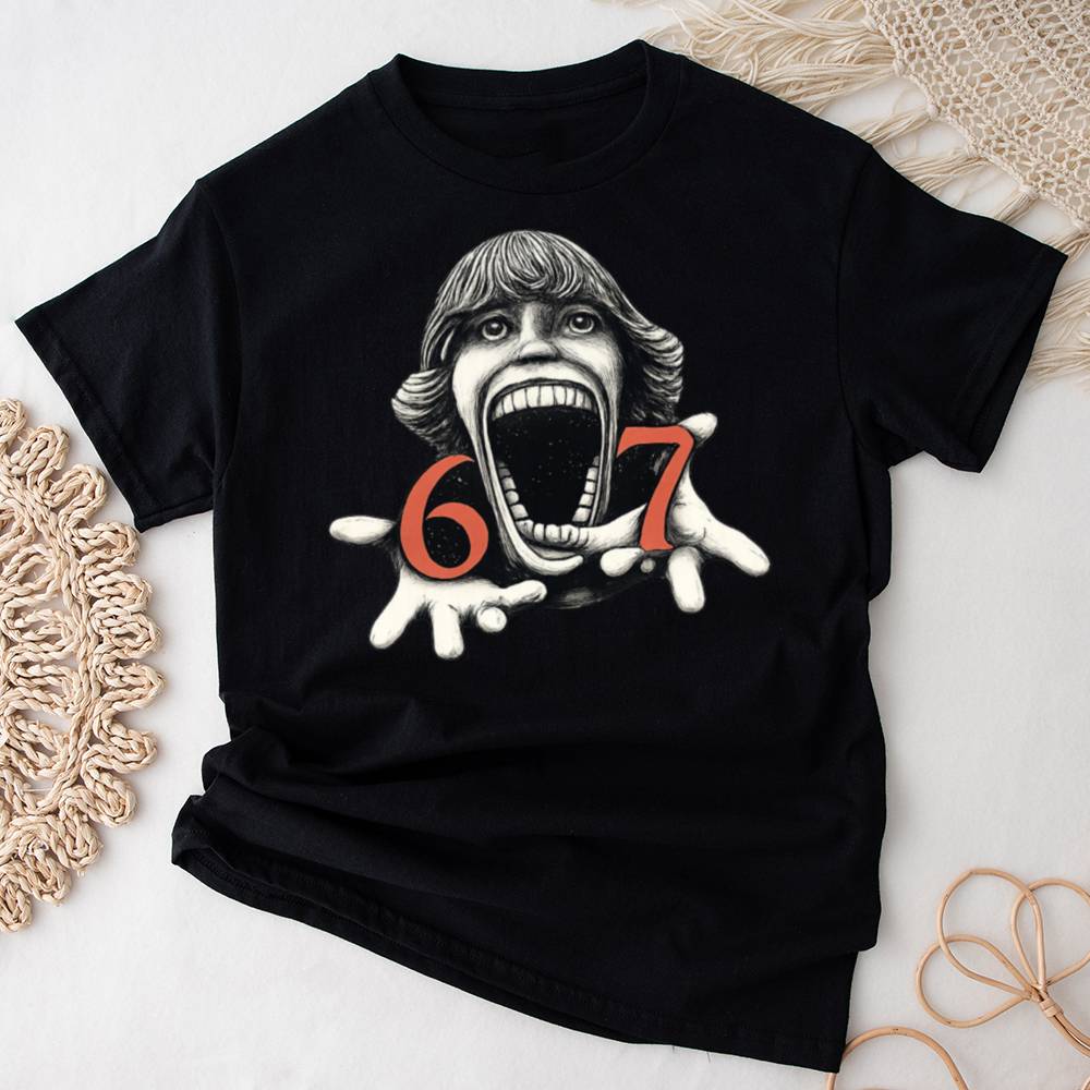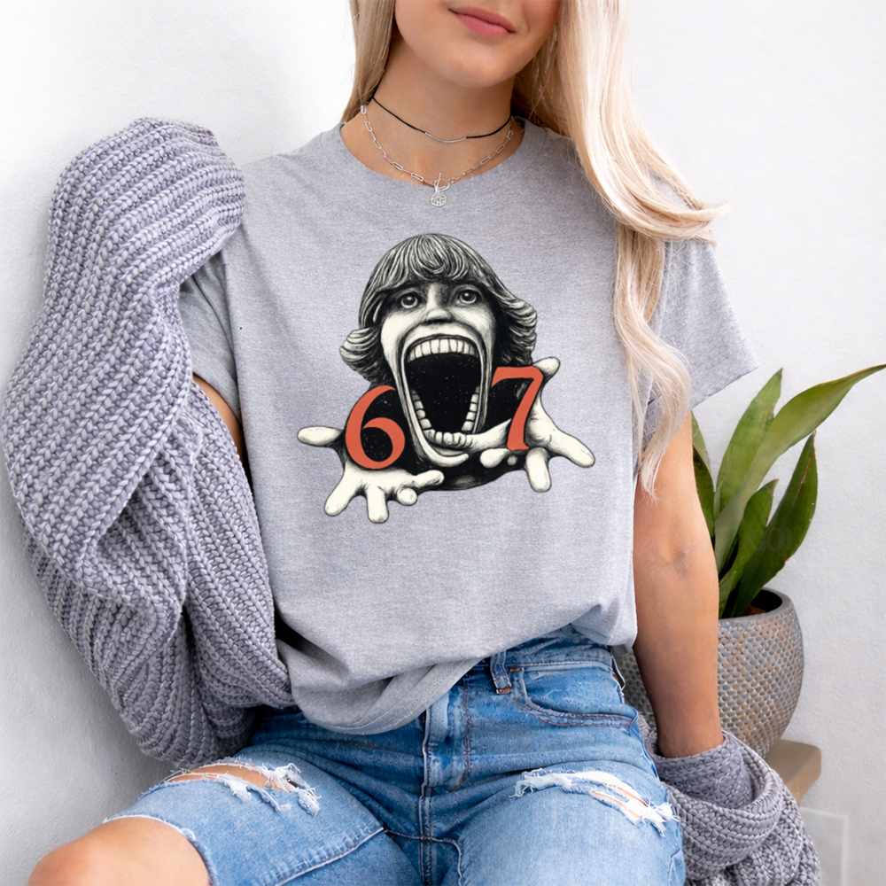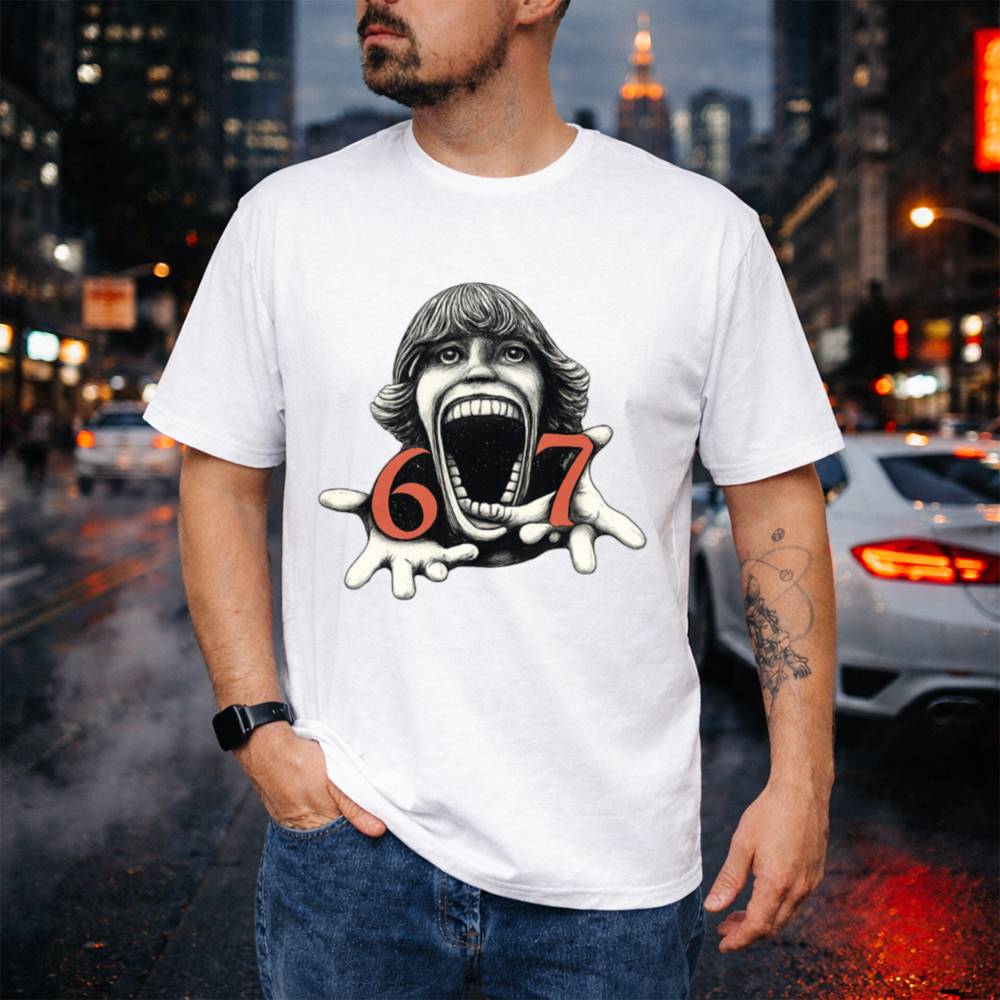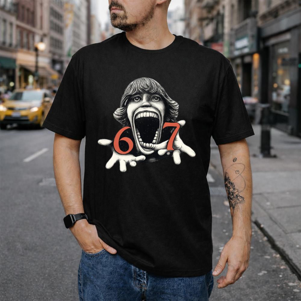 Step into the dark side of design with the Six Seven Horror Head T-Shirt. A screaming face, stretched wide in surreal agony, anchors this chilling artwork flanked by blood-red numbers 6 and 7 that only deepen the mystery. Whether it’s an inside reference, cursed number sequence, or just unfiltered nightmare fuel, this shirt is for those who crave something darker.