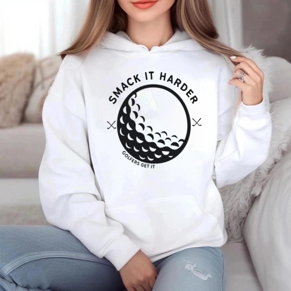 The Smack It Harder Funny Golf T-Shirt brings bold humor to the green. With its cheeky double meaning and clean design, this Unisex tee is made for golfers who love a good laugh. Whether you’re swinging for the fairway or just showing off your love for the game, this one hits different.