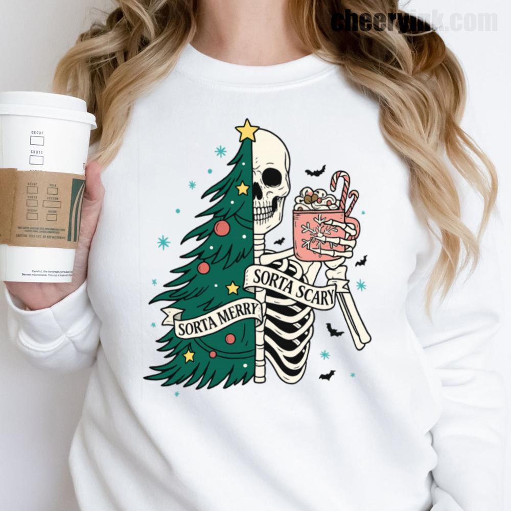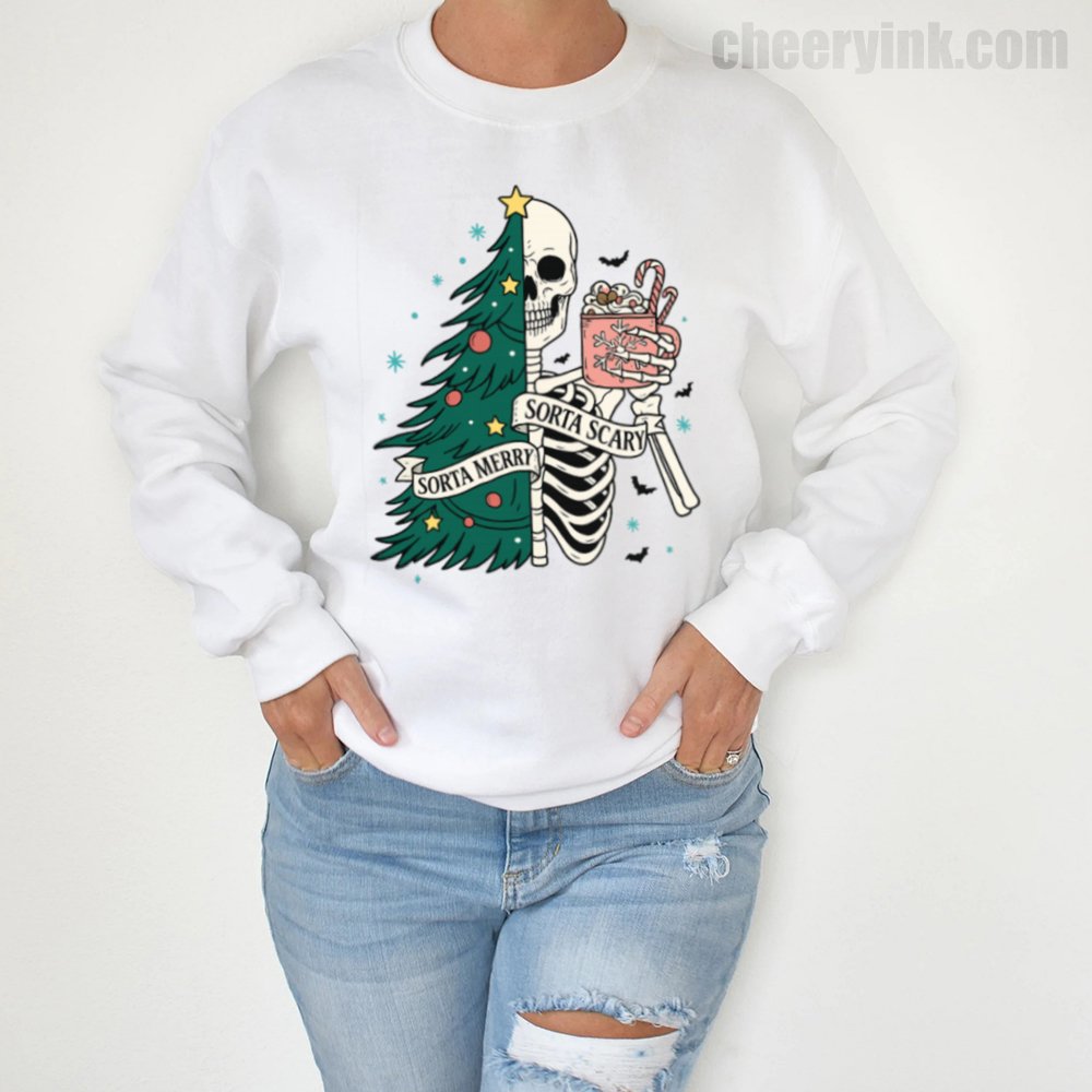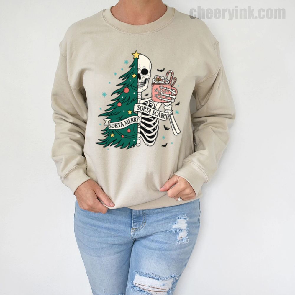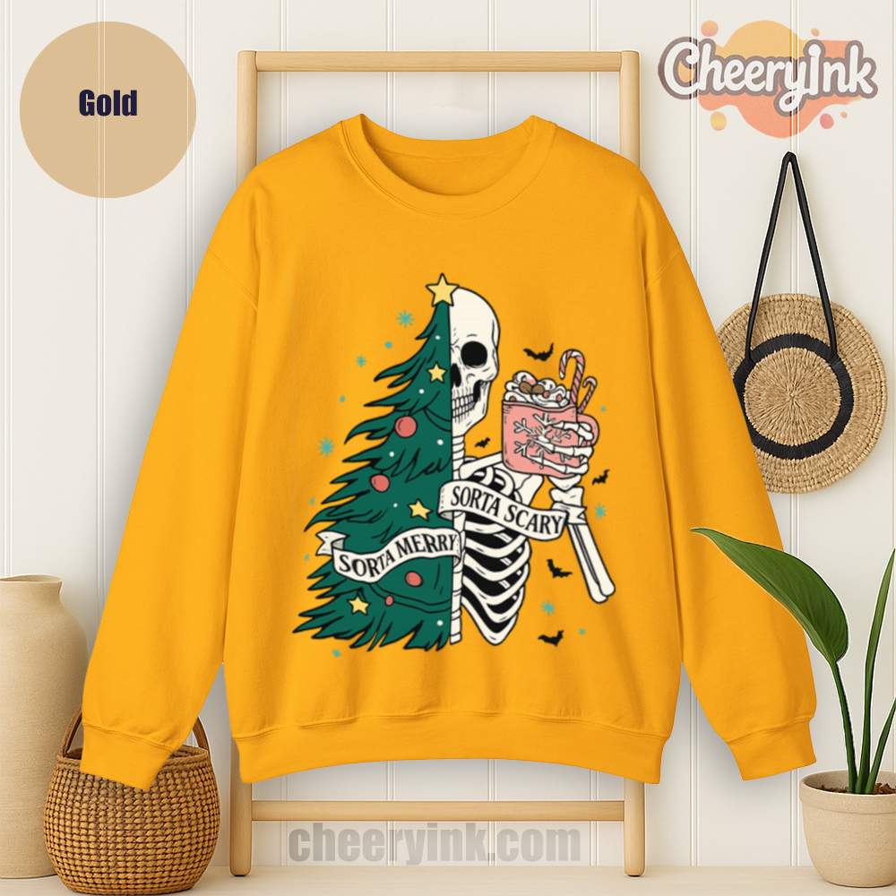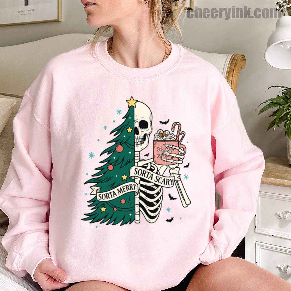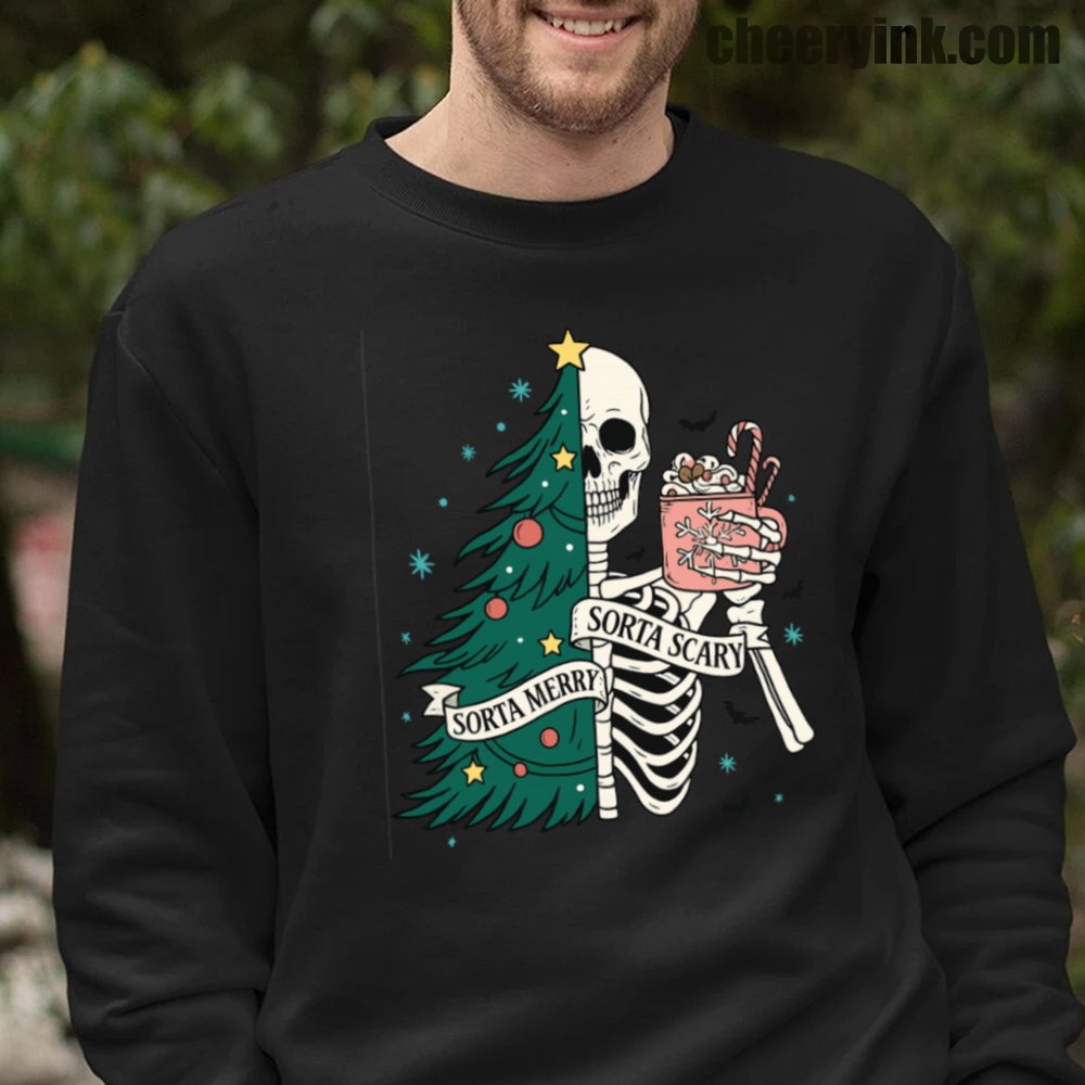 The Sorta Merry Sorta Scary Sweatshirt brings the spooky season straight into your Christmas celebration. With its half-skeleton, half-tree design and playful candy cane cocoa, it’s perfect for those who love the strange and festive.
