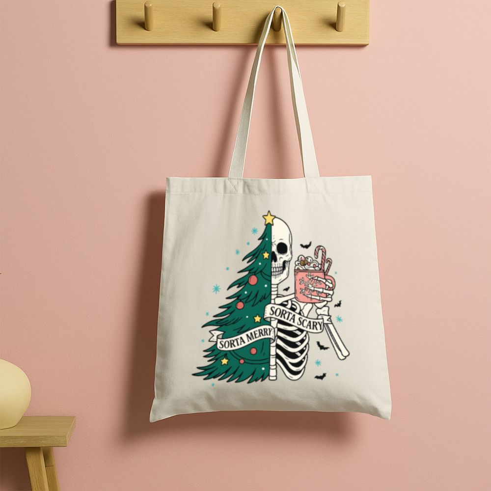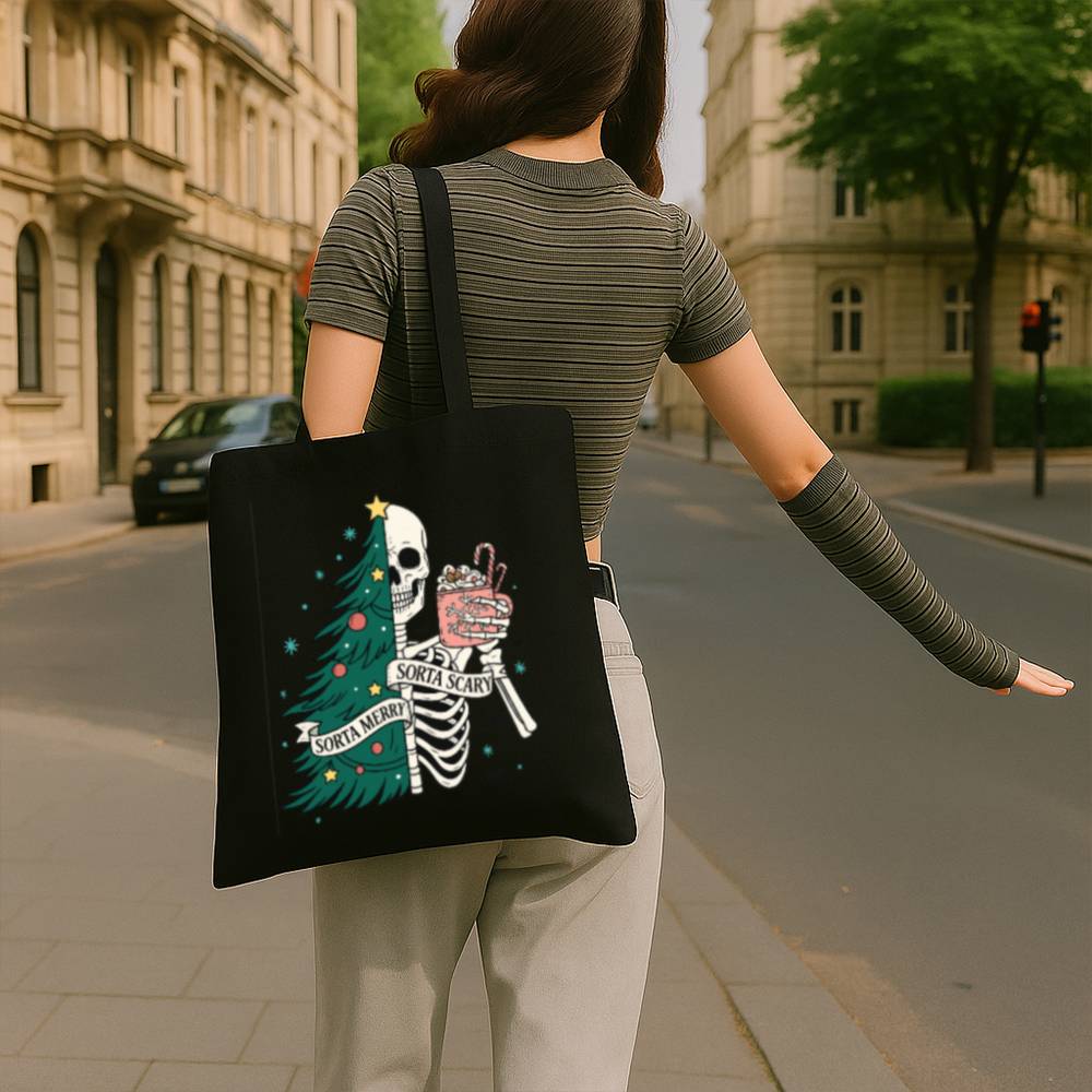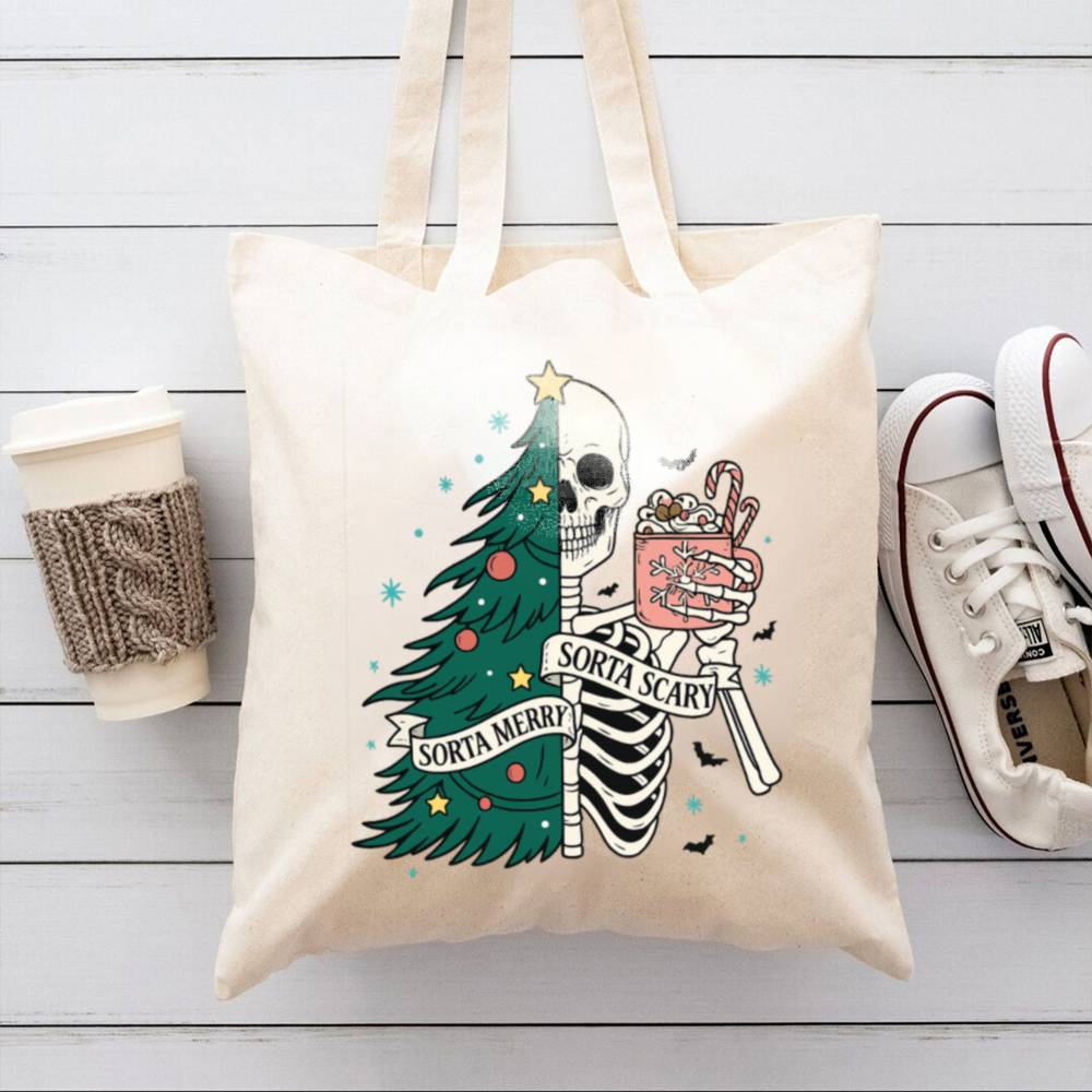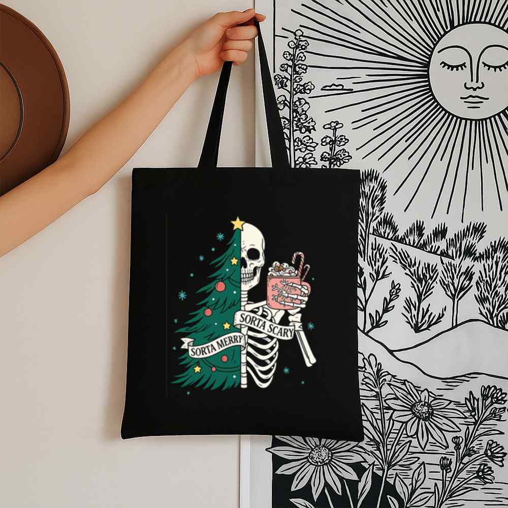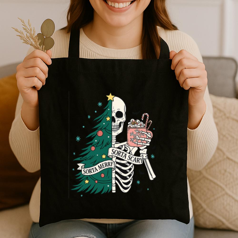 Carry a little creepy with your Christmas in the Sorta Merry Sorta Scary Tote Bag. With a bold, festive-meets-ghoulish print, this bag blends Halloween charm with holiday cheer. Whether you’re out grabbing gifts or groceries, it’ll turn heads and start conversations.