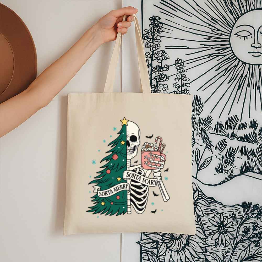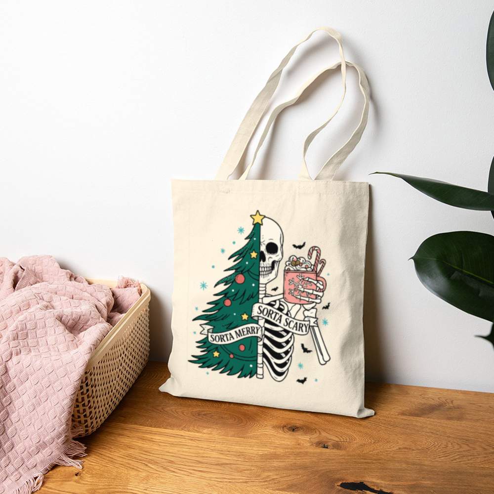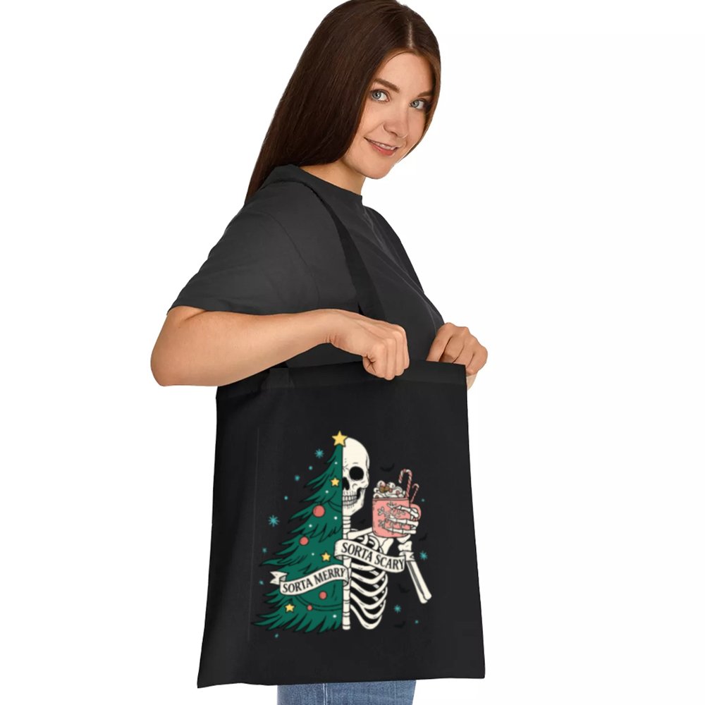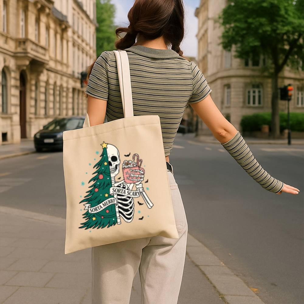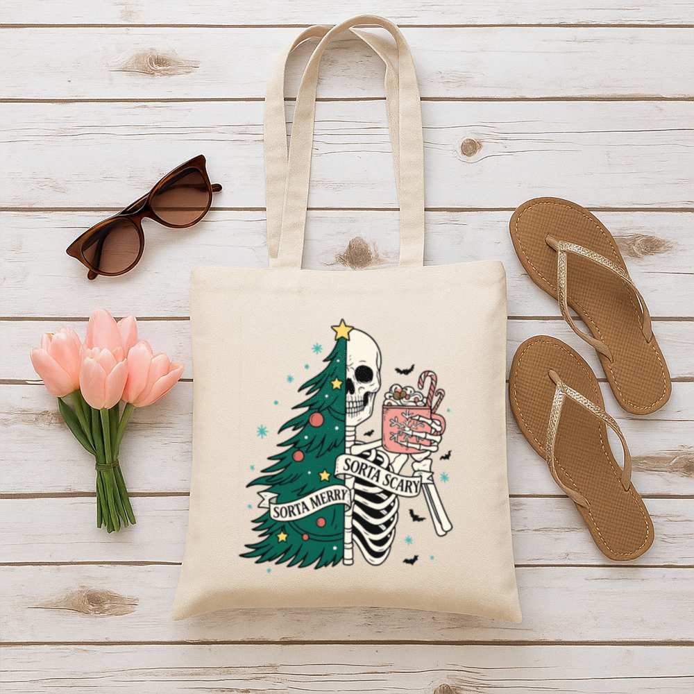 Carry a little creepy with your Christmas in the Sorta Merry Sorta Scary Tote Bag. With a bold, festive-meets-ghoulish print, this bag blends Halloween charm with holiday cheer. Whether you’re out grabbing gifts or groceries, it’ll turn heads and start conversations.