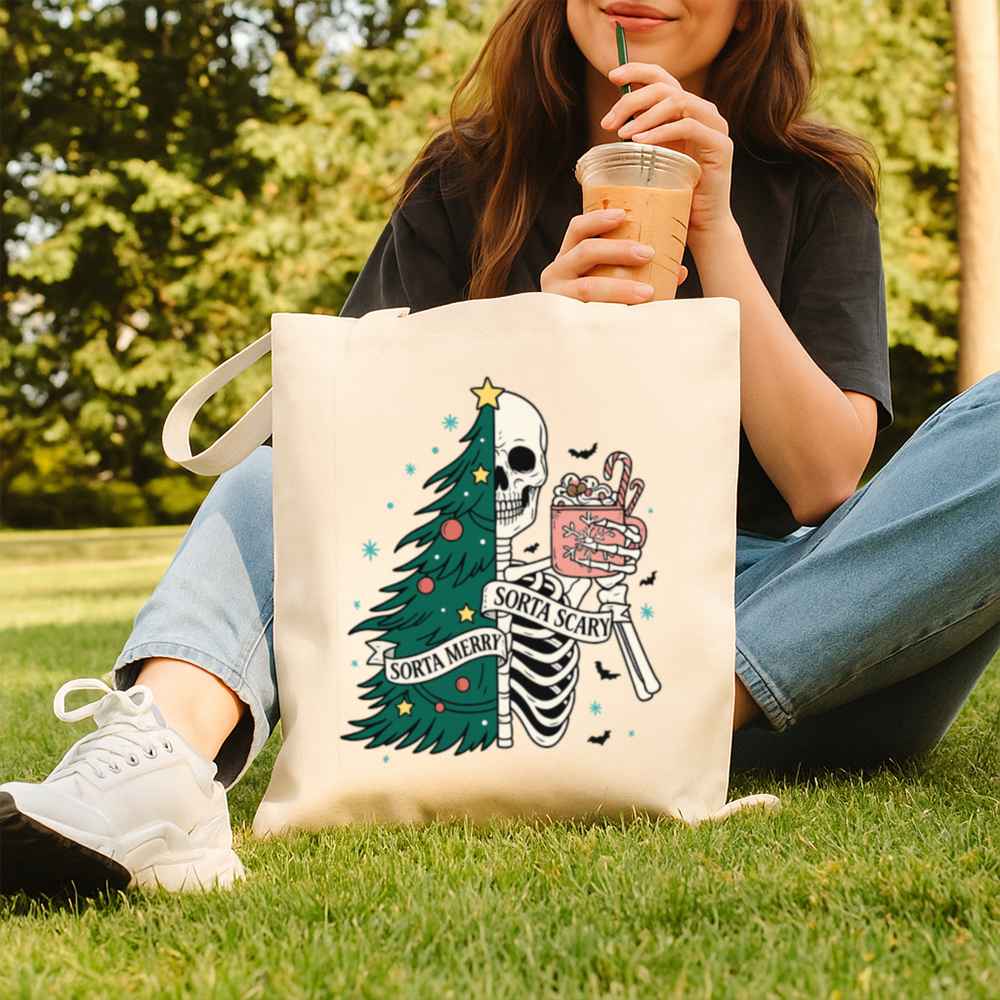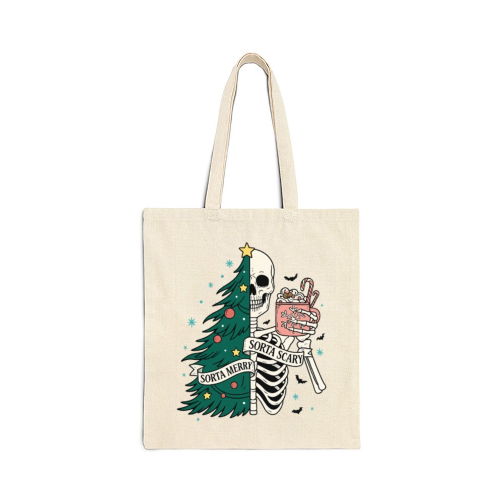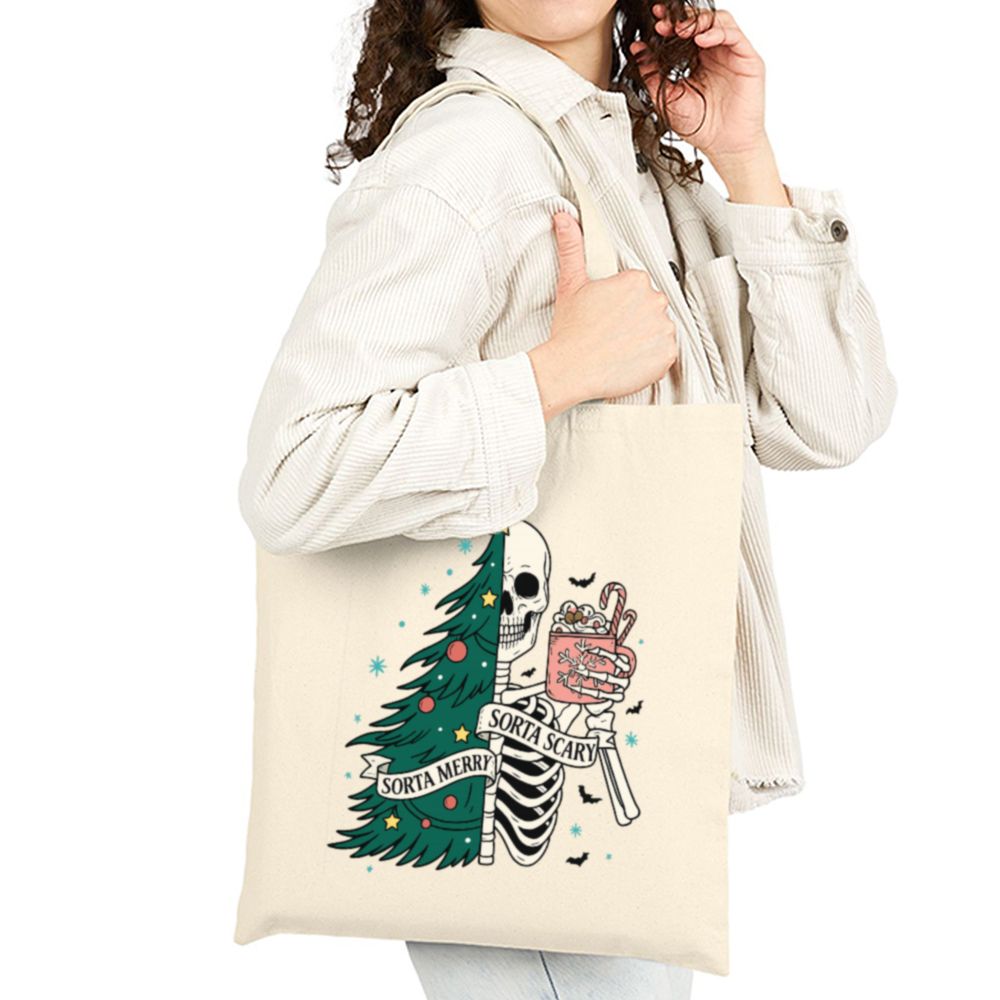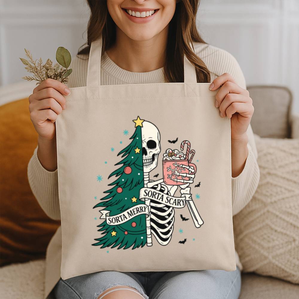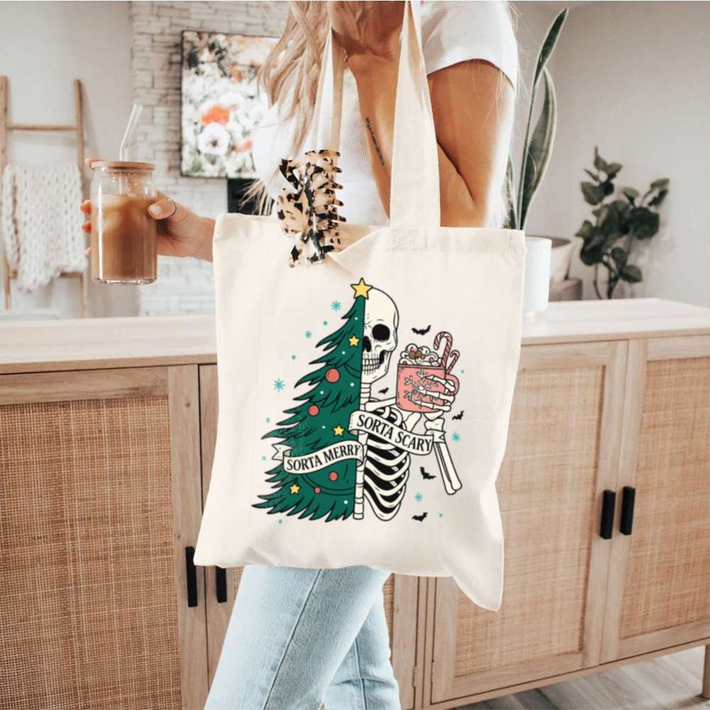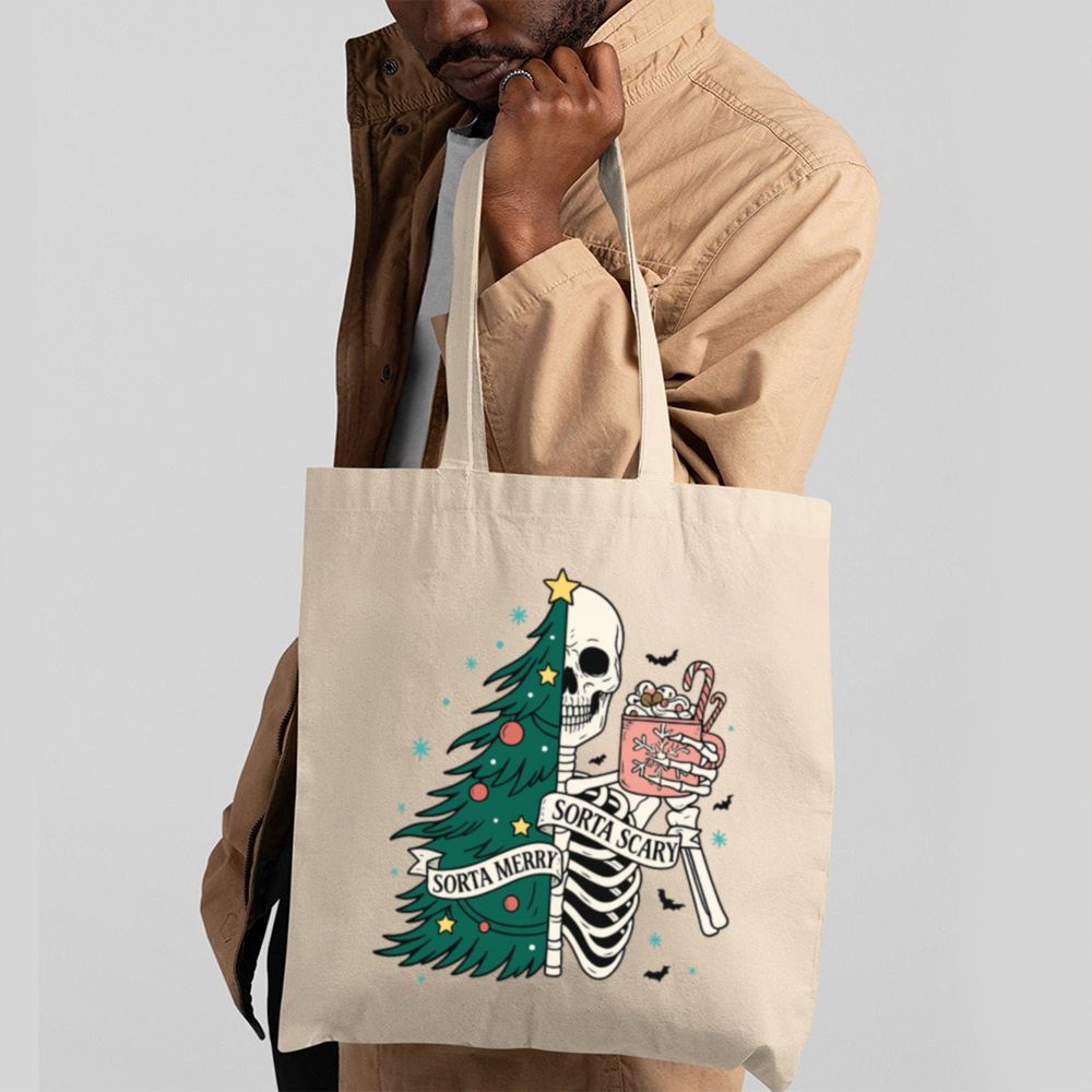 Carry a little creepy with your Christmas in the Sorta Merry Sorta Scary Tote Bag. With a bold, festive-meets-ghoulish print, this bag blends Halloween charm with holiday cheer. Whether you’re out grabbing gifts or groceries, it’ll turn heads and start conversations.