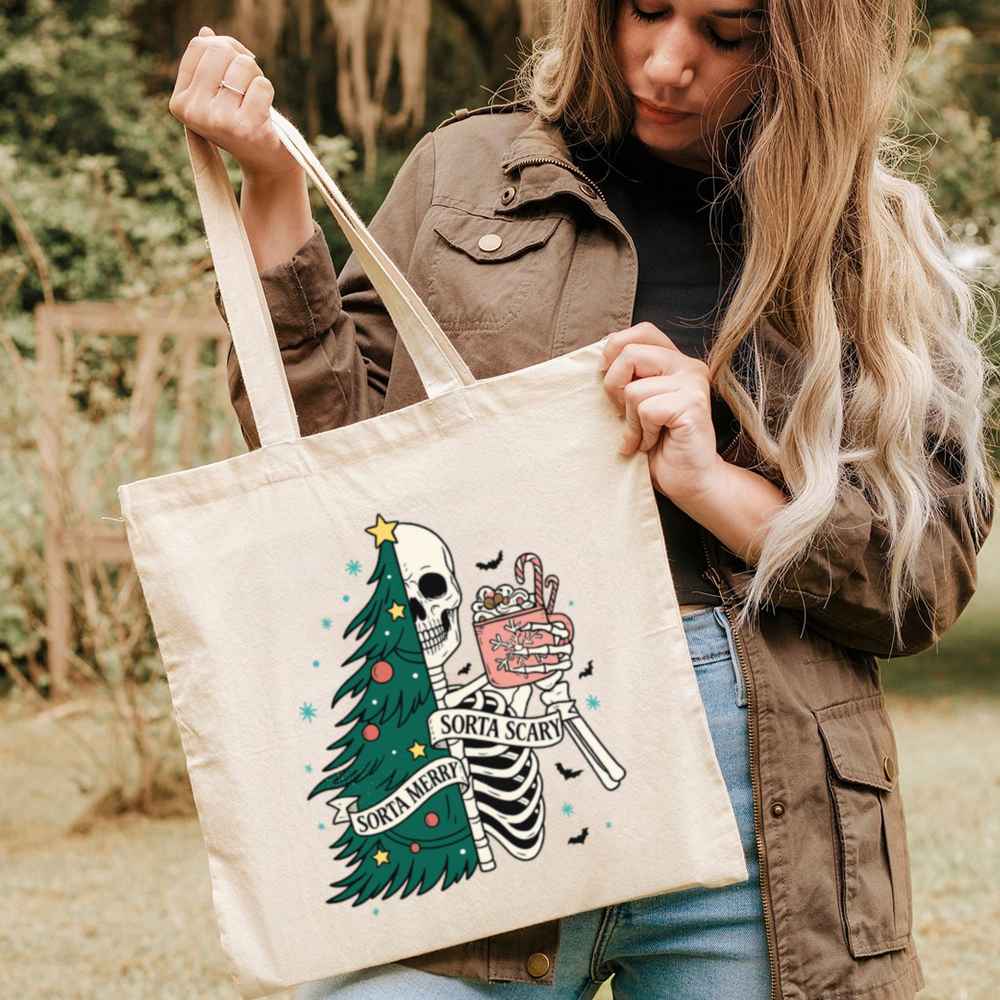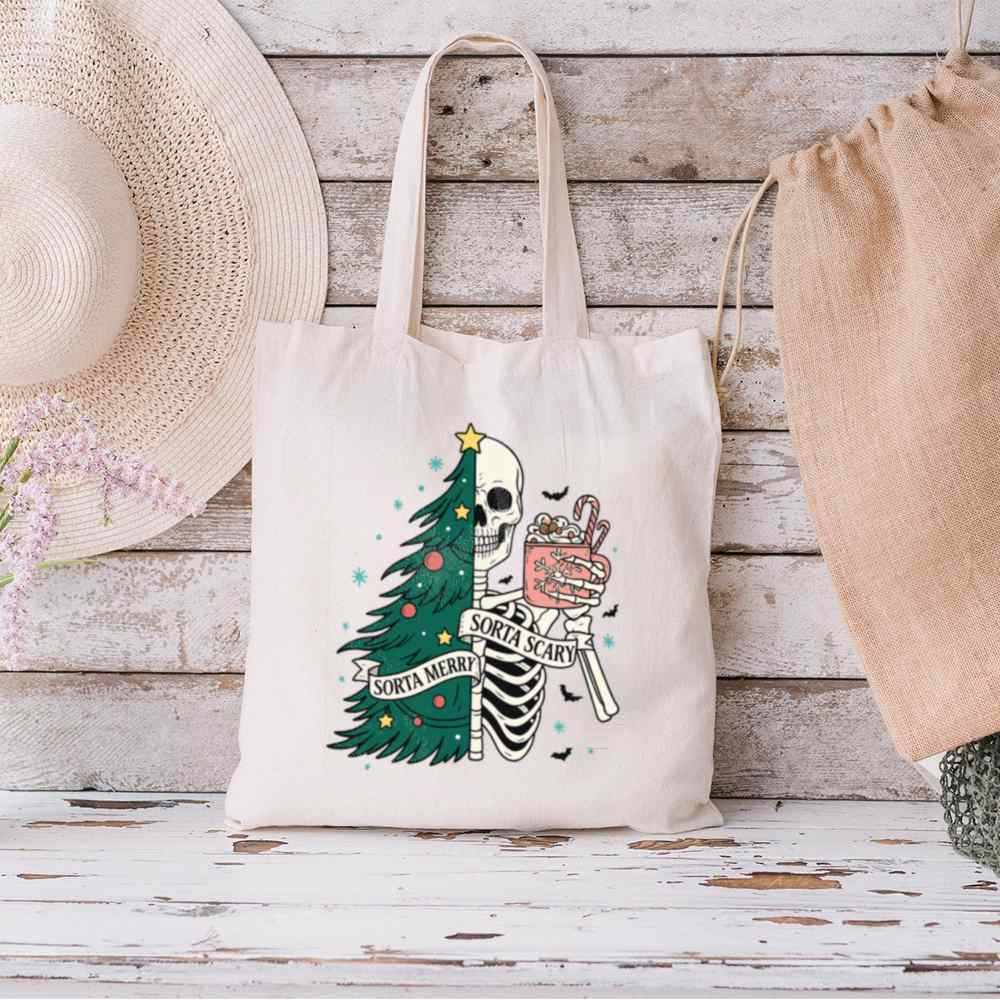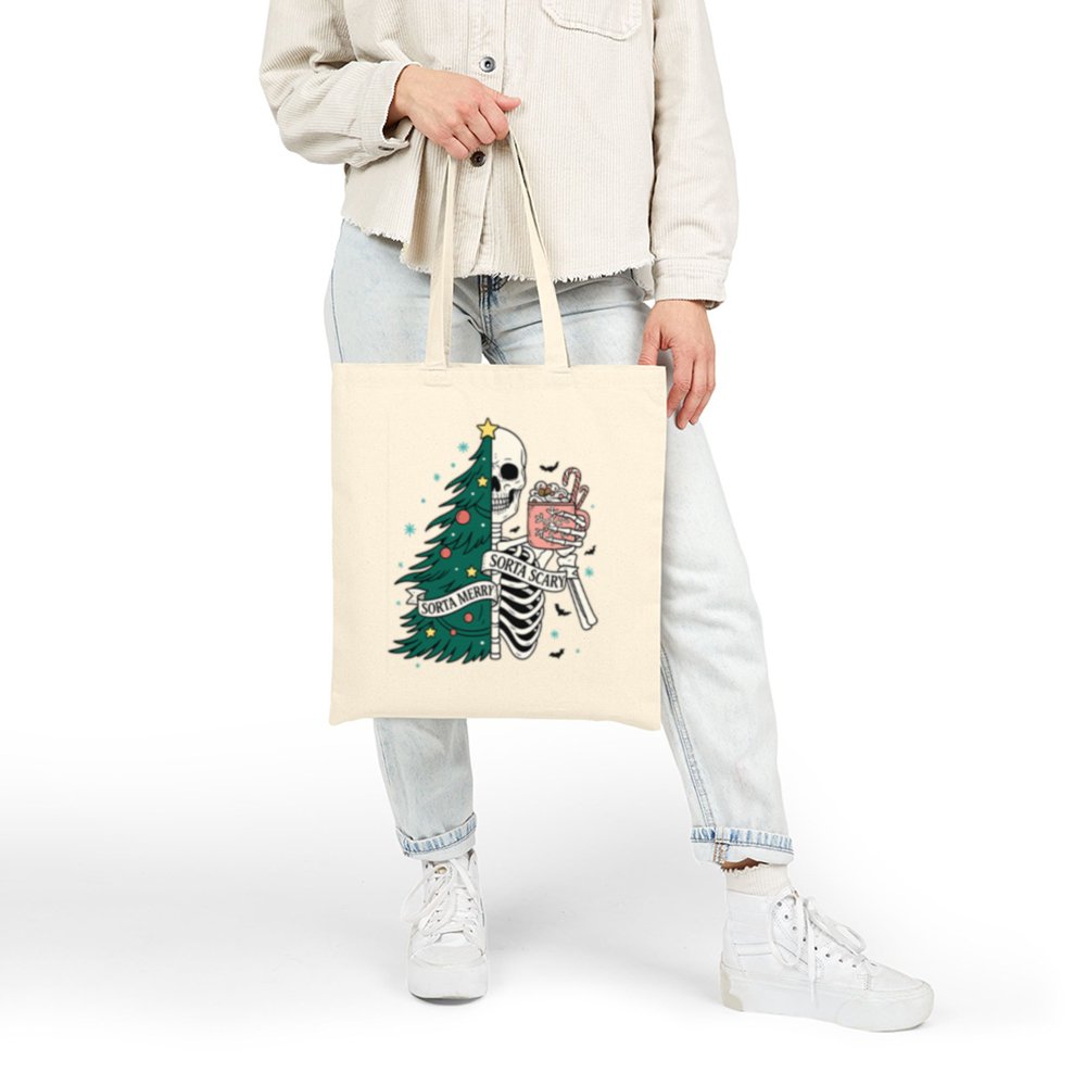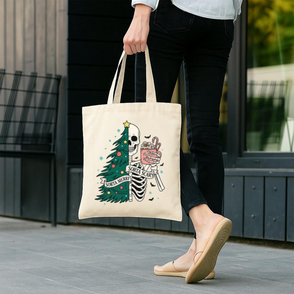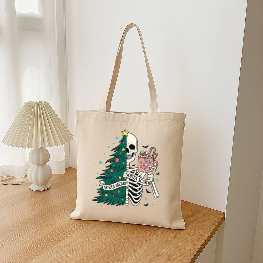 Carry a little creepy with your Christmas in the Sorta Merry Sorta Scary Tote Bag. With a bold, festive-meets-ghoulish print, this bag blends Halloween charm with holiday cheer. Whether you’re out grabbing gifts or groceries, it’ll turn heads and start conversations.